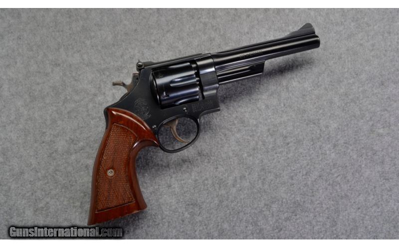 Description: The Smith & Wesson Model 28, also known as the Highway Patrolman, is an N-frame revolver chambered for the .357 Magnum cartridge, in production from 1954 to 1986. This one has been carried more than it has been shot judging by the ring on the cylinder and wear on the left side of the firearm. It is a four screw frame putting manufacture between 1958 and 1961. Lastly it has been ethed by hand with "R82-1409-G ML 8-9-62 " on the left side of the frame. SOLD Manufacturer: 1958-1961. Caliber Info: .357 Magnum. Chambers: 6 round revolving cylinder. Metal Condition: Good, noticeable holster wear on left side. Wood Condition: Good, more wear on left than right side, minor finish issues. Bore Condition: Very good bright, with crisp rifling and lite rings on cylinder face Barrels: 6 Inch blued Triggers: Single with front grooves. Stock: Blued steel frame with two piece, checkered, wrap around grip panels. Stock Dimensions: 11 inch overall. Weight: 44 oz. Sights: Fixed front ramp, paired with adjustable square notch rear. Item Location: Chesterfield, MI |