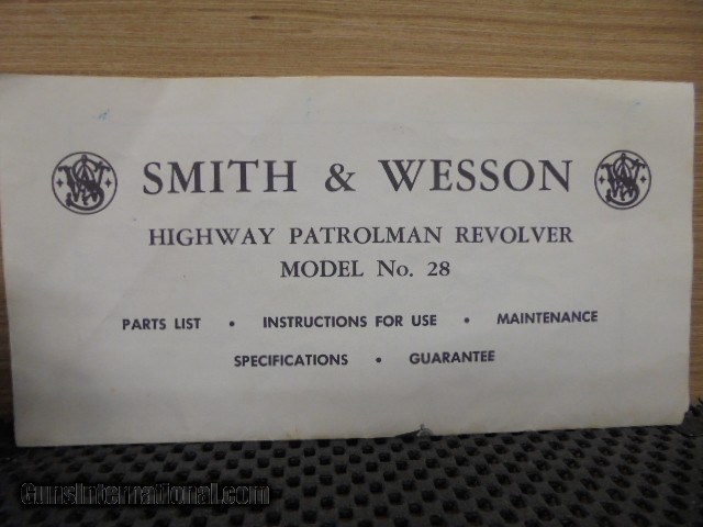 Description: CONSIGNMENT USED GOOD CONDITION SMITH & WESSON MODEL 28-2 HIGHWAY PATROLMAN .357 MAG -- 4" BLUED BARREL -- WOOD GRIPS PINNED & RECESSED -- SERIAL # N71XX -- HAS MANUAL & LEATHER BELT HOLSTER PRICE SET BY OWNER ****PLEASE CALL IN THE WITH THE SELLER’S INVENTORY NUMBER IF INQUIRING ABOUT A FIREARM****** WE DO NOT SHIP FIREARMS AND/OR FIREARMS’ PARTS OUT OF THE 50 UNITED STATES, SO DON’T ASK PRICE REFLECTS PAYMENT BY MONEY ORDER / CASHIERS CHECK. A 3% PREMIUM IS ADDED FOR CREDIT CARDS. WE DO ACCEPT PERSONAL OR BUSINESS CHECKS, BUT THERE IS A GRACE PERIOD OF 10 BUSINESSS DAYS ON THEM. Shipping is $40 for handgun and $30 for long gun. Shipping to Alaska and Hawaii will be more based on weight of firearm. WE DO OFFER LAYAWAY PLANS FOR 30,60, OR 90 DAYS. THERE IS A $5.00 CHARGE FOR EVERY 30 DAYS ITEM IS ON LAYAWAY. WE ALSO REQUIRE A 20% DOWN PAYMENT ON TOTAL OF LAYAWAY SALE. LAYAWAYS ARE NON- REFUNDABLE. HERE IS HOW THIS PROCESS WORKS. YOU WOULD CALL US AT 540-337-9218 WITH LISTER # TO PURCHASE THE GUN. THEN ONCE I HAVE RECEIVED PAYMENT AND AN FFL (FEDERAL FIREARMS LICENSE) FROM A LICENSED DEALER IN YOUR AREA OF YOUR CHOICE. WE WILL THEN SHIP THE GUN TO THEM. YOU WOULD THEN PICK UP THE GUN AT YOUR LOCAL DEALER AND DO PAPER WORK THERE. Please have your FFL Dealers contact information when you call. DOMINION OUTDOORS 15 ANGELA COURT FISHERSVILLE, VA 22939 540-337-9218 540-337-2422 fax M – F 9 to 6 ETZ Sat 9 – 4 ETZ ****PLEASE CALL IN THE WITH THE SELLER’S INVENTORY NUMBER**** ***PLANO HARD CASES AVAIABLE FOR PURCHASE $19.99 WITH THE PURCHASE OF A FIREARM** *** Online prices compared to in store prices will vary. *** SOLD |