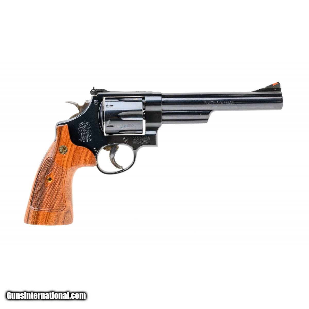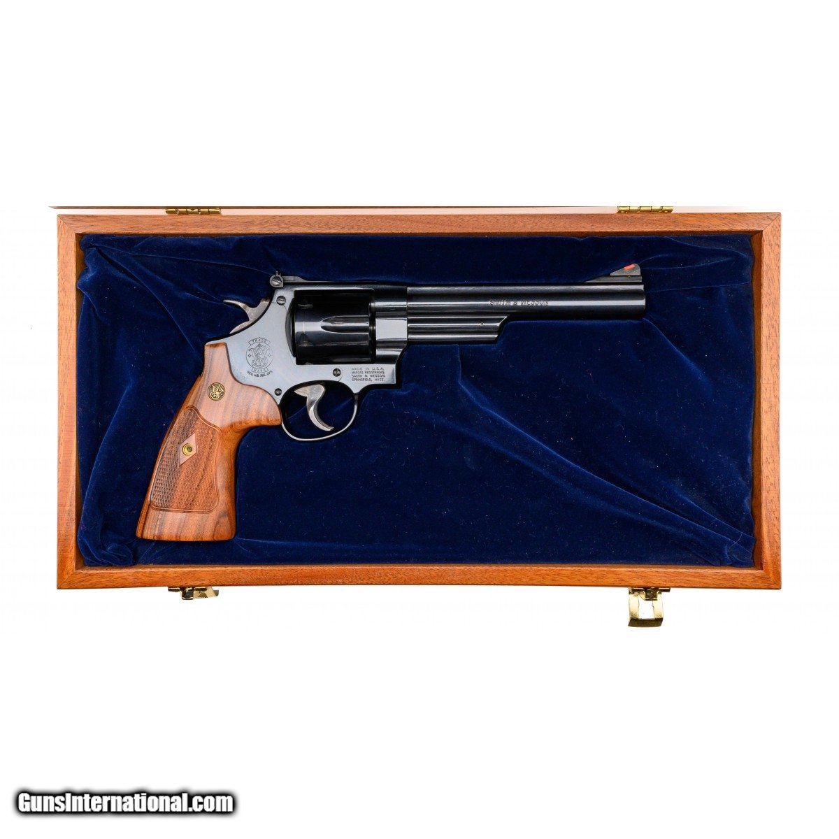 Description: " SN: DCP2208. Modern production .44 Magnum with a 6.5"" barrel. N-frame revolver with blue finish and wood grips. Excellent condition with wooden presentation case. SOLD |
