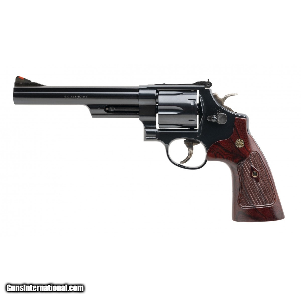 Description: "SN: DAZ9173. Modern production. .44 Magnum with a 6.5"" barrel. Bore is in excellent condition. Smith & Wesson double action revolver. Finish and wood grips are in excellent condition with minimal wear. Overall condition is excellent. Comes with case. (Consignment) SOLD |