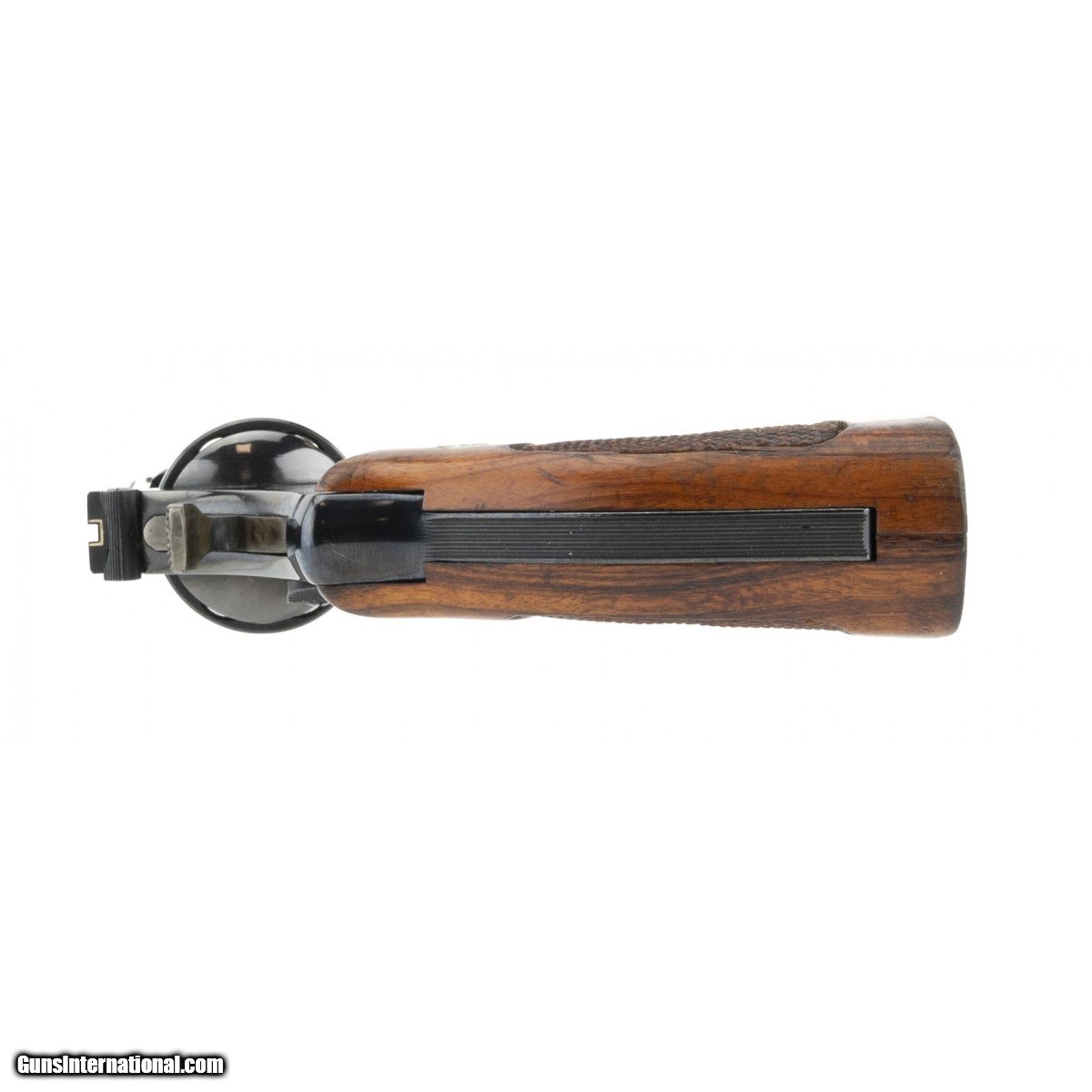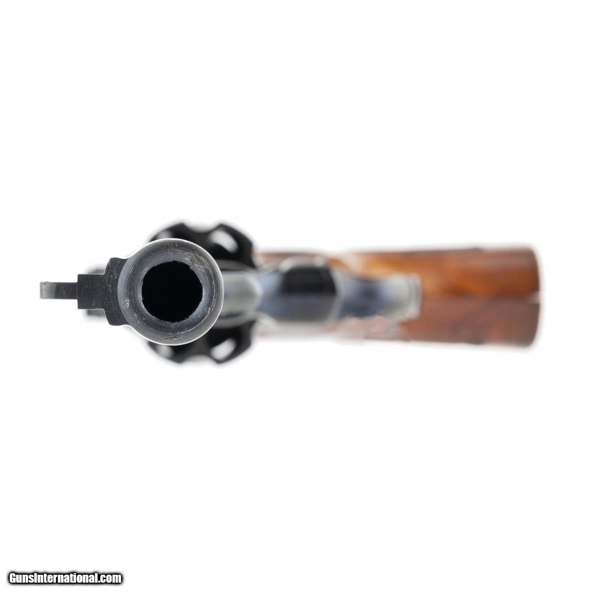 Description: " 6 1/2"" blue model with pinned barrel and recessed cylinder, 1970's vintage. Shows light edge wear, has about 98% original blue finish. The grips are very good. SOLD |