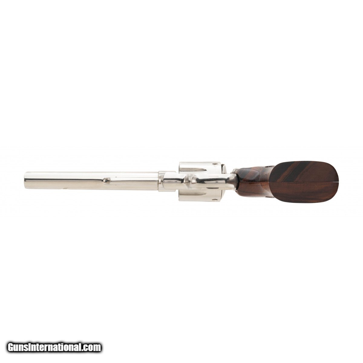 Description: " SN: N483440. Cased, stainless magnum revolver with 6.5"" pinned barrel and recessed cylinder. 1970's Vintage. Overall excellent condition with Blue felt lined case that has a quasquicentennial plaque. Has 18rds of Speer .44 magnum. SOLD |