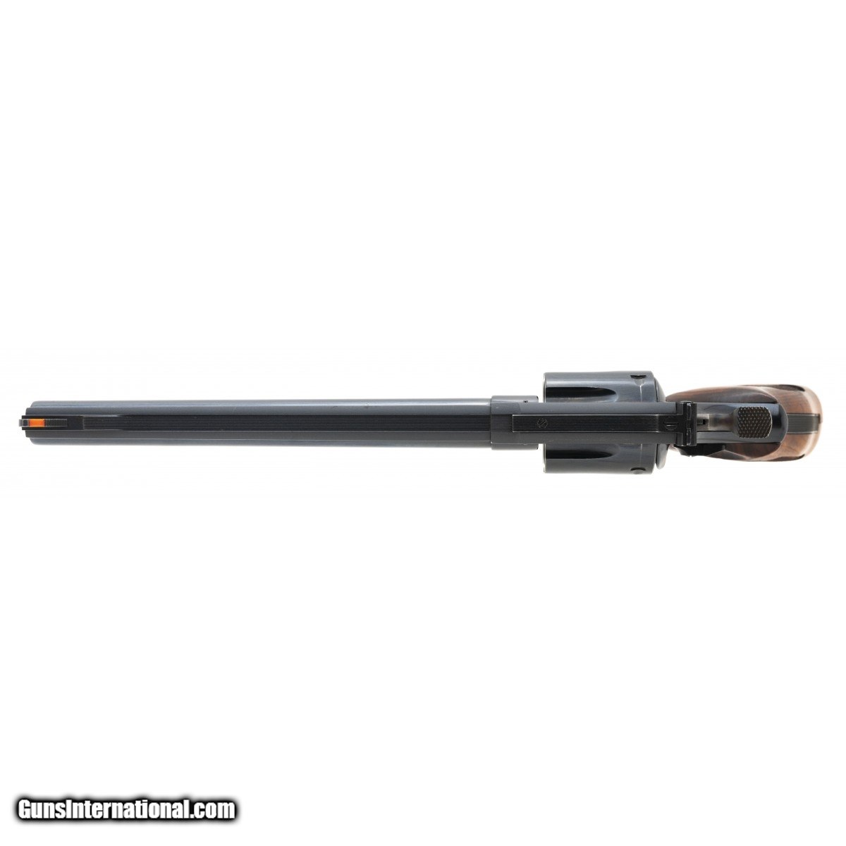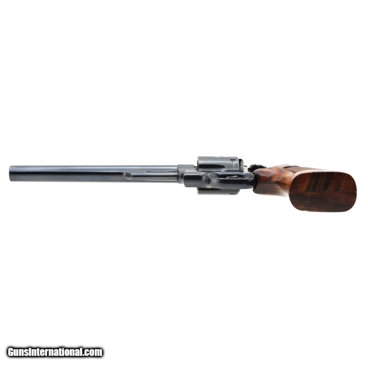 Description: " SN: N385741. 8 3/8"" blue revolver with pinned barrel and recessed cylinder, 1970's vintage. Excellent condition with wooden case and tools. SOLD |