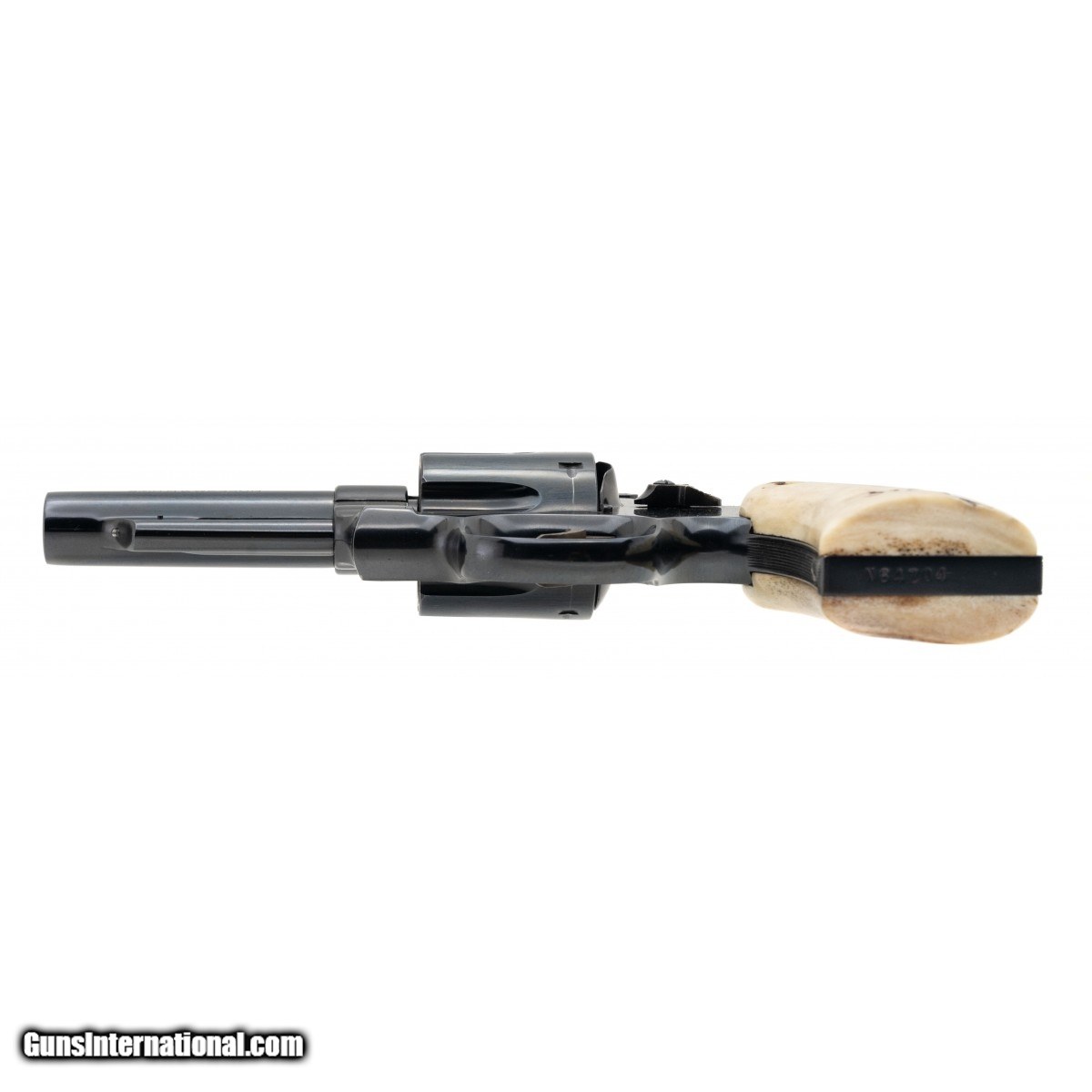Description: " SN: 64704. Made around 1972, .44 Magnum caliber with a 4"" barrel. Blued N-frame revolver with pinned barrel and recessed cylinder. Has genuine stag grips. Excellent condition overall. SOLD |