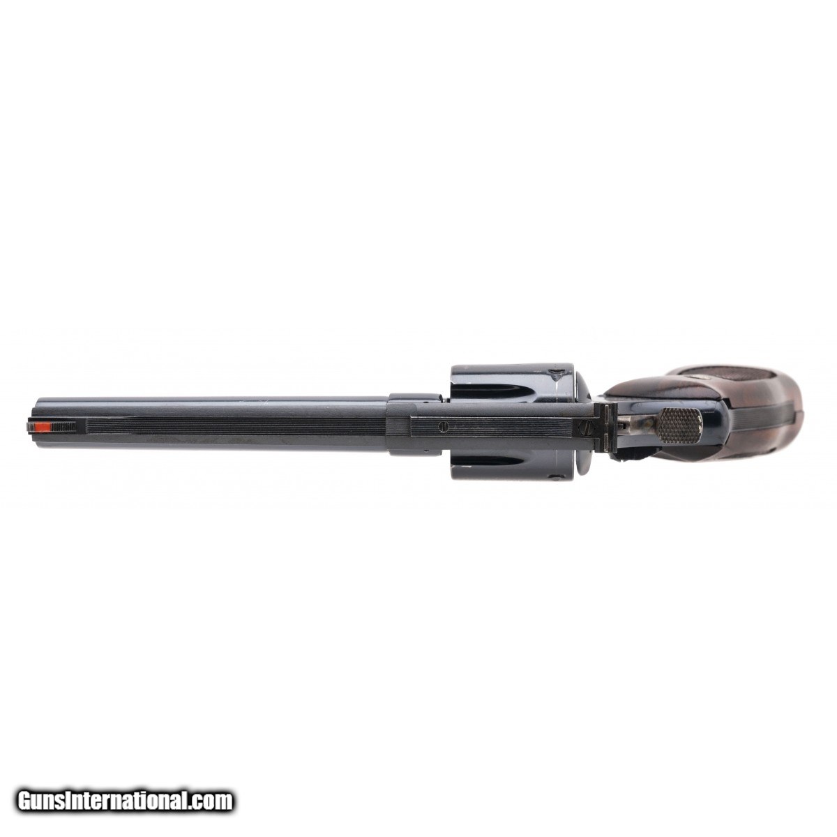 Description: "SN: N643910. Made circa 1970s vintage. .44 Magnum with a 6"" pinned barrel. Bore is in near excellent condition. S&W double action revolver with recessed cylinder. Finish is in good condition with 90% of factory blue finish retained. Finish has wear on cylinder, frame, and barrel. Checkered wood grips are in very good condition with minor handling wear. Overall condition is very good. SOLD |