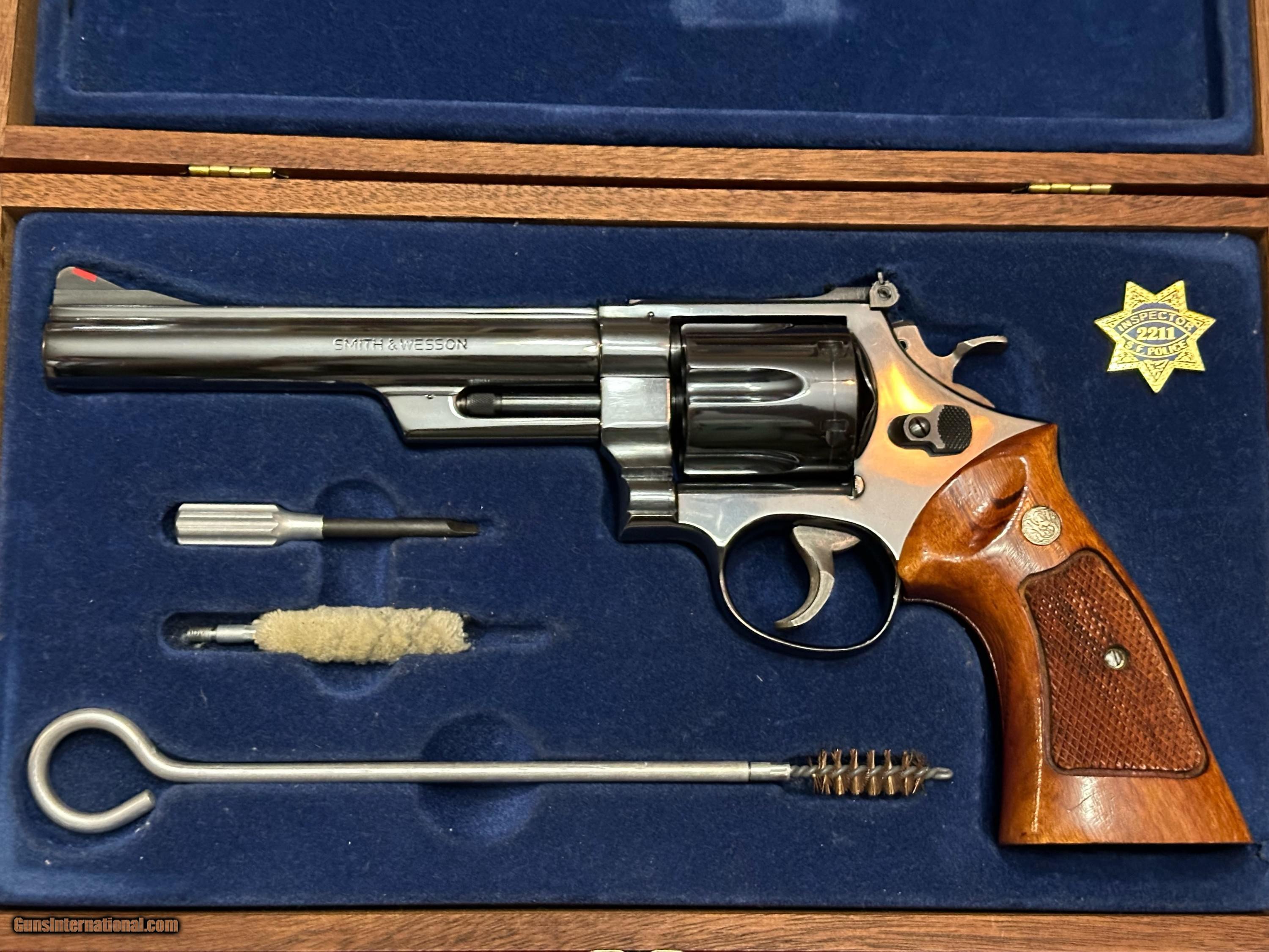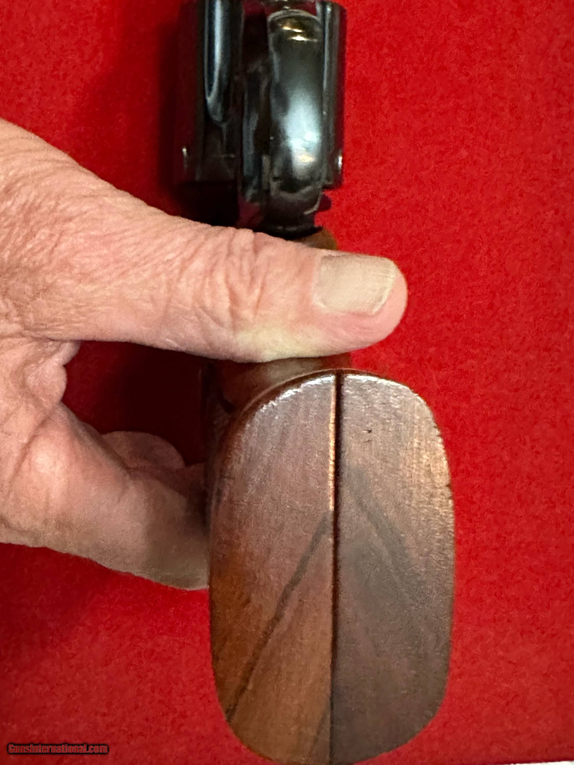 Description: Out of my personal collection I have a very nice 49yr old 1975 Smith Wesson Model 29-2 6.5 in Blue. Made Famous by the 1971 movie Dirty Harry. After the movie came out, it was very hard to find one of these with the 6.5" barrel and if you found one you paid a whopping 196.00 This is a 99% gun. It's a Triple "T" with target sights, target hammer and target grips. She is pinned and recessed cylinder. Includes Factory Presentation Box with paper work and tools. She has no handeling marks, safe nick, hazing of the bluing and perfect with no dents in the checkering of the Target Grips. She has a very very faint turn line that has not cut the whole cylinder. These today are getting very hard to find in a 6.5" barrel in this condition and it must be TRUE since I have the only 2 that are For Sale on GI with 6.5" barrels in Blue. It may not be the most powerful handgun in the world today, but I betcha it can still blow a head clean off. If interested simply give me a call. Sorry but no California. No TEXT. SOLD Handgun Caliber: .44 Remington Magnum Manufacturer: Smith Wesson Model: 29-2 Serial Number: N383965 Barrel Length: 6.5 Chambers: 6 Ejectors: Manual Condition: Excellent Metal Condition: Excellent Wood Condition: Excellent Bore Condition: Bright and Shinny Action: Single action/Double Action Triggers: Factory Finish: Blue Sights: Micro Adjustable and Red Ramp Manufacture Date: 1975 Case: Wood Presentation Item Location: Texas |