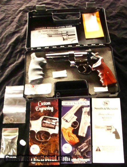 Description: From a mid-west going out of business sale, a new Blued S&W model 29-8 Mountain Gun 44 mag. cal. with a 4" barrel, new in the correct, and numbered to the pistol, factory box with all papers and factory cleaning kit (see photos). At the sale they said this was a limited production pistol and came with rose wood, finger groove, grips and a Houge rubber one piece grip (see photos). I bought this gun as new and unfired, and after close inspection it is obvious to me it has never been fired. I am offering this pistol with a 100% satisfaction guarantee. If it fails to live up to your expectations in any way return it for a full and speedy refund including your return shipping (see my feedback).We trade guns. No reserve. Cashiers check or money order only. I do not recommend firing any weapon until it has been thoroughly examined by a certified gunsmith. Sorry no California sales. Ship to FFL holder only. Shipping $25.00 which includes a tracking number emailed to you. Insurance is optional. Missouri residents pay 8.45% sales tax where applicable. SOLD |