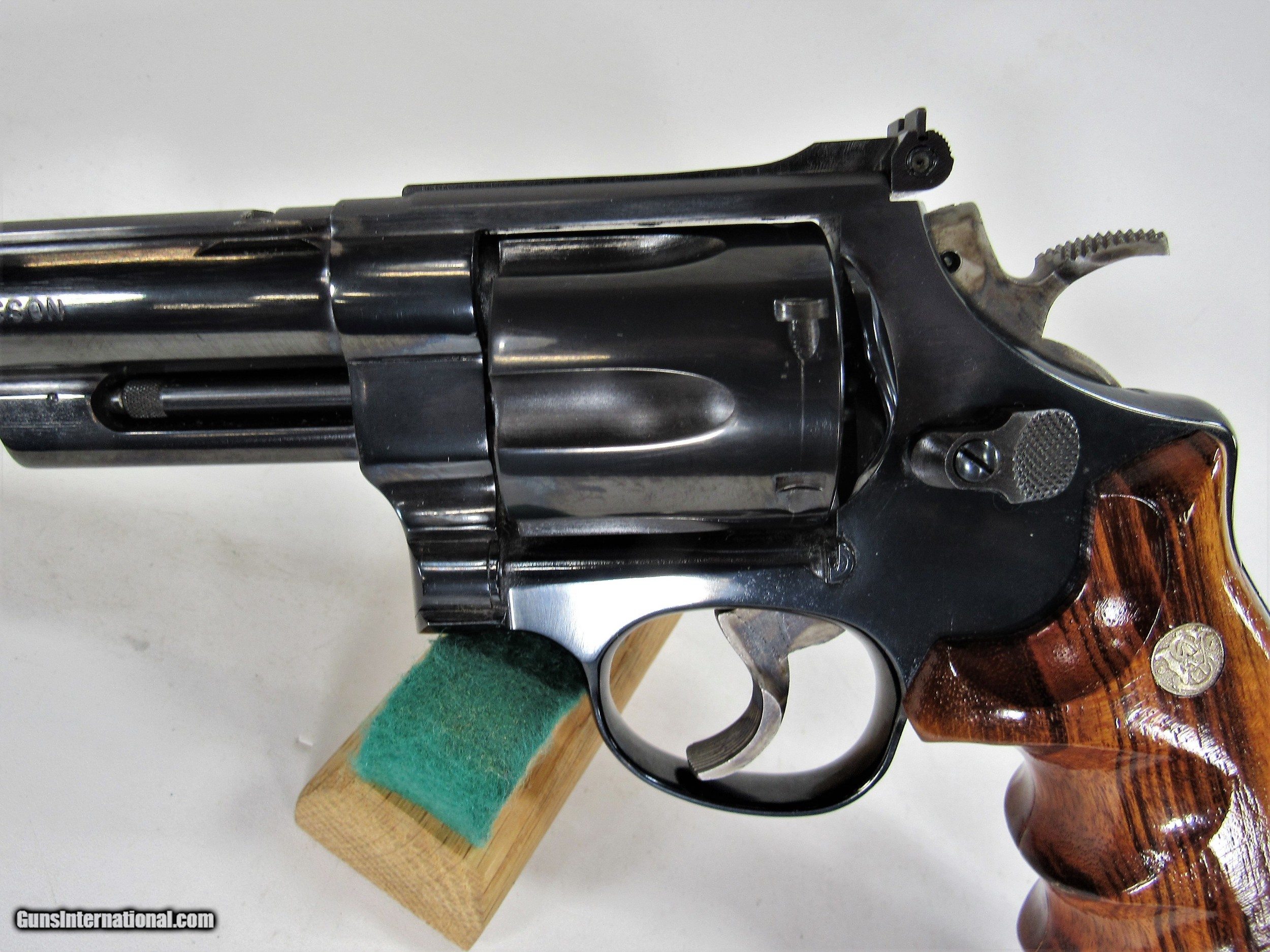 Description: S&W 29-2 44 MG 8 3/8”. FINGER GROOVE S&W GRIPS. FACTORY CUT FOR SCOPE RINGS. 98% WITH BOX. SOLD Handgun Caliber: .44 Remington Magnum |