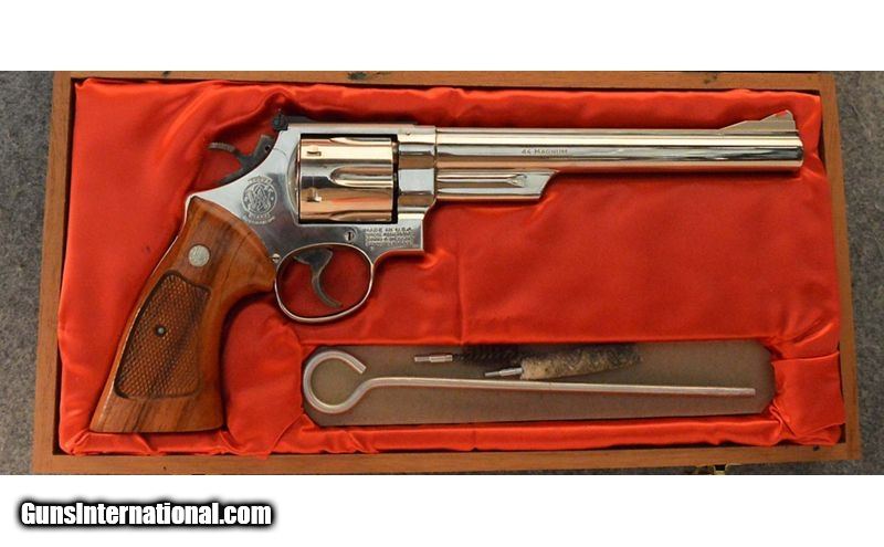 Description: This firearm is an S&W 29-2 chambered in 44 REM MAG. It comes with a presentation box, and is in real nice condition with some very minor handling marks. It is a well cared for Revolver. .44 Remington Magnum SOLD Chambers: 6 shot cylinder. Metal Condition: Few minor handling marks. Wood Condition: No marks in excellent condition. Bore Condition: "Bright and sharp, excellent rifling. Barrels: 8.5" stainless steel. Triggers: SA/DA Butt Pad: S&W checkered grips. Weight: 49 oz. Sights: "Front ramp blade, rear windage, elevation adjustable. Item Location: Sidney, NE |