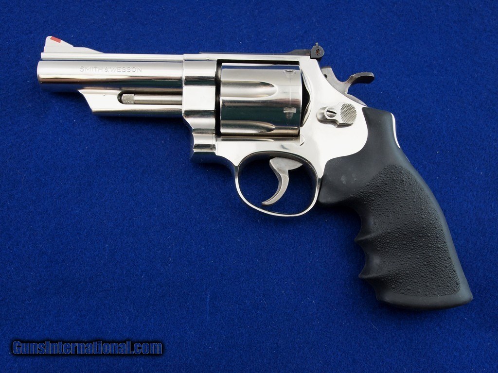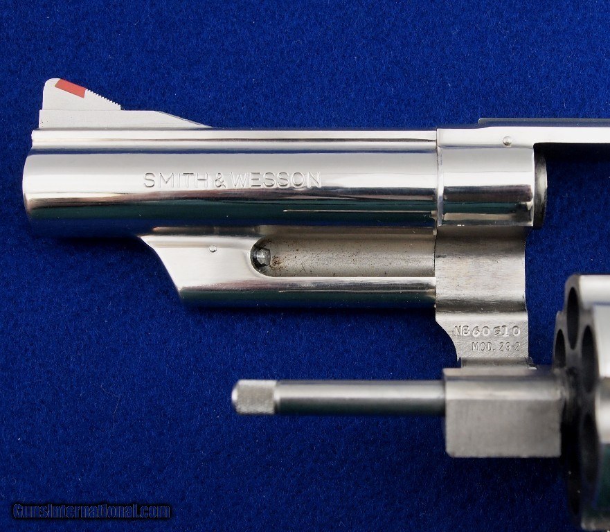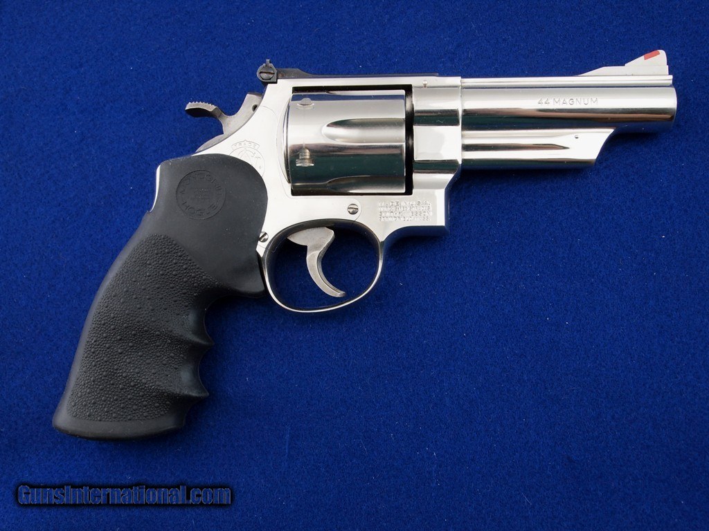 Description: S&W 29-2 Nickel .44 MAG, 4" bbl, bright shiny bore, good rifling, adjustable notch rear sight, ramp front sight, color case hardened serrated target trigger - checkered target hammer, and Hogue black textured grip. Add 3% for Credit Card Shipping $25.00 SOLD |