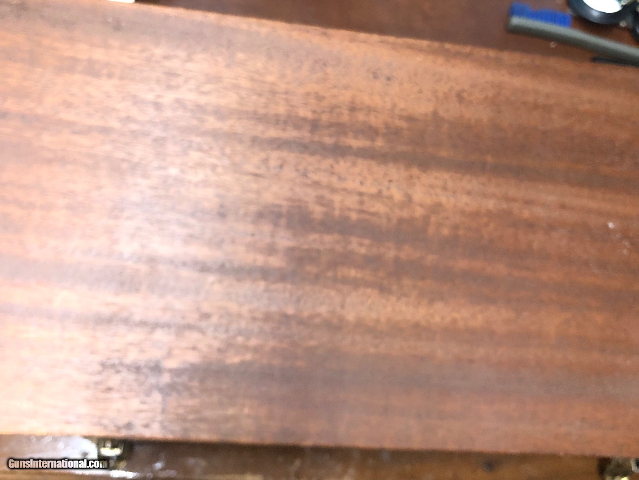 Description: SOLD TO BOB How rare is it to find any gun that hasn't been fired? A 29? SUPER RARE! This 29-2 features blue finish, 6.5 inch pinned barrel, recessed cylinder, target sights, grips, and hammer. Includes wood box with papers and tools. Also includes THE SHIPPING CARTON!! An incredible piece. Please email with questions. Shipping included (west coast add $75). Cards add 3% SOLD Manufacturer: Smith and Wesson Model: 29-2 Barrel Length: 6.5 inch Condition: NIB Metal Condition: Excellent Wood Condition: Excellent Bore Condition: Excellent Action: Da, sa Finish: Blue Sights: Target Case: Yes Item Location: 37075 |