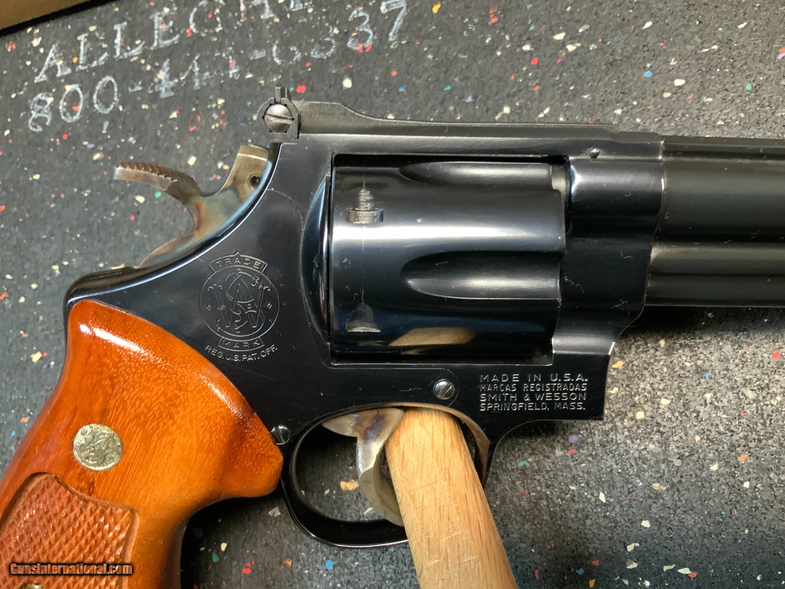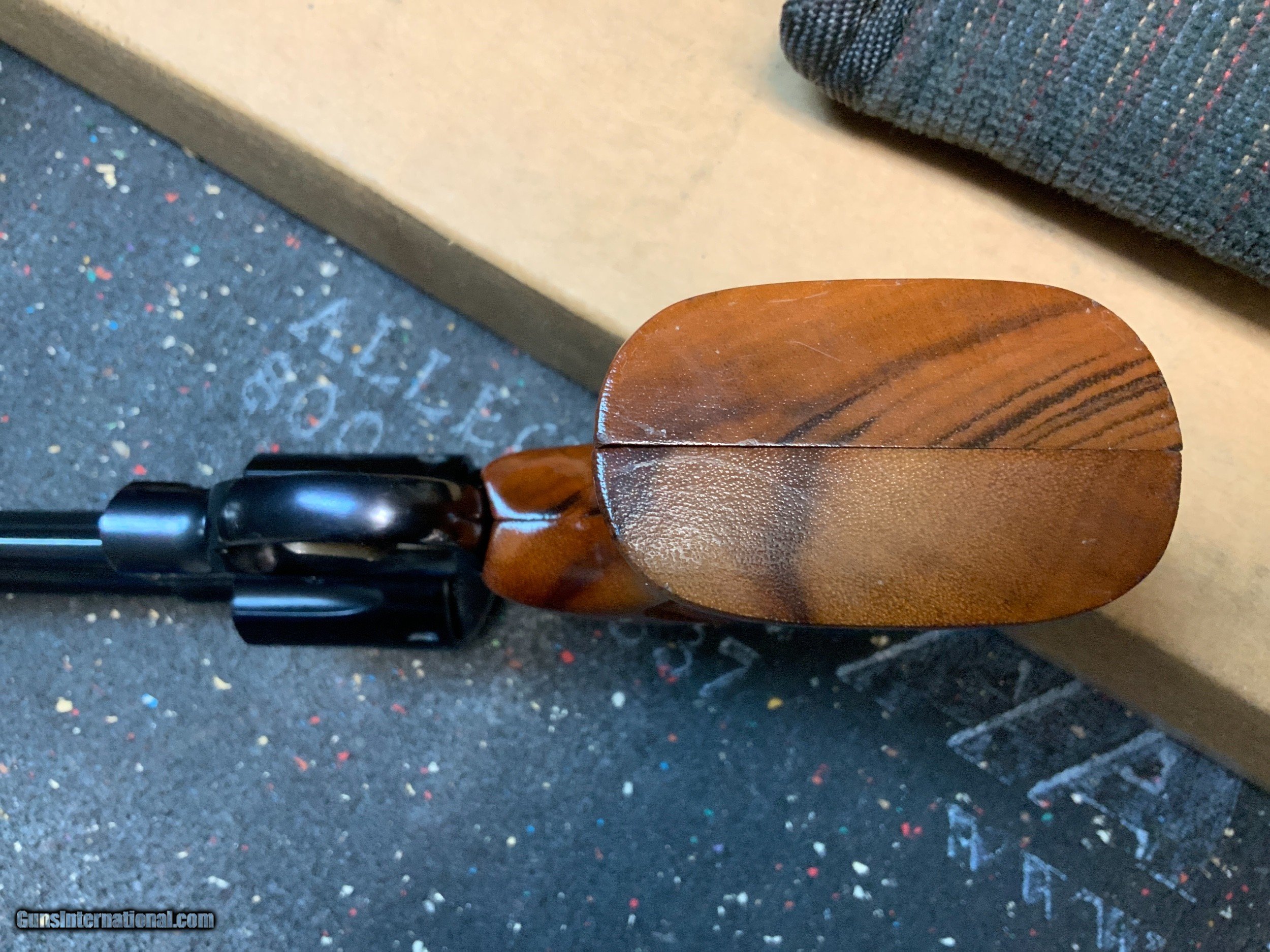 Description: (Sale Pending)S&W model 29-2 Dirty Harry revolver 44 Magnum. This revolver sports the 6 inch barrel with the red ramp front sight and white outlined rear sight. Also the "3T'S" target hammer, target trigger, and target stocks. Fired very little as evident by the recoil shield. Whoever owned this gun loved it and filled the lettering in with white. Just a very faint turn line on the cylinder. Near new condition from 1979. No box or paperwork just a beautiful revolver. Pictures show what you get. Please add $35 for shipping and insurance to your FFL. if your FFL dealer will not except from a private party please add $20 to the cost of shipping to cover my dealers transfer fees. SOLD Handgun Caliber: .44 Remington Magnum Manufacturer: Smith and Wesson Model: 29-2 Barrel Length: 6 Inch Condition: Excellent Metal Condition: Excellent Wood Condition: Excellent Bore Condition: Excellent Action: Double Triggers: Target Stock: Target Finish: Blued Sights: RR/WO Manufacture Date: 1979 |