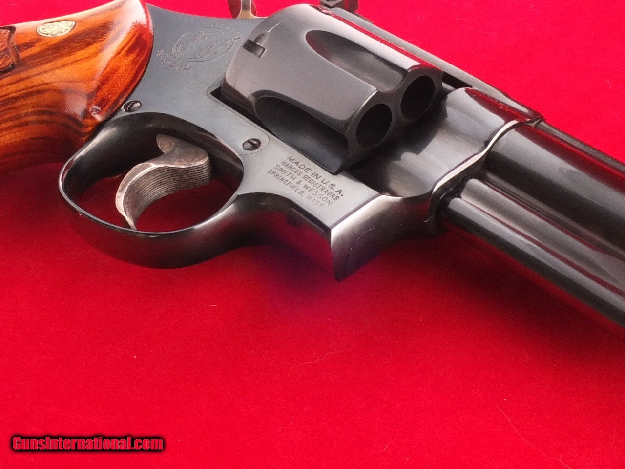 Description: SOLD-SOLD! Mint Condition 1983 First year production Smith and Wesson Model 29-3 10 5/8" "The Silhouette" .44 Magnum Revolver. This revolver is in beautiful "Near New" condition. There is no edge or muzzle wear. There is only a fine turn line, and only the faintest evidence it has been fired. No scruffs, scratches, or dings. The beautiful checkered Goncalo Alves factory grips make this Silhouette Magnum Revolver stand out from the crowd. The beautifully figured grips are near perfect with just one slight hairline on the left grip panel. Mint bore and cylinder. Shrouded extractor, Target Trigger, Target Hammer, and Target Grips. Overall this revolver is mint and beautiful. $1295 plus $35 Shipping and Handling. SOLD Manufacturer: Smith and Wesson Model: Model 29-3 "The Silhouette Serial Number: ADC7367 Caliber Info: .44 Magnum Bore: Mint Chambers: Mint Condition: Mint "Near New" Condition Action: Double Action Triggers: Target Trigger Finish: Factory Blue Manufacture Date: First Year 1983 Item Location: Rio Rancho, NM |