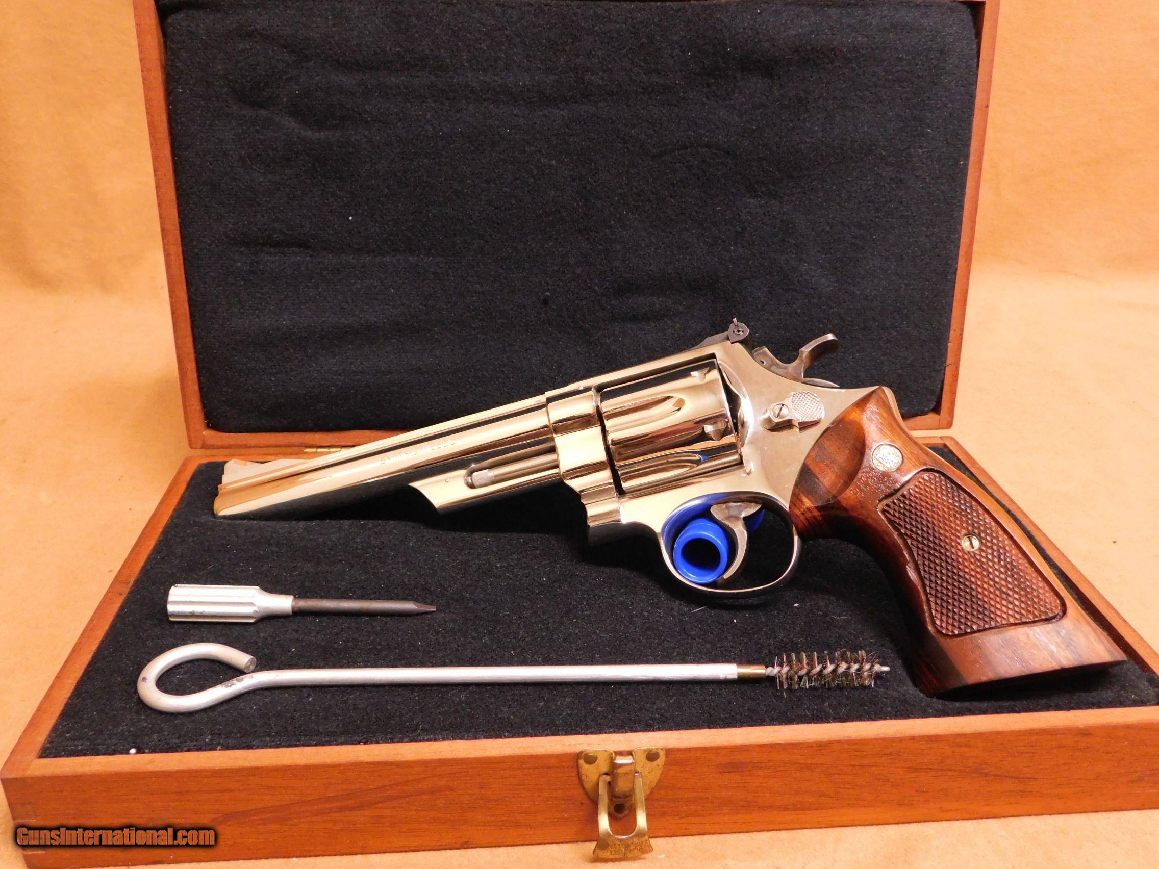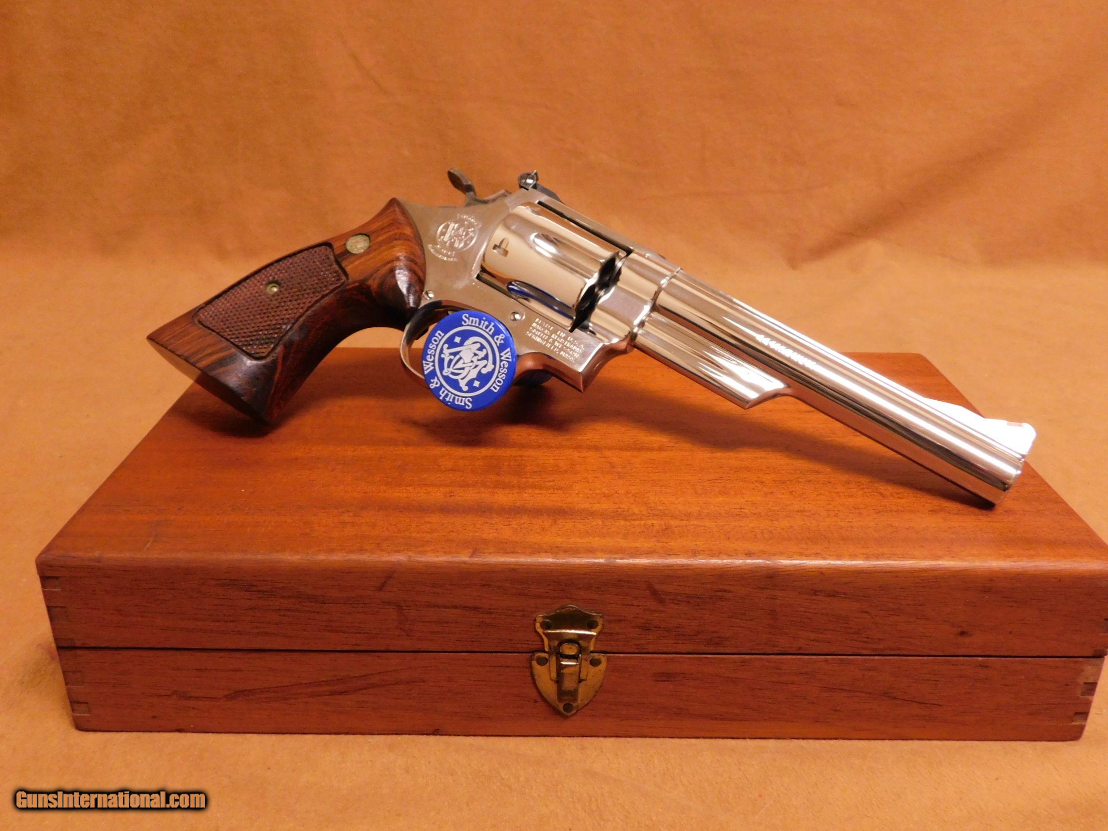 Description: The Smith & Wesson Model 29-2 is a six-shot, double-action revolver chambered for the .44 Magnum cartridge. The original Model 29 was superseded by the Model 29-1 in 1960, with modifications made to the ejector-rod screw. The Model 29-2 then replaced it the following year, with one screw that had secured the cylinder-stop spring being deleted. The barrel length was shortened from 6 1/2" to 6" in 1979. These two versions are known as "pinned and recessed". "Pinned" means that the barrels are screwed in, and secured by a pin driven through the frame and a notch in the barrel. "Recessed" denotes the rear of the bored cylinder holes being countersunk, so that, when loaded, the cartridge rims are fully enclosed by the cylinder. This particular Model 29-2 has a 6 1/2" barrel and was manufactured in 1974. It has a very faint cylinder turn line and a mint bore. It comes in a re-lined presentation case with the tools shown, but no paperwork. All items are also available for sale in our brick & mortar store and are subject to prior sale. Think long, think wrong. We are always buying unique and collectible single firearms and collections. Please give us a call at 859-278-8370 to discuss what you have available. We also offer free appraisals and guarantee TOP DOLLAR PAID for your unique and collectible firearms. Payment On firearms, we typically only accept credit cards or money orders/cashier's checks.