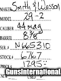 Description: Smith & Wesson 29-2 .44 Mag SOLD Serial Number: N665310 Barrels: 8 3/8 |