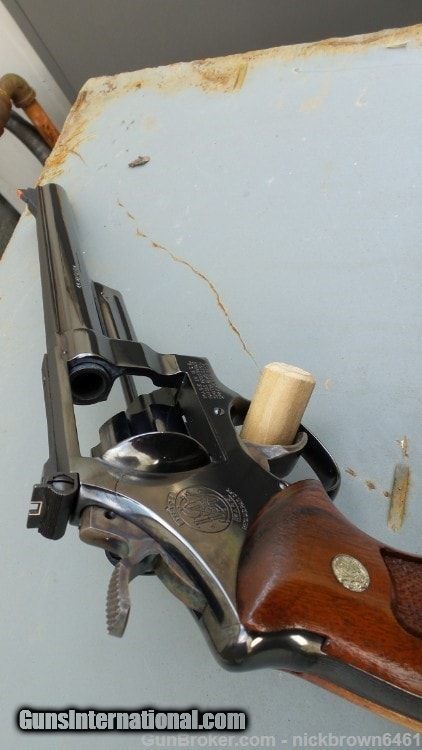 Description: Guns Listing ID: 861476 BEAUTIFUL EXAMPLE 1980 PRODUCTION SMITH & WESSON MODEL 29-2 .44 MAGNUM 8 3/8\" PINNED BARREL RECESSED HAND FLUTED CYLINDER \"TRIPLE TARGET\" TARGET HAMMER, TRIGGER AND GRIPS RED RAMP FRONT SIGHT ADJUSTABLE REAR SIGHT FACTORY PRESENTATION CASE TOOL KIT (SCREW DRIVER, CLEANING ROD, BRUSH AND SWAB) THIS REVOLVER IS IN EXCELLENT CONDITION THE SMITH & WESSON MODEL 29-2 IS BY FAR THE BEST OF THE 29/629/329 FAMILY OF REVOLVER‚‚S. HECK IT IS WAY BETTER THAN THE ANACONDA, THEY CAN‚‚T STAY IN TIME. IF YOU ARE LOOKING FOR AN EXCELLENT EXAMPLE FOR A SHOOTING AND EXHIBITING COLLECTION, HIT BUY NOW! THE LINER ON THIS BOX WAS EITHER REPLACED OR REUPHOLSTER SOLD Manufacturer: SMITH & WESSON Model: 29-2 Caliber Info: 44 MAG Condition: Used - Non-Certified Barrels: 8.375 BARREL Finish: STAINLESS |