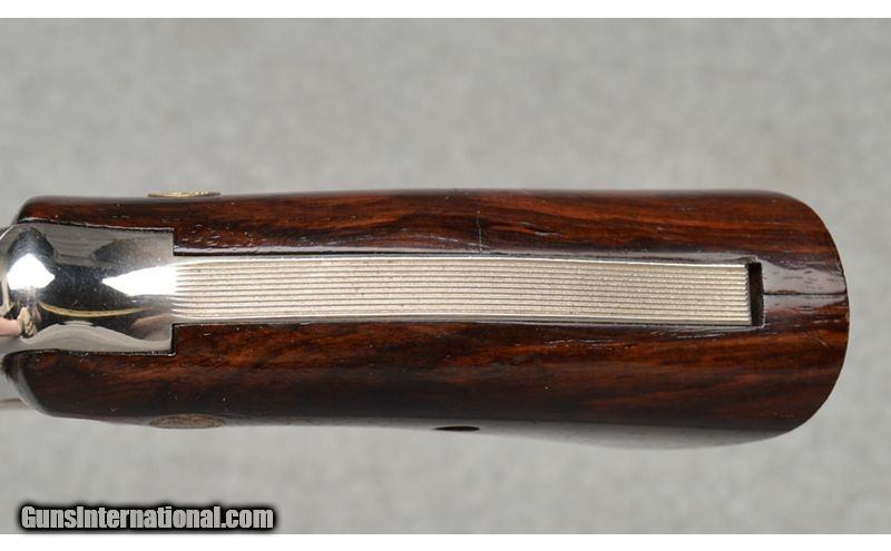 Description: Smith & Wesson Model 29-2 chambered in .44 magnum is in good condition with some surface scratches. It has a smooth wooden grip with some scratches and golden Smith & Wesson medallions on both sides. .44 Remington Magnum SOLD Metal Condition: Good condition with surface scratches Wood Condition: Very good condition with handling marks Bore Condition: Clean and shiny Barrels: 6 1/2 Butt Pad: Smooth Wooden grip Weight: 2 lb 15 oz Item Location: Fort Worth, TX |