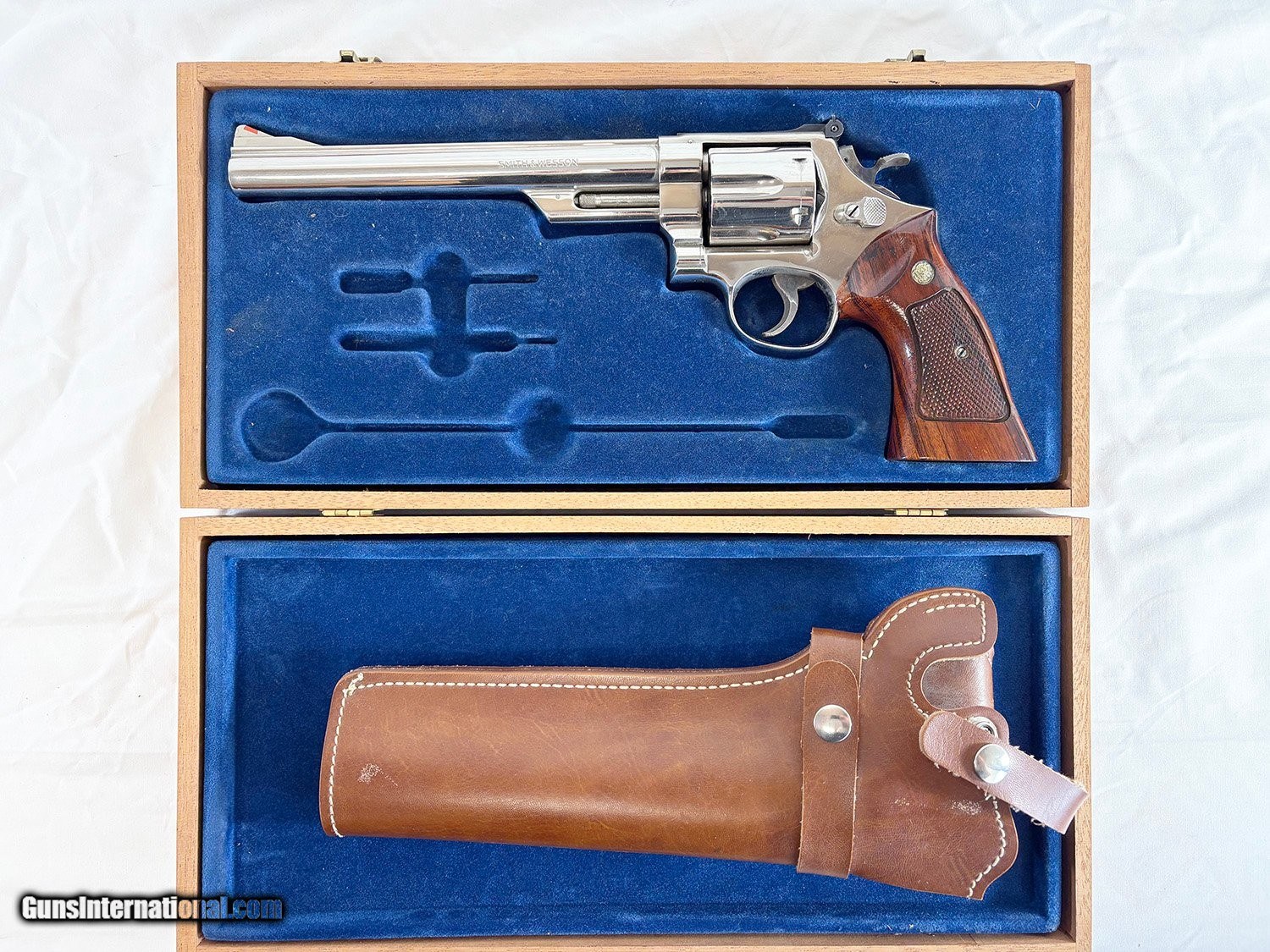 Description: Guns Listing ID: 579117 Up foris a nickel plated Smith & Wesson Model 29-2 with a 8-3/8" inch barrel shipped in 1975. Preowned and in superb condition, Fired very little. Pinned and recessed, target trigger, target hammer, target stocks. Presentation case with original interior. Extra Pachmayr rubber grip and a leather holster Good luck to all s, and thanks for looking! Please see our other s for more rare, unusual, vintage, and desirable pieces. SOLD Manufacturer: SMITH & WESSON Model: 29-2 Caliber Info: .44 MAGNUM Condition: Used - Non-Certified Barrels: 8" BARREL Action: REVOLVER Finish: nickel |