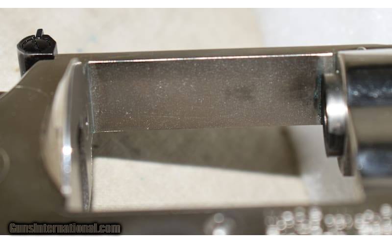 Description: Very nice Model 29-2 with an easy to carry 4-inch barrel, bright polish nickel finish, target width trigger/hammer, and target sights. The "N"-prefix S/N indicates a YOM of 1968 or later. Th e Model 29 was made famous in movies, and real world usage. While the .44 Magnum has been eclipsed by other cartridges over the years, it is still one of the hardest-hitting, and accurate, loads on the market. This pistol, with its 4-inch barrel might be considered a little short for target and hunting, but would work just fine. As a personal defense for all kinds of pests, it would excel. .44 Magnum Chambers: 6 rounds Metal Condition: "Good. There is carbon build-up on the cylinder face, and a light turn line. Locks up tight. Wood Condition: "Good. There are some handling marks, but none are bad. Bore Condition: Shiny and bright with good rifling. Barrels: 4 inches Triggers: Factory double and single action trigger. Butt Pad: Hand-filling walnut grips. Weight: 45 oz Sights: Bright red post and adjustable notch iron sights. Item Location: Rogers Price: $1,599.99 Contact Seller |