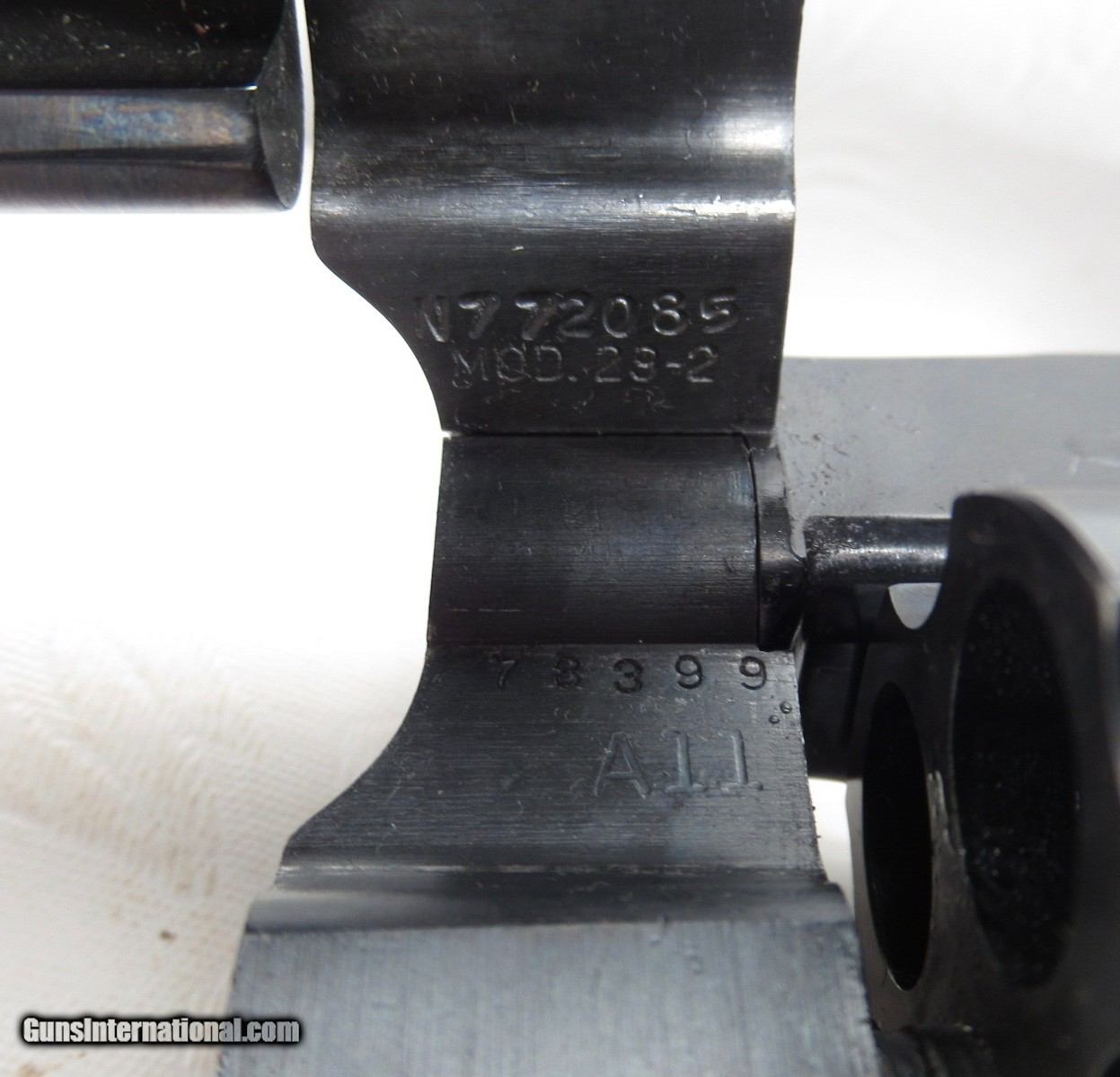 Description: SOLD--Smith & Wesson Model 29-2 Revolver; Serial No. N772085; Made 1980; 44 Magnum Caliber with 4” Barrel; Blue Finish; Nearly All Original Blue Finish Remains; Nice S&W Grips; Perfect Smooth Action and Perfect Bore; All Matching and Correct; Target Hammer, S&W Target Trigger, Red Ramp Sight with White Cutline Rear Sight; Pinned Barrel and Recessed Cylinder; 40 Year-Old S&W with Early Quality; See All Photos for Condition; No Texts. Call or Email Only; PERSONAL PROPERTY of Harold Wieser; Price: $1,175 + $45 S&H Via FedEx Express; Price includes insured shipping; return policy: three days inspection from the date the item is received; full refund of shipping both ways ONLY IF THE ITEM IS MISREPRESENTED. SOLD Manufacturer: Smith & Wesson Model: 29-2 Serial Number: N772085 |