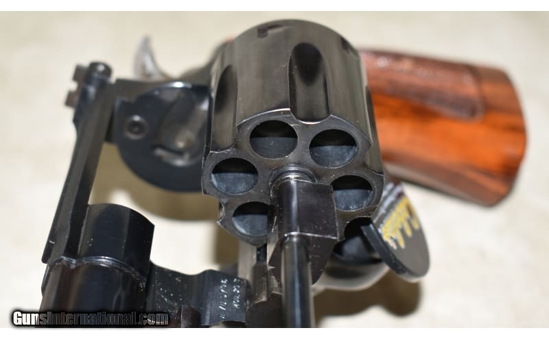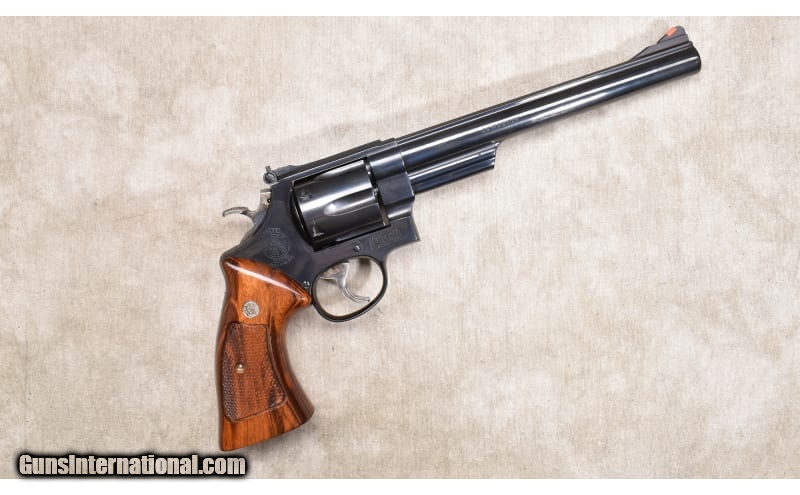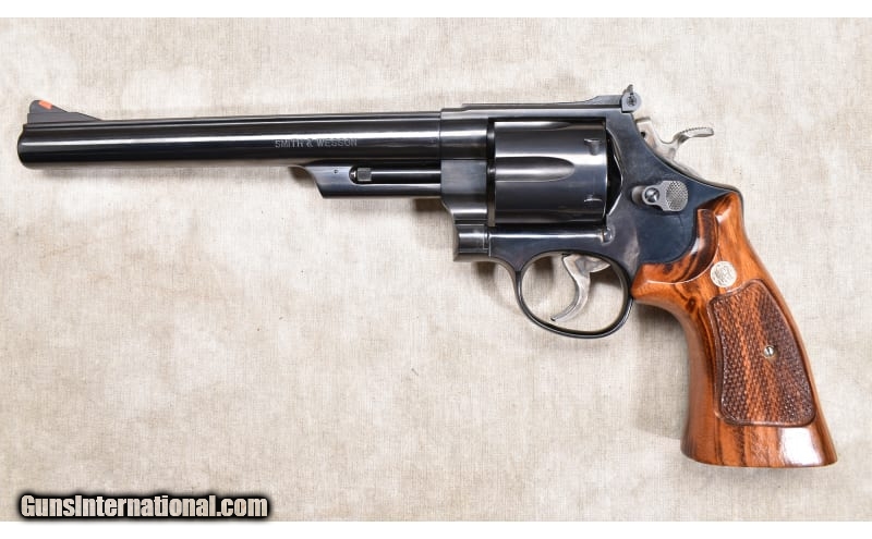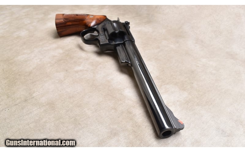 Description: Still one of the "...most powerful handguns in the world." This Model 29 features long hunter's barrel, target sights, wide target trigger/hammer, and hand-filling grips. It wasn't fired much if at all and could pass for a new gun. .44 Magnum SOLD Chambers: 6 rounds Metal Condition: Excellent. Wood Condition: Excellent. Bore Condition: Shiny and bright with good rifling. Barrels: 8-1/4 inches Triggers: Factory double and single action trigger. Butt Pad: Over sized checkered walnut with S&W medallions. Weight: 51 ounces Sights: "Serrated ramp with red insert, and white outline notch. Item Location: Rogers |