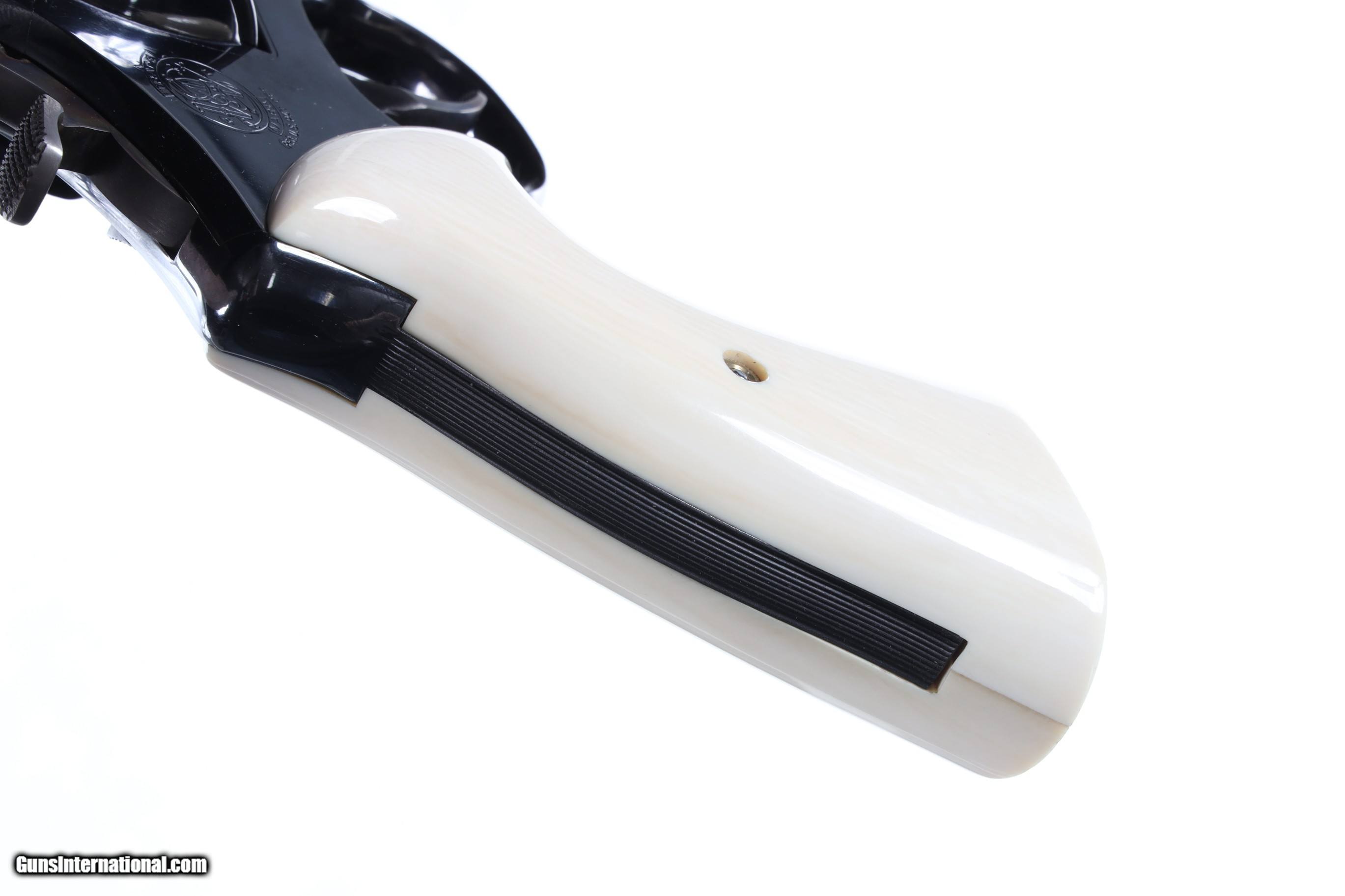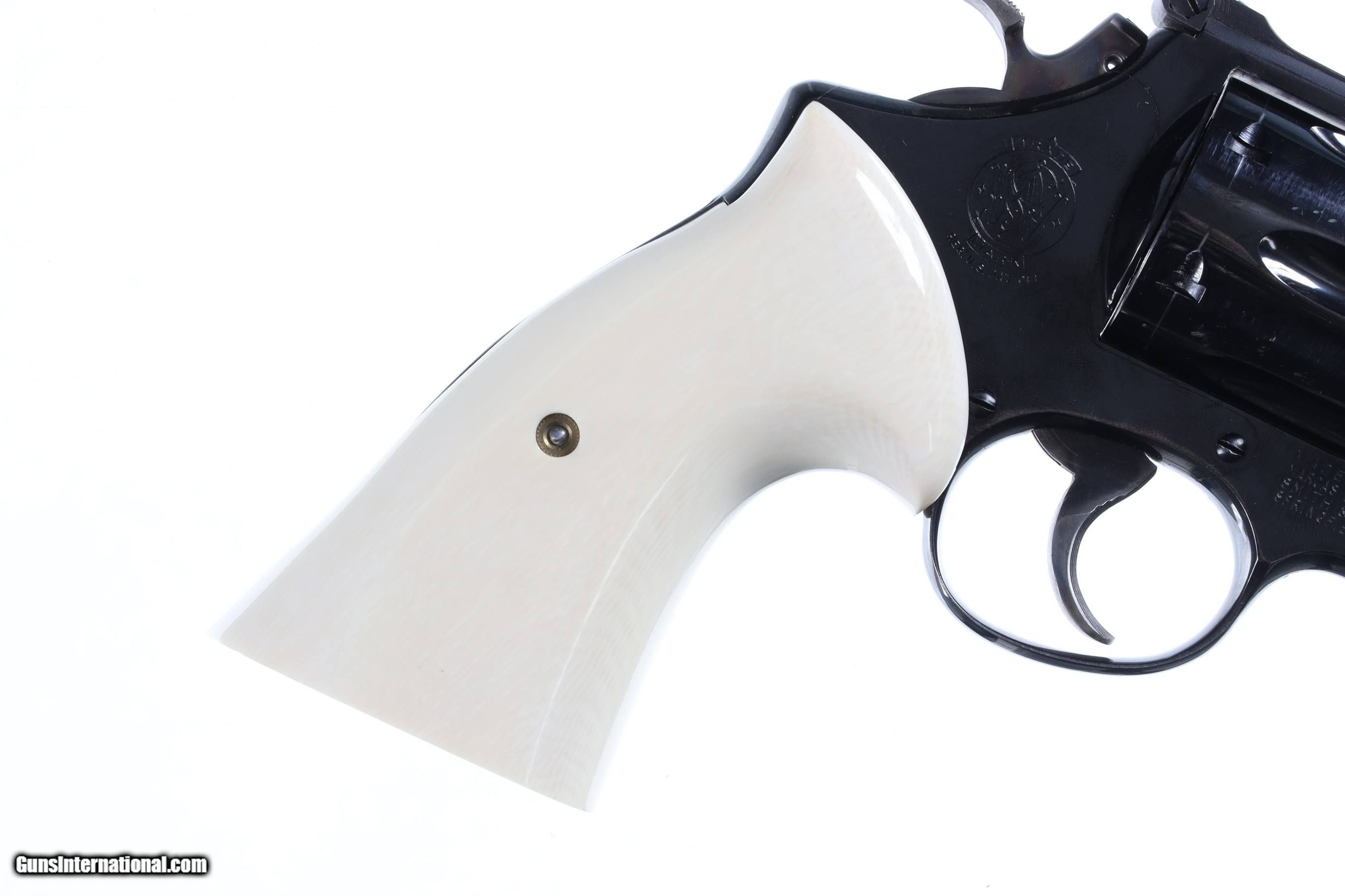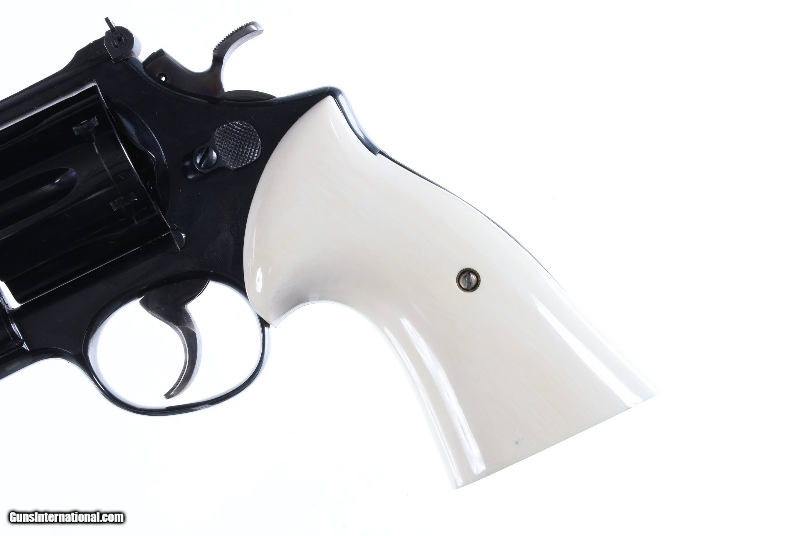 Description: 4-screw frame with target hammer and trigger, pinned barrel and recessed chambers, mounted with a fantastic set of early ivory target stocks. Condition is excellent with a touch of finish loss at muzzle, stocks are superb with no distress and are an amazing fit, bore and chambers are brilliant bright, mechanically excellent. Manufactured c. 1960-1961. • Free Shipping, No Credit Card Fees. • Lay-a-way available for this firearm. • 1/3 Down, a 1/3 in 30 Days 1/3 in 60 Days. SOLD Curio/Relic: Yes Handgun Caliber: .44 Remington Magnum Manufacturer: Smith & Wesson Model: 29 Serial Number: S218881 Barrel Length: 6 1/2" |