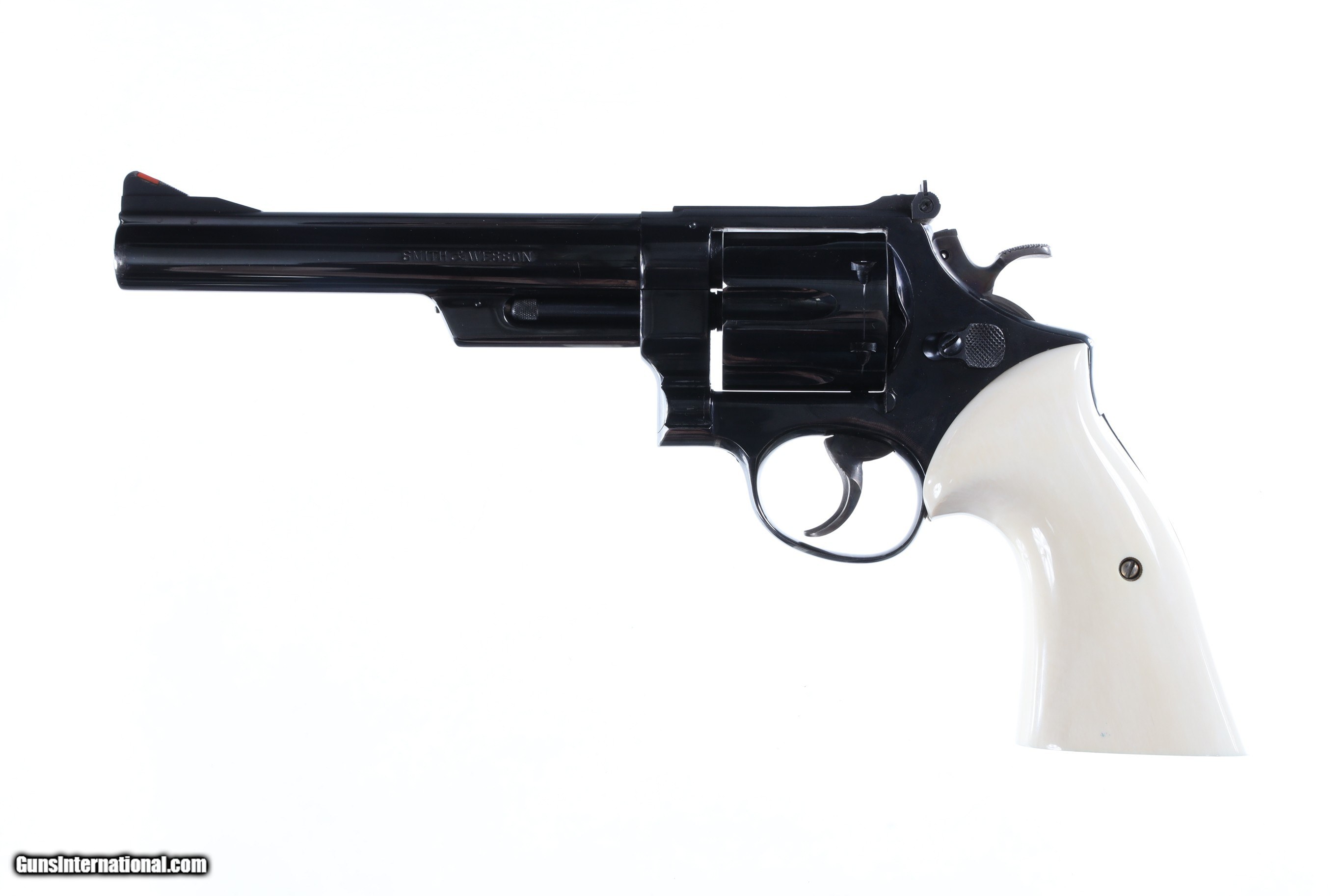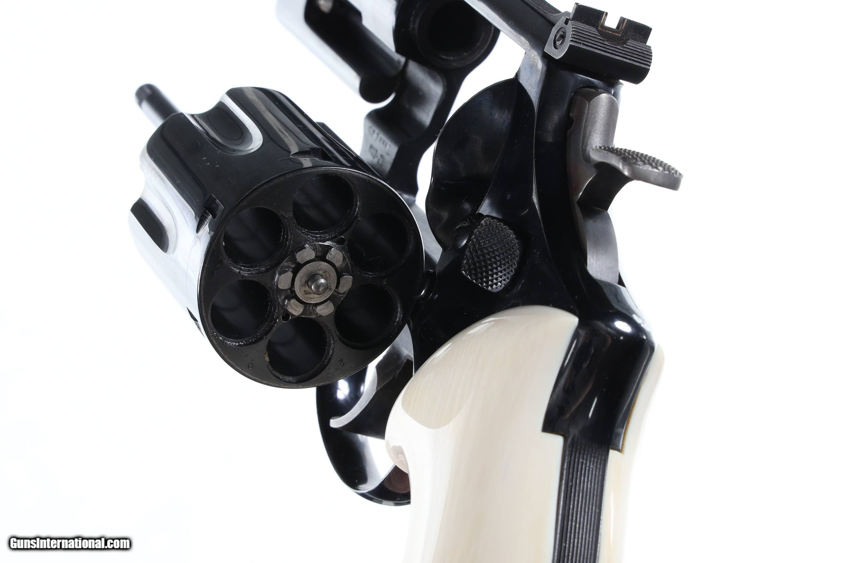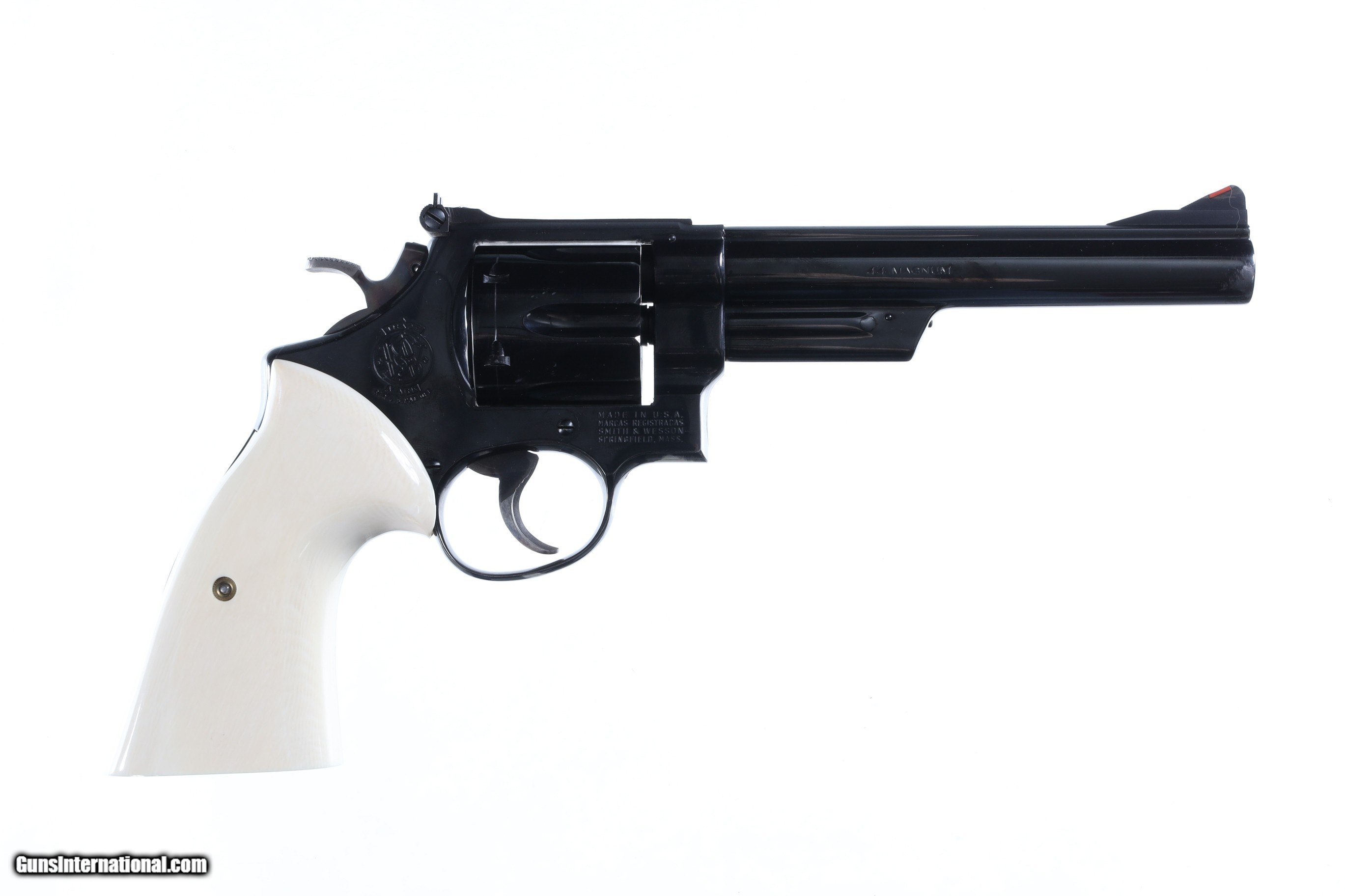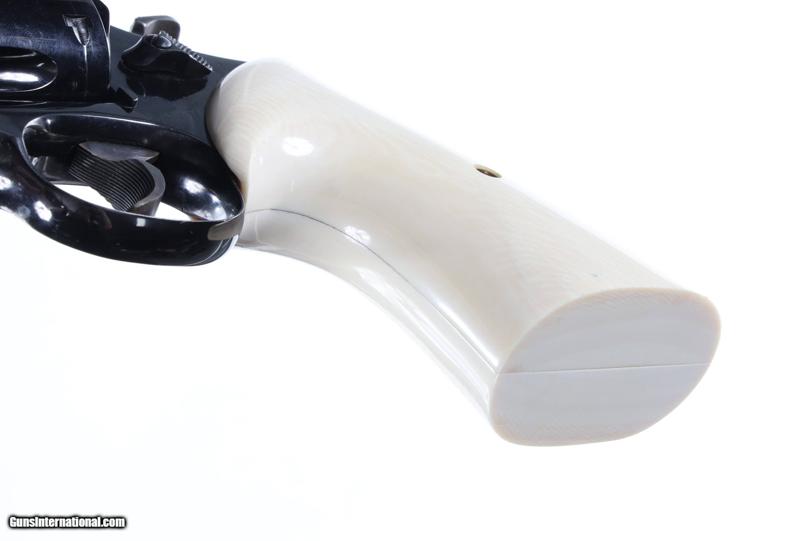 Description: 4-screw frame with target hammer and trigger, pinned barrel and recessed chambers, mounted with a fantastic set of early ivory target stocks. Condition is excellent with a touch of finish loss at muzzle, stocks are superb with no distress and are an amazing fit, bore and chambers are brilliant bright, mechanically excellent. Manufactured c. 1960-1961. • Free Shipping, No Credit Card Fees. • Lay-a-way available for this firearm. • 1/3 Down, a 1/3 in 30 Days 1/3 in 60 Days. SOLD Curio/Relic: Yes Handgun Caliber: .44 Remington Magnum Manufacturer: Smith & Wesson Model: 29 Serial Number: S218881 Barrel Length: 6 1/2" |