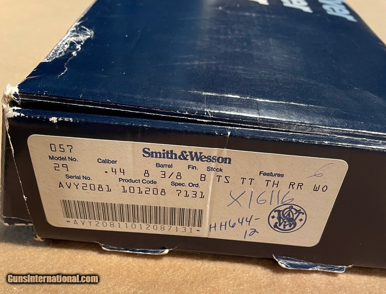 Description: Guns Listing ID: 680489 IT HAS THE ORIGINAL BOX. 1987 MFG. SOLD Manufacturer: SMITH & WESSON Model: 29 Caliber Info: 44 MAG Condition: Used - Non-Certified Barrels: 8.375 BARREL Finish: BLUE |