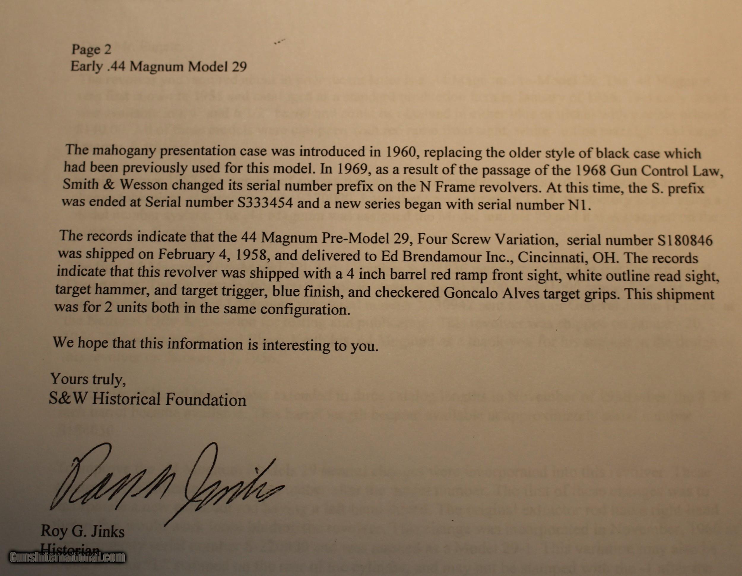 Smith & Wesson 44 Magnum 4" Pre 29 4 Screw Blue with Black Box, Tools and S&W Letter.