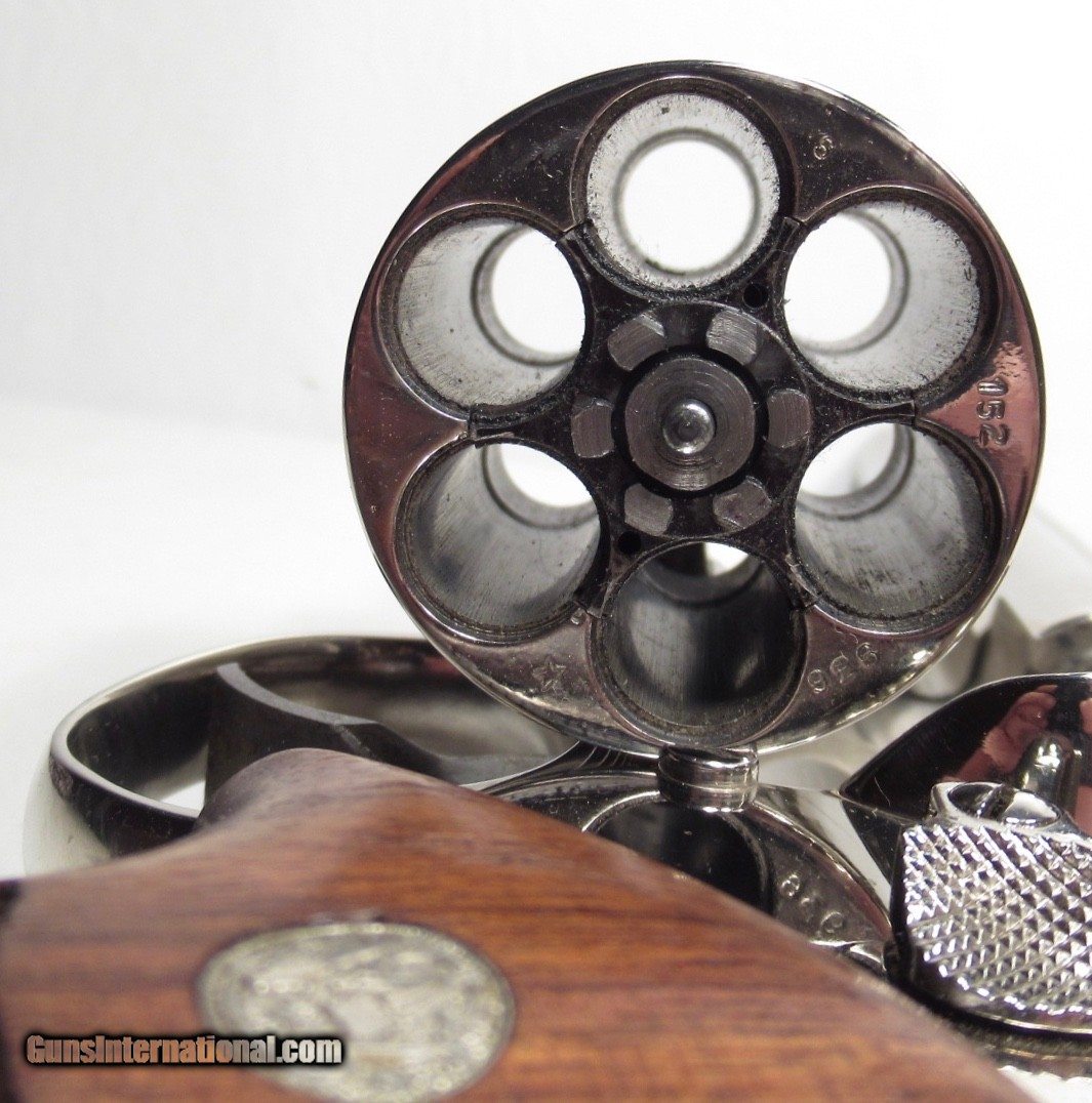 Description: Smith & Wesson 44 magnum (PreModel 29); SN152936; 44 S&W mag. Cal. with 6 1/2 inch bbl; revolver was shipped blue to J.S. Oshman Inc. Houston, Texas on July 30, 1956; gun was factory refinished in Nickel Plate when returned to S&W in April 1973; all matching numbers; PERFECT action and bore; probable law enforcement history with grip cap with badge ‘James Rainey Deputy Constable Harris Co Pct. 1’; also letter addressed to Robert Roberts in Emory, Texas; info I received with revolver was that Mr. Roberts was a retired Houston, Texas policeman who was a firearms instructor; I HAVE NOT verified this information; 63 year old 44 S&W with probable Texas Law Enforcement History; FFL/C&R required for shipping; Price: $2,975 Shipped; Price includes insured shipping; Attention Texas Buyers: We Must Collect 6.75% Sales Tax;return policy: three days inspection from the date the item is received; full refund of shipping both ways ONLY IF THE ITEM IS MISREPRESENTED. Note: International sales only as laws permit. Antiques shipped without license to anyone EXCEPT New Jersey and City of New York, where a FFL is required; (Scroll to view 22 photos of this item). SOLD Curio/Relic: Yes Manufacturer: S&W Model: 44 mag Serial Number: 152936 |