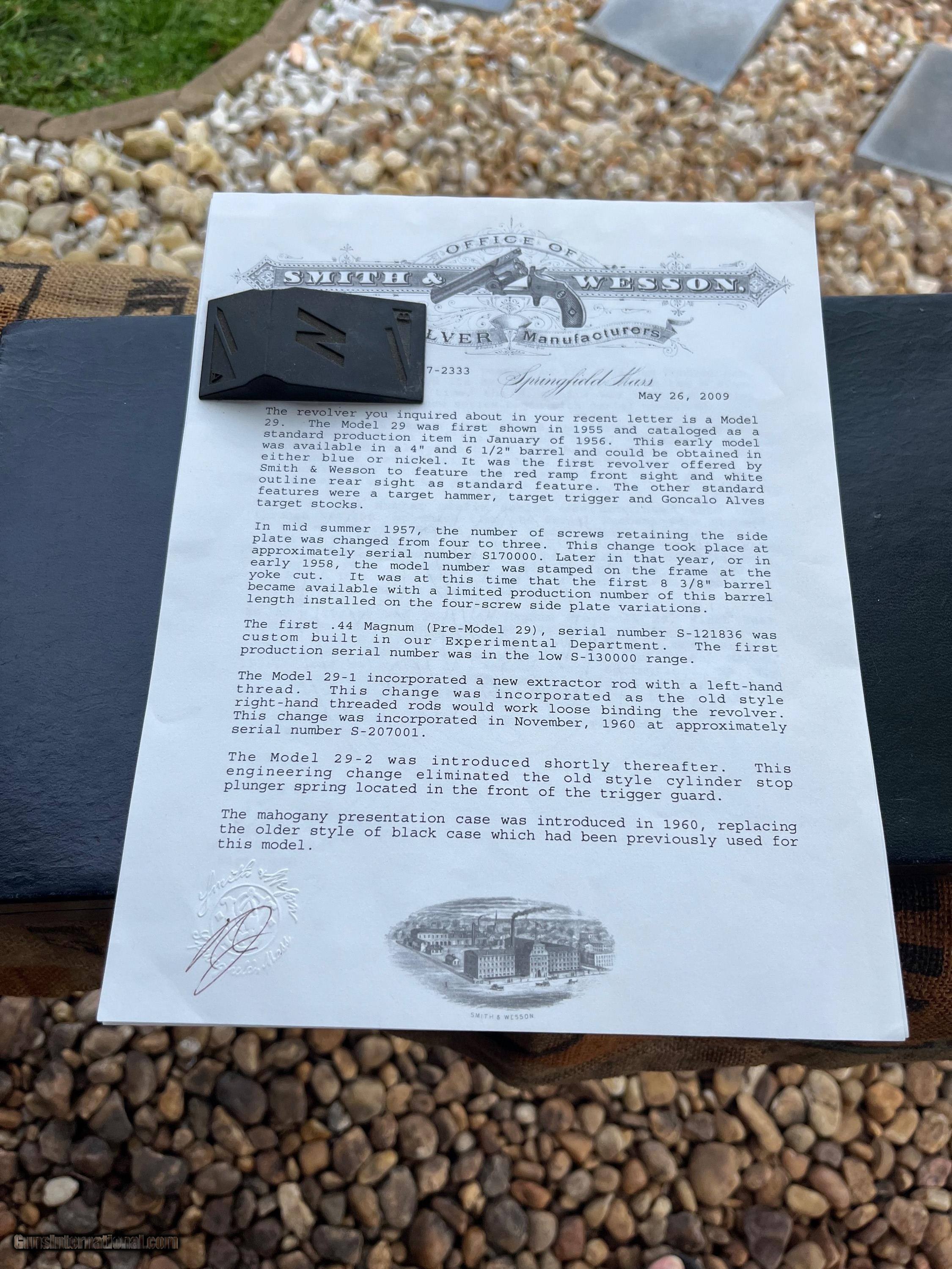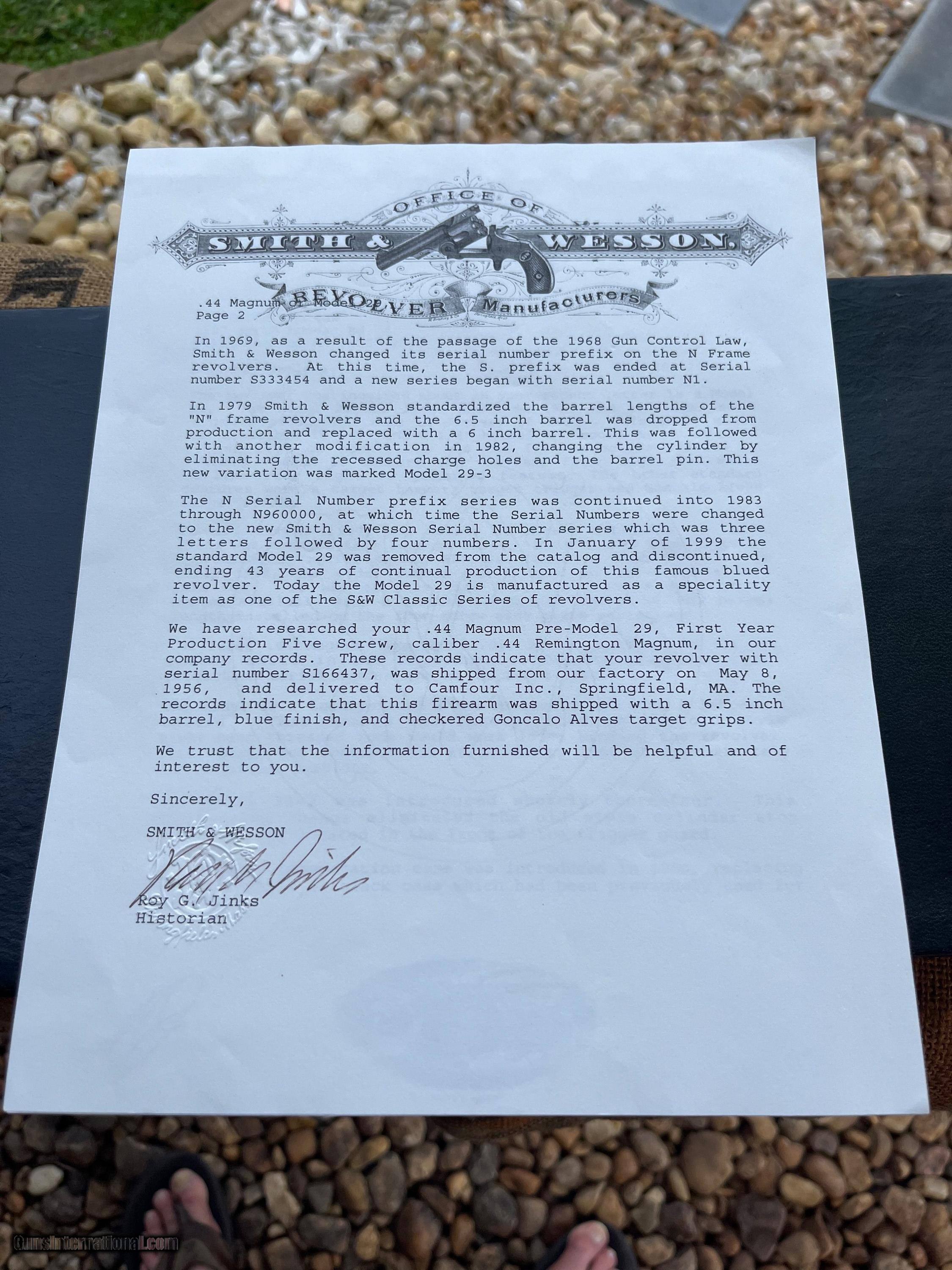 SMITH & WESSON 5 SCREW PRE 29 WITH BOX & LETTER EXCELLENT 1956