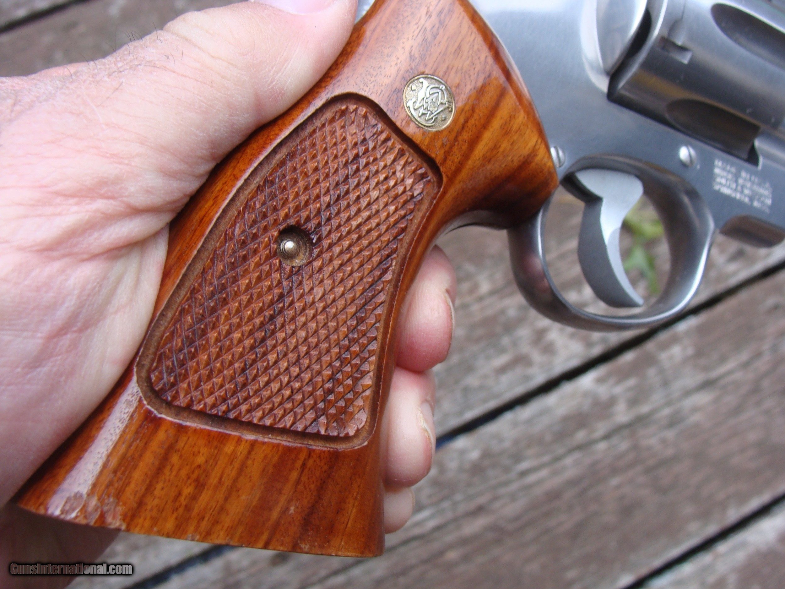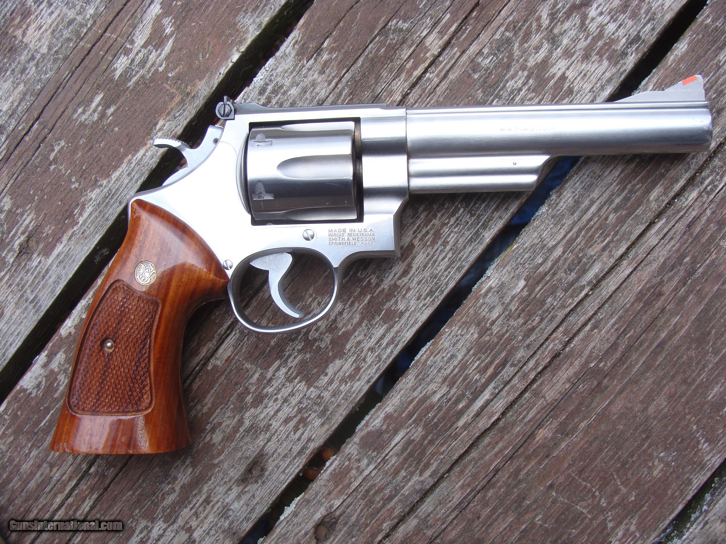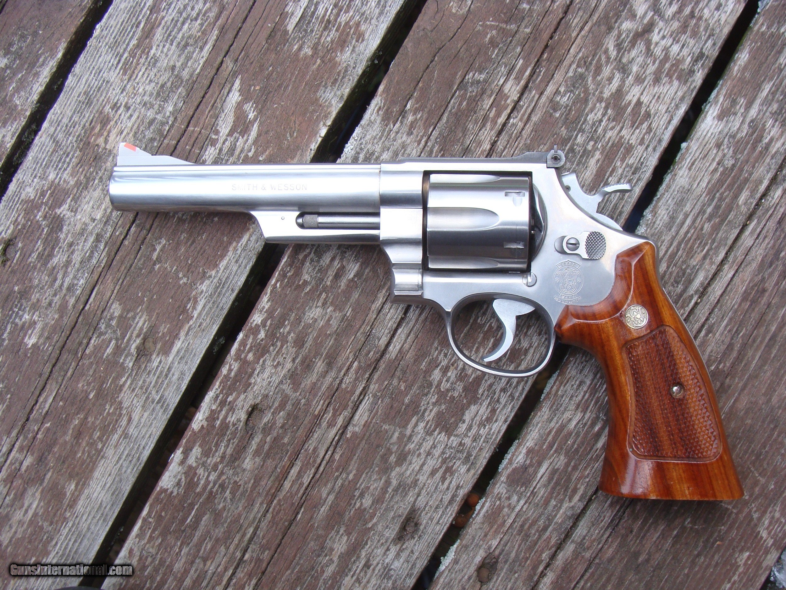 Description: Qaulity well made stainless 629-3, light use, very handsome almost perfect factory wood grips, 6" barrel with only some light handling marks and scratches on surface. Light drag marks on cyl. Great Gun priced under market just in recent trade. Shiping USPS with insurance $ 20.00 WE ARE AN FFL 01 IN THE NORTHEAST WHERE MANY FINE US MADE GUNS WERE PRODUCED AND WE OFTEN GET SOME FAIRLY HARD TO FIND AND HARDLY USED GUNS. WE HAVE OVER 1500 SALES ON ALL SITES WITH AN A+ RATING ON ALL (WE ALSO KEEP AN INVENTORY OF OLDER PERIOD CORRECT SCOPES; CALL WITH NEEDS) WE MOSTLY PICK VERY CLEAN GUNS, PRICE THEM FAIRLY AND WORK WITH MODEST MARGINS WE ARE HAPPY TO TAKE CONSIGNMENT GUNS AND COLLECTIONS OR WILL BUY YOURS OUTRIGHT. WE SOMETIMES ARE EMPLOYED FOR ESTATE PURPOSES AND VALUATIONS. CT RESIDENTS MUST CONTACT US TO UNDERSTAND OUR IN STATE TRANSFER POLICIES. WE CAN TAKE A CREDIT CARD HOWEVER THERE IS A 3% ADD ON BASED ON THE TOTAL FOR USE OF A CARD. IT IS ALWAYS THE BUYERS RESPONSIBILITY TO GET US A COPY OF YOUR RECEIVING FFL'S LIC AND WE REQUIRE A COPY OF YOUR PHOTO ID BEFORE THE GUN SHIPS YOU MUST CALL YOUR FFL.WE DO NOT CALL FOR YOU. LAYAWAY PURCHASES NOT COMPLETED OR ANY RETURNED ITEM UNLESS NOT AS DESCRIBED ARE SUBJECT TO A 10% RELISTING/RESTOCKING FEE AND MUST BE RETURNED WITH NO MARKS OR SCRATCHES, SENT BACK INSURED, PRIORITY SIGNATURE REQUIRED WE DO NOT OFFER AN INSPECTION PERIOD PER SE HOWEVER GUNS MAY BE RETURNED IF NOT EXACTLY AS DESCRIBED HOWEVER UNDER NO CIRCUMSTANCE MAY ANY GUN TO BE RETURNED HAVE BEEN REMOVED AT ANY TIME FROM RECEIVING FFL DEALERS PREMISIS SOLD |