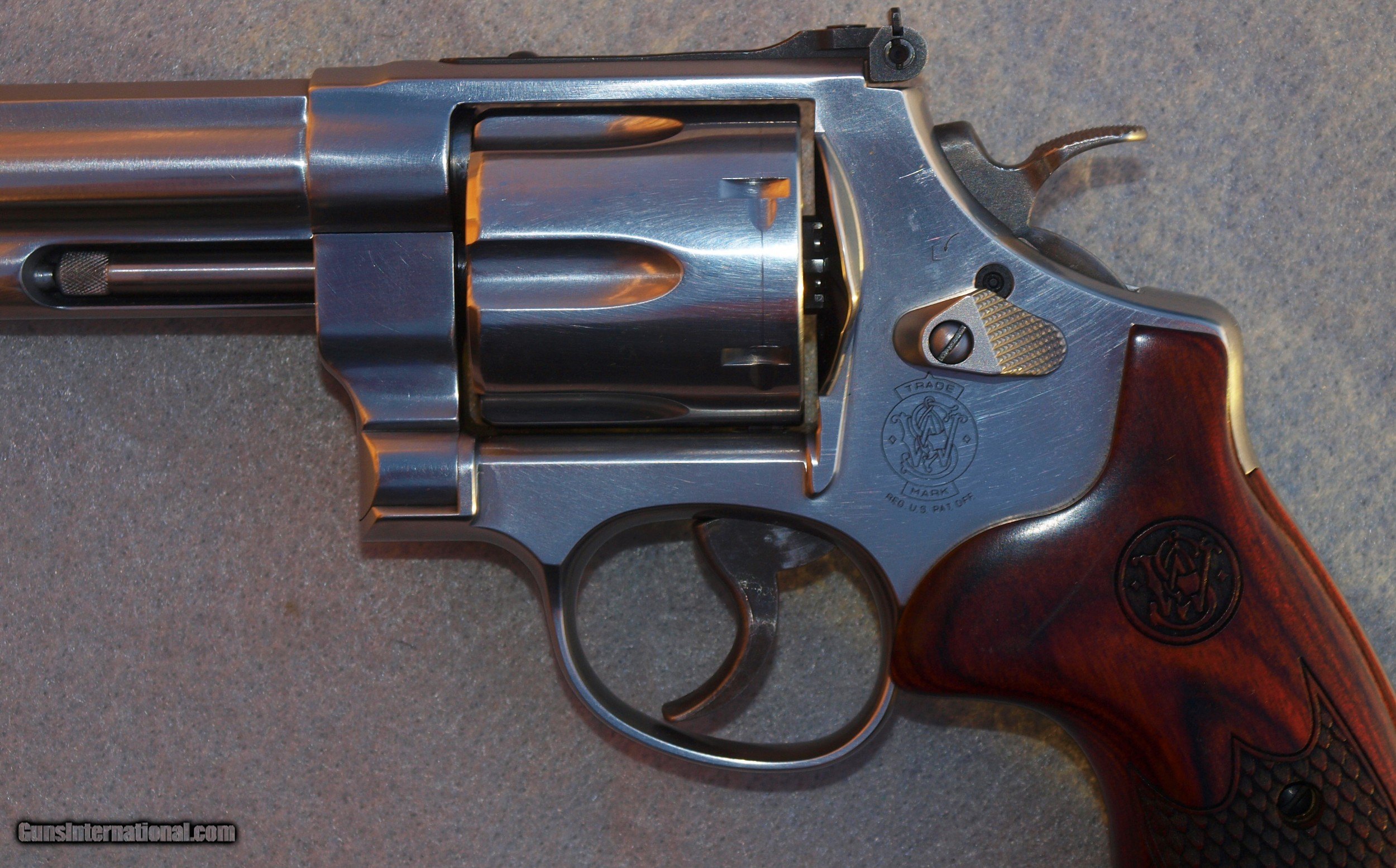 Description: SALE PENDING This 29-6 Classic revolver features Rosewood laminate wood stocks and a satin stainless finish. It is in excellent used condition with a clean cylinder and bore. The hammer is checkered and case hardened. The lockup on the cylinder is tight and in time and the double action and single action trigger pulls are smooth and snag free. All in all in great mechanical working condition. The trigger is case hardened as well. The front sight is ramp style sight that is interchangeable with S&W sights. The rear sight is fully adjustable with a square notch white outline. Barrel length is 6.5" Shipping, $20.00 to an FFL only within the USA. MAKE OFFER. SOLD Handgun Caliber: .44 Remington Magnum Manufacturer: Smith & Wesson Model: 29 Condition: Excellent Metal Condition: Excellent |
