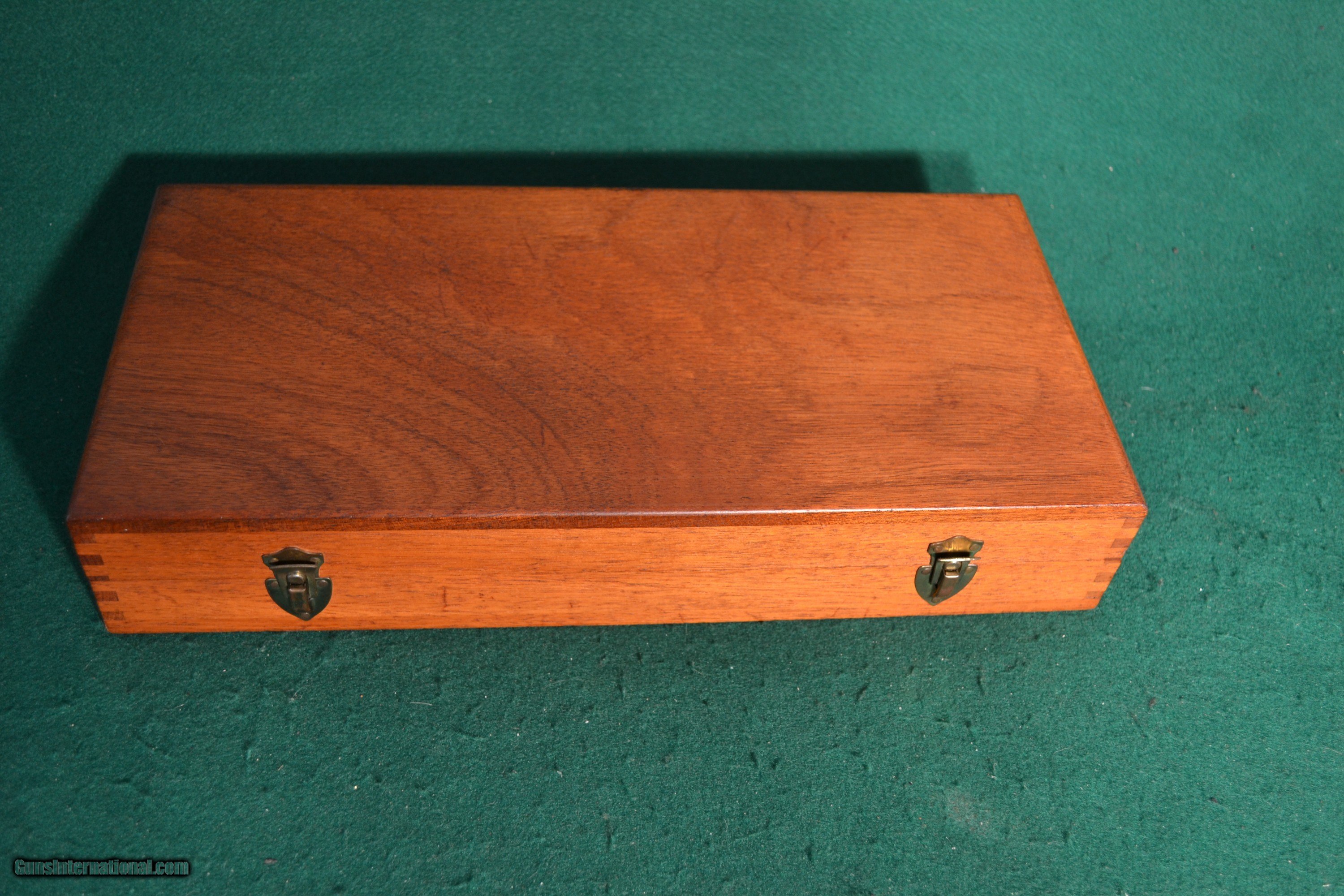 Description: Sale Pending !! This S & W M29-2 was mfg abt 1979-80 w/a Ser # of 667XXX. It is in a S & W type presentation case w/a sillouete recess for both the firearm and accessories. It appears unfired (See pics of Cylinder & chamber). It is a 44 Magnum in a beautiful Nickel finish (Abt 98%). The grips are also very nice (Abt 95%) & the case is excellent. The action is normal w/a bright bore & excellent rifling. The case w/this M-29 makes a beaufiful collector's piece and an excellent way to store to store it away in your safe. SOLD Handgun Caliber: .44 Remington Magnum Manufacturer: Smith & Wesson Serial Number: 667XXX Barrel Length: 8 3/8 Bore: Bright Chambers: Very Clean Condition: Excellent Metal Condition: Excellent Wood Condition: VG - Excellent Bore Condition: Shiney w/Excellent Rifling Action: Double - Action Triggers: Target Finish: Nickel Sights: Frt Pidgeon w/Orange Sight, Rear - Adjustable Manufacture Date: 1979-80 Case: Hardwood Walnut |