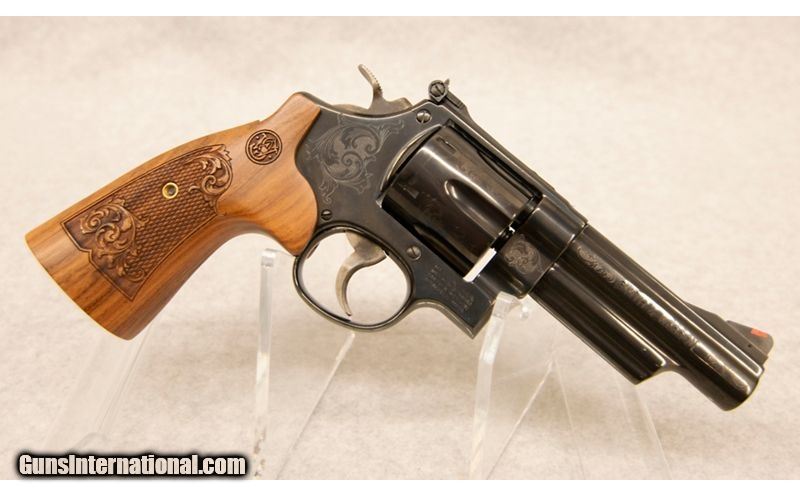Description: Smith & Wesson Model 29-10, chambered in .44 Magnum, and with a 6 round cylinder. Beautiful engravings all along the blued frame, and along the checkered grip. Near pristine condition. .44 Magnum SOLD Chambers: .44 Magnum Metal Condition: Very Good Wood Condition: Very Good Bore Condition: Very Good Barrels: 4' Sights: Adjustable Rear Item Location: Fort Mill, SC |