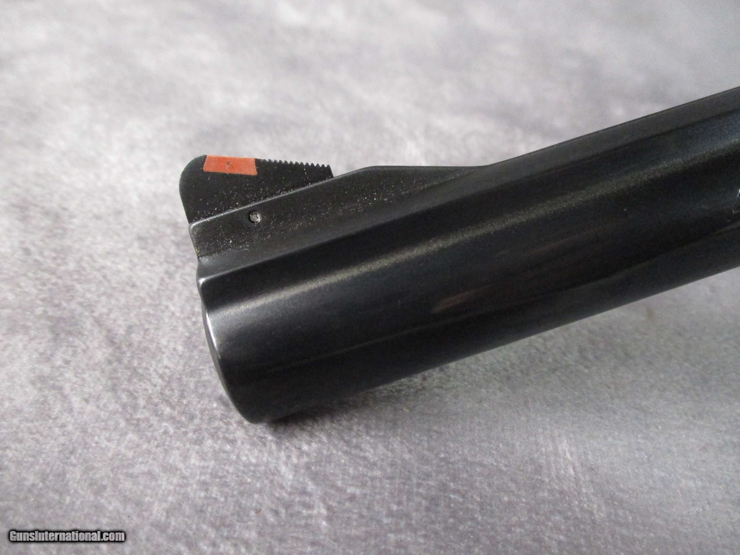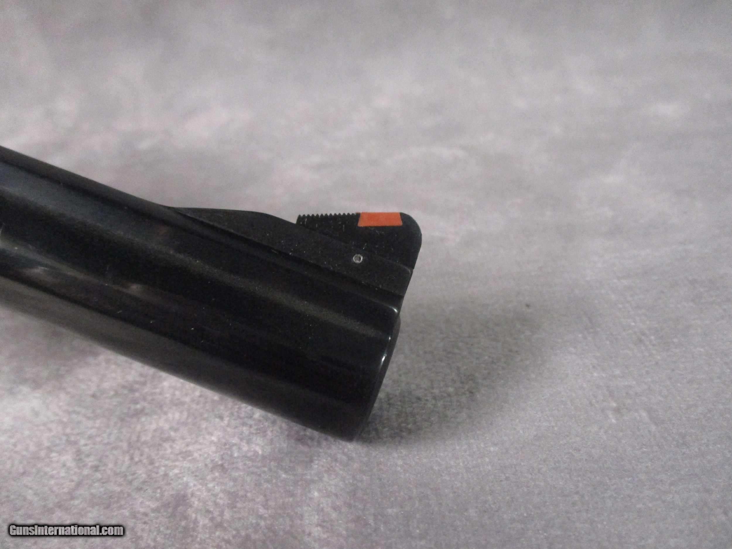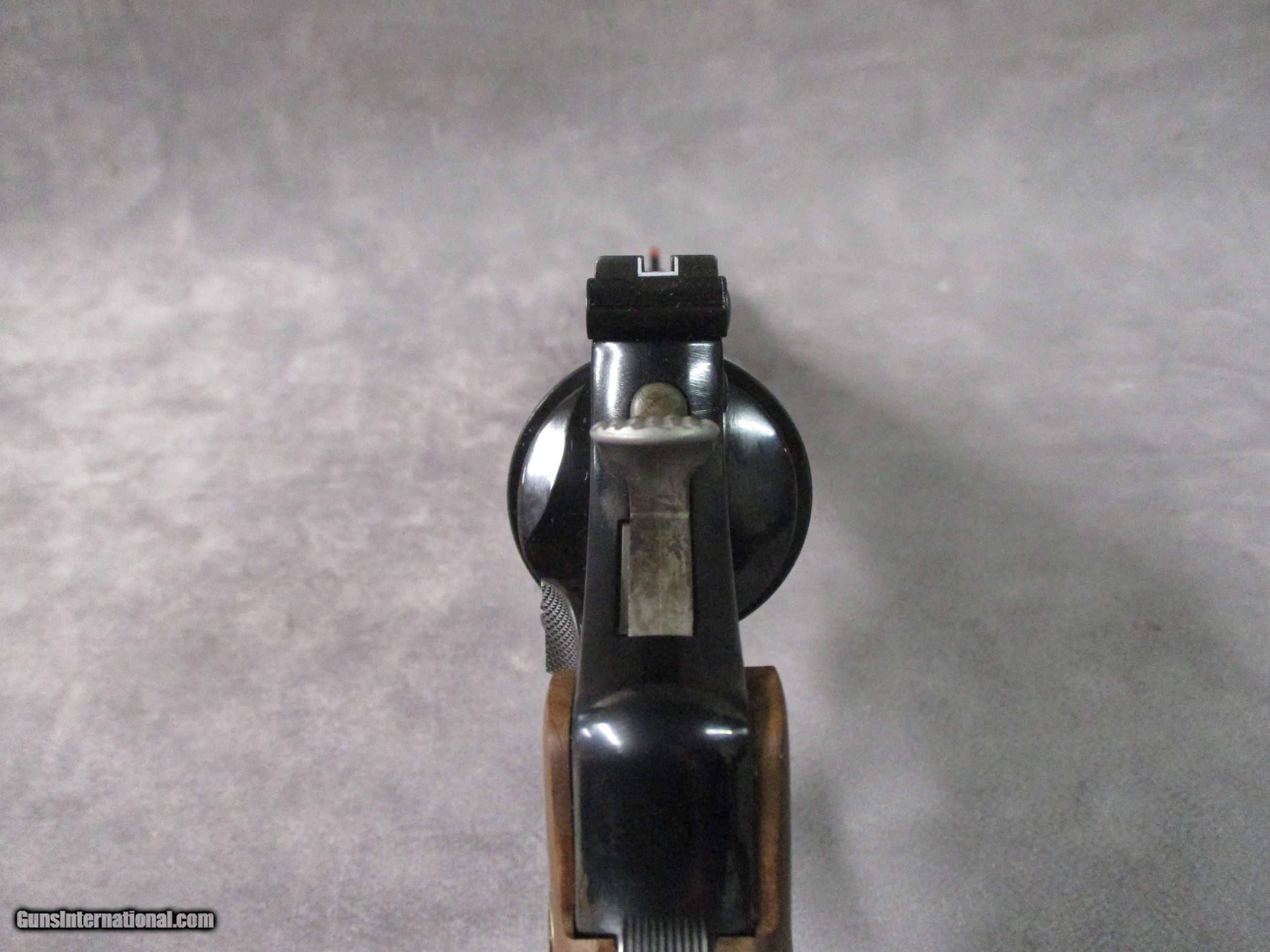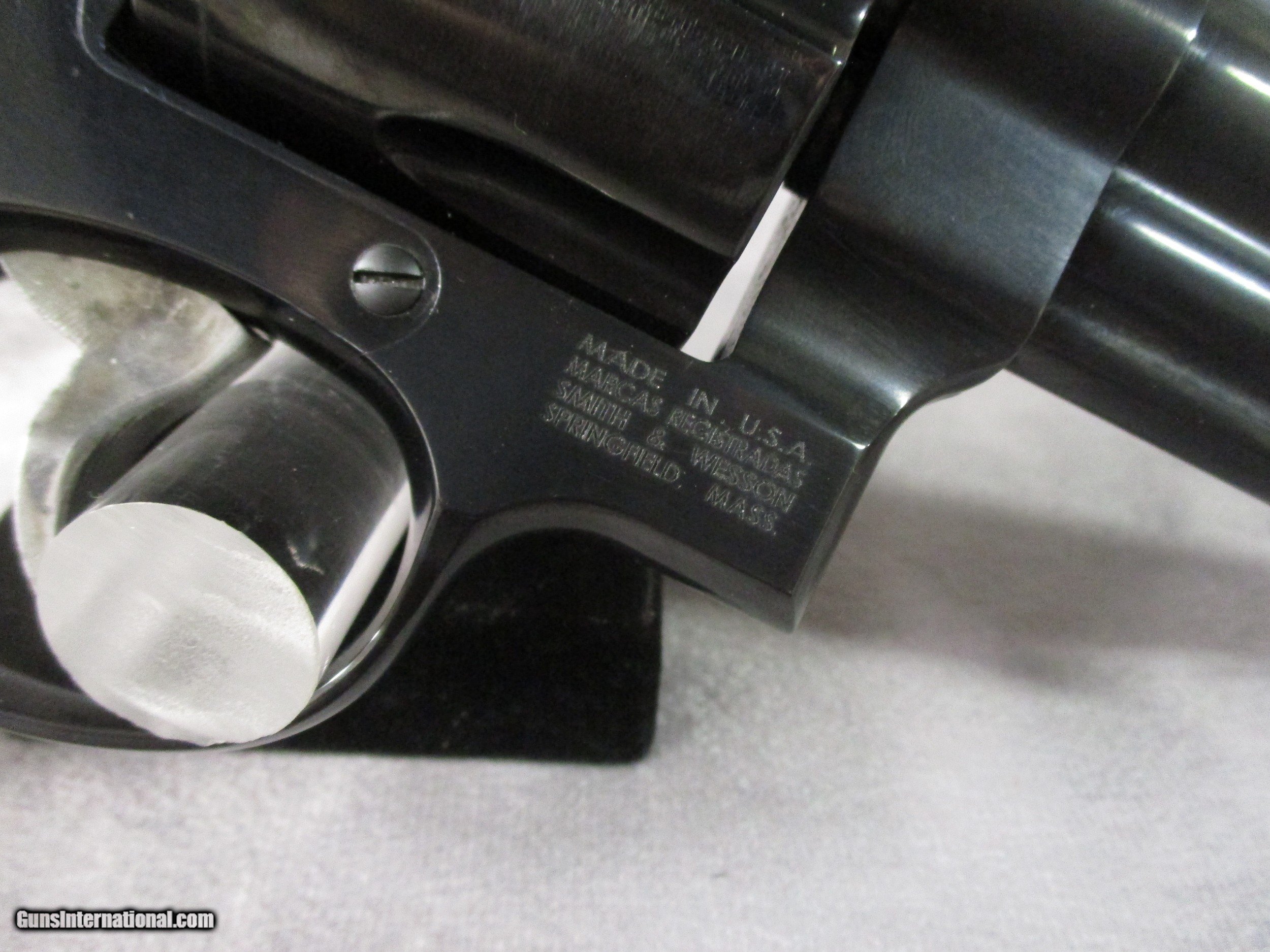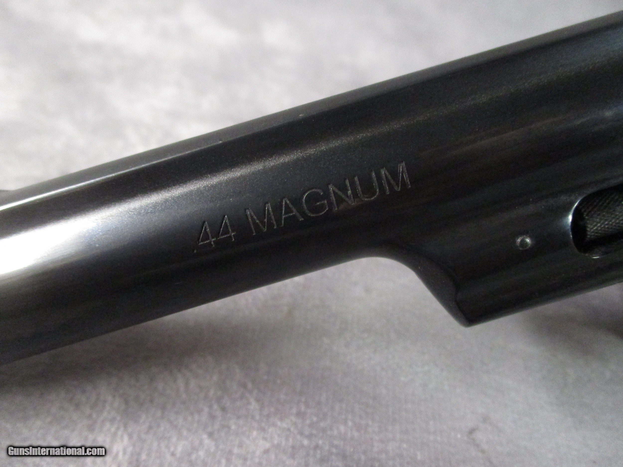 Description: This is perhaps one of Smith & Wesson’s most famous models. The 29 was intended to allow the shooter to have a revolver possessing better knockdown power than any revolver or semi-auto pistol in production at the time of its introduction (1955). The example here is one of the “Classic” models. Its features include: a 6.5-inch half-lug barrel, square butt frame, .500-inch grooved target trigger, .500-inch target hammer, ramp front sight with red insert, and white outline on the rear sight blade. The serrated backstrap has 10 grooves. The grips are checkered target types. Smith & Wesson refers to these as “target stocks.” The 29’s popularity increased drastically in 1971 with the release of the film Dirty Harry, starring Clint Eastwood. Although the 29 he normally carried had the 6.5” barrel, some scenes as well as posters depicted him with the 8.375” barrel. Indeed, of the two 29 revolvers used in the film, one was a 6.5” and the other an 8.375”. For the actual shooting sequences however, a Model 25 in 45 Colt was used as the 5-in-1 blanks were plentiful while 44 Mag blanks were yet not available. In the real world, the Model 29 has been used for everything from hunting to target shooting. It has also been used by law enforcement, although never on an “as issue” basis. This example is in excellent condition with some light wear. One very nice feature of the 29 is that like any 44 Magnum revolver, it will also safely fire the .44 S&W Special and .44 S&W Russian cartridges in addition to the .44 Magnum. This allows the owner to practice with the gun frequently and not have to worry about hurting their wrist. With this 29’s long barrel, the .44 S&W Russian would likely produce little if any felt recoil given the light powder loads it uses, especially if Cowboy Action loads are used. The Model 29 comes with a wooden presentation case as well as the usual blue plastic box (not pictured). SOLD Handgun Caliber: .44 Special, .44 S&W Russian, .44 Remington Magnum Manufacturer: Smith & Wesson Model: Model 29-10 Classic Serial Number: DRX5853 Bore: Rifled, 6 grooves Chambers: 6 Ejectors: Manual, simultaneous 6-round ejection Condition: New in Box Barrel Type: Heavy, half-lug, shrouded Action: Double/Single Action Triggers: .400-inch (10 mm) grooved target trigger Stock: Stabilized walnut diamond center checkered target stocks Finish: Blued Weight: 47.7 oz. Sights: Micrometer-click rear sight, ramp front sight; Sight Radius 8.0 inches (203 mm) Case: S&W box + wooden display case |