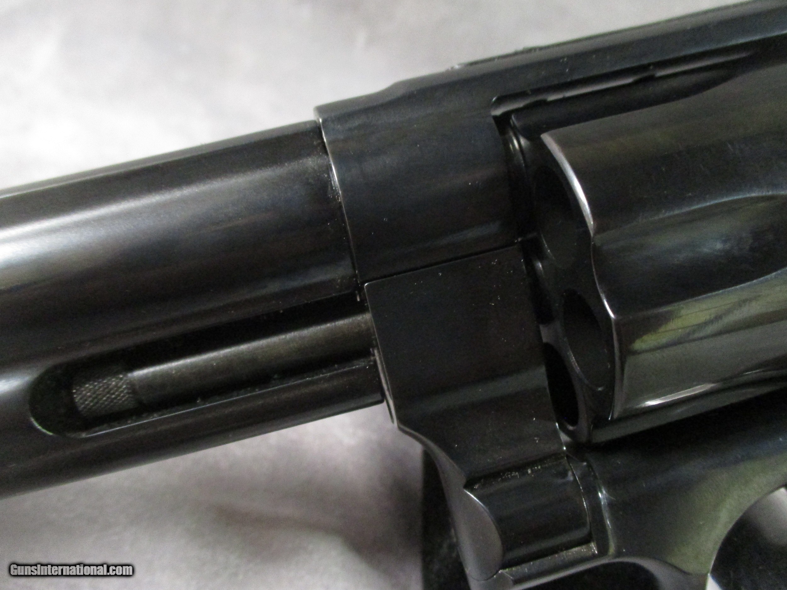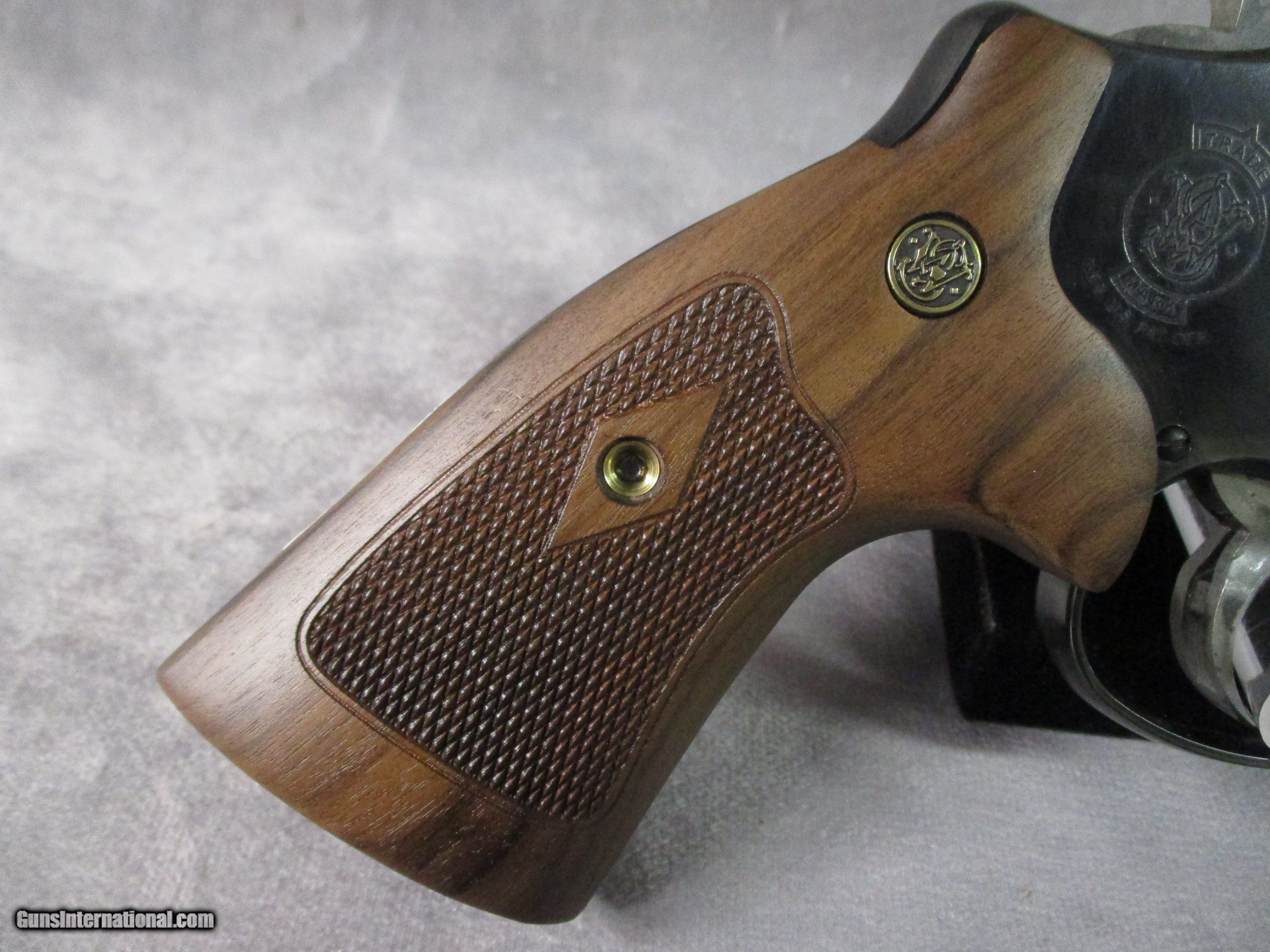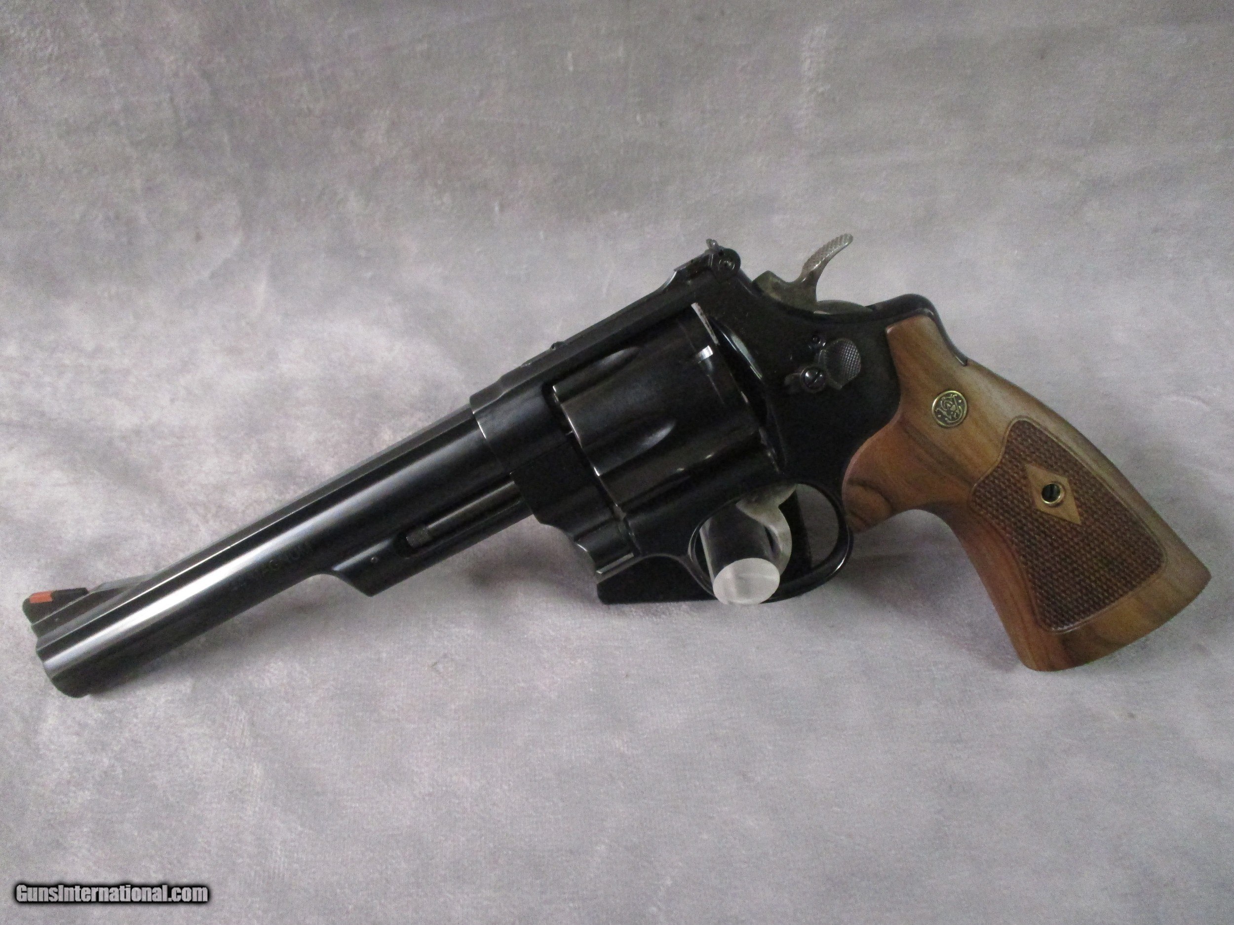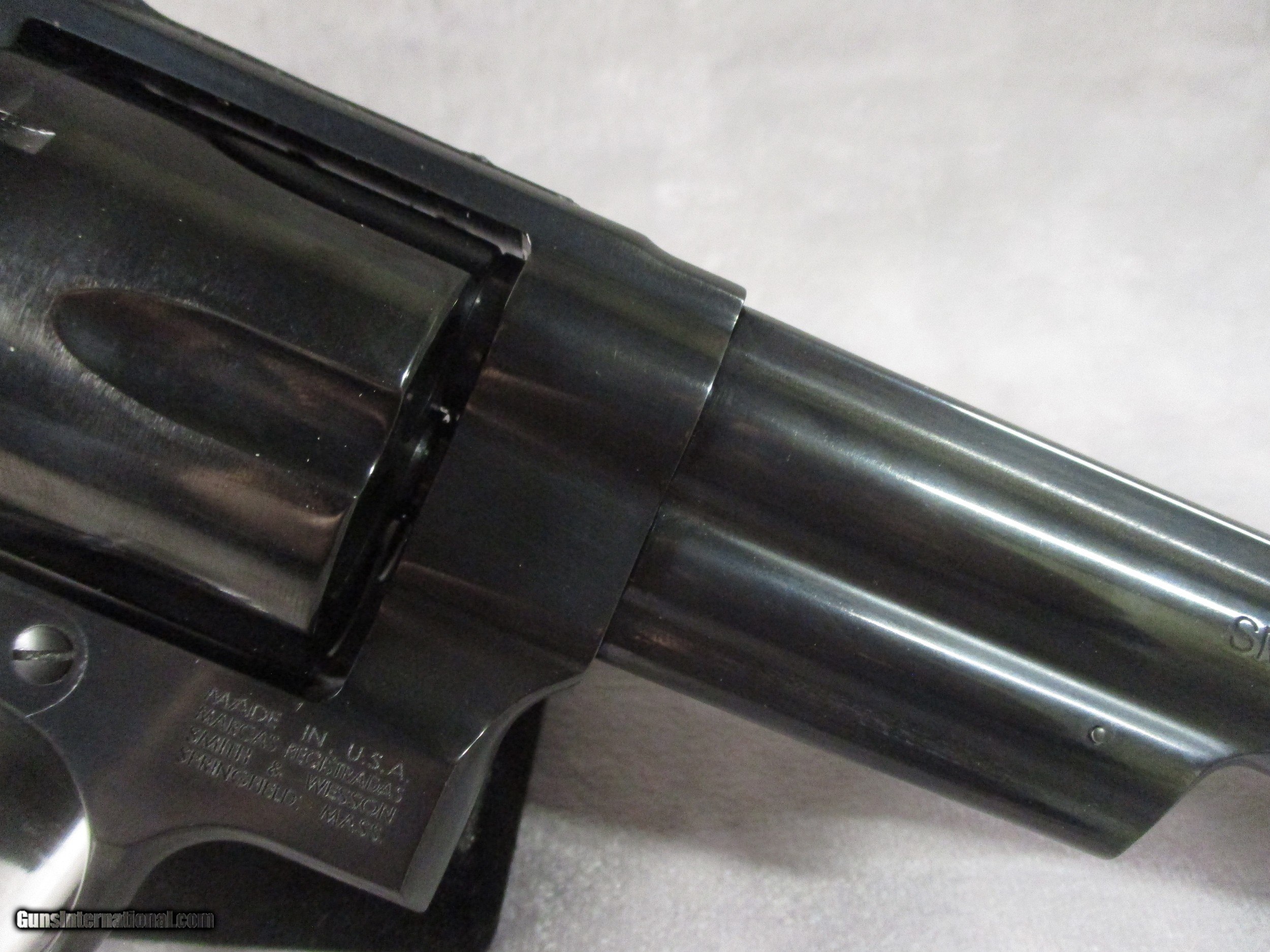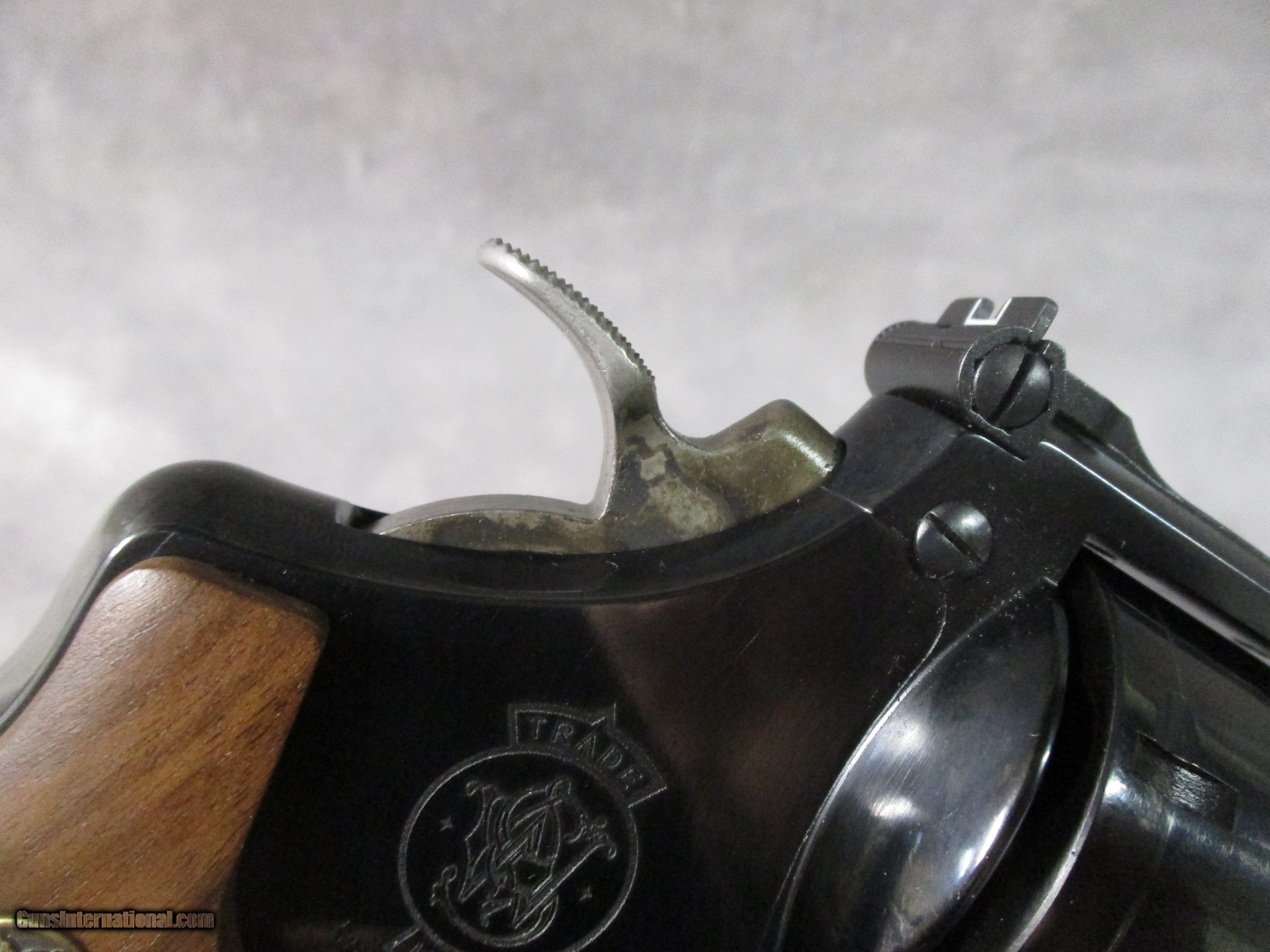 Description: This is perhaps one of Smith & Wesson’s most famous models. The 29 was intended to allow the shooter to have a revolver possessing better knockdown power than any revolver or semi-auto pistol in production at the time of its introduction (1955). The example here is one of the “Classic” models. Its features include: a 6.5-inch half-lug barrel, square butt frame, .500-inch grooved target trigger, .500-inch target hammer, ramp front sight with red insert, and white outline on the rear sight blade. The serrated backstrap has 10 grooves. The grips are checkered target types. Smith & Wesson refers to these as “target stocks.” The 29’s popularity increased drastically in 1971 with the release of the film Dirty Harry, starring Clint Eastwood. Although the 29 he normally carried had the 6.5” barrel, some scenes as well as posters depicted him with the 8.375” barrel. Indeed, of the two 29 revolvers used in the film, one was a 6.5” and the other an 8.375”. For the actual shooting sequences however, a Model 25 in 45 Colt was used as the 5-in-1 blanks were plentiful while 44 Mag blanks were yet not available. In the real world, the Model 29 has been used for everything from hunting to target shooting. It has also been used by law enforcement, although never on an “as issue” basis. This example is in excellent condition with some light wear. One very nice feature of the 29 is that like any 44 Magnum revolver, it will also safely fire the .44 S&W Special and .44 S&W Russian cartridges in addition to the .44 Magnum. This allows the owner to practice with the gun frequently and not have to worry about hurting their wrist. With this 29’s long barrel, the .44 S&W Russian would likely produce little if any felt recoil given the light powder loads it uses, especially if Cowboy Action loads are used. The Model 29 comes with a wooden presentation case as well as the usual blue plastic box (not pictured). SOLD Handgun Caliber: .44 Special, .44 S&W Russian, .44 Remington Magnum Manufacturer: Smith & Wesson Model: Model 29-10 Classic Serial Number: DRX5853 Bore: Rifled, 6 grooves Chambers: 6 Ejectors: Manual, simultaneous 6-round ejection Condition: New in Box Barrel Type: Heavy, half-lug, shrouded Action: Double/Single Action Triggers: .400-inch (10 mm) grooved target trigger Stock: Stabilized walnut diamond center checkered target stocks Finish: Blued Weight: 47.7 oz. Sights: Micrometer-click rear sight, ramp front sight; Sight Radius 8.0 inches (203 mm) Case: S&W box + wooden display case |
