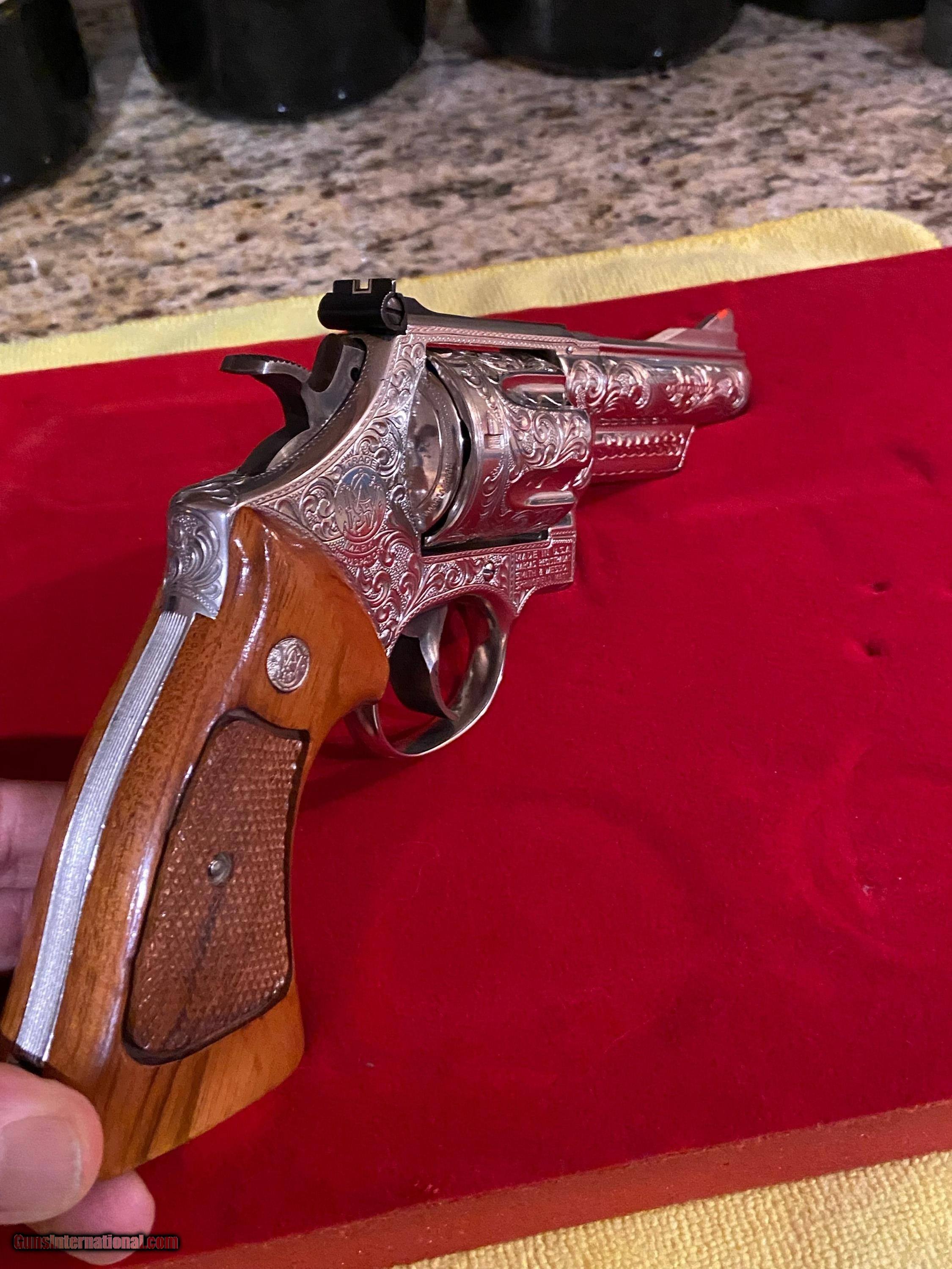 Description: For the Smith Wesson Collector. Out of my personal collection I have a 46 yr. old Smith Wesson Model 29-2 4" Nickel that was born in 1976 and Engraved by World Famous Master Colt Engraver, Master Firearms Engraving Guild of America and Master Instructor Michael W. Dubber. She sits in her Original Presentation Box with all paperwork , the original flocking and original tools. I better put this inhere, it's a Triple "T" pinned and recessed. For 46yrs she has been sitting in the box UNFIRED except by the Factory I believe! No powder burn anywhere, no turn line, no hazing of the Nickel, no nicks in the grips and no handeling marks. Simply OUTSTANDING! There are more Colts out there engraved by Mr. Dubber than there are Smiths & Wesson's. Mr. Dubber told me that in January 2022 that two of his rifles went for a record setting $290,000.00 Dollars at in Las Vegas. If you don't know who Michael W. Dubber is I would look him up. Mr. Dubber statrted engraving in 1967 and is still engraving today at age 79. Mr. Dubber told me he would charge $8500.00 to engrave that gun today. Shipping and Insurance is on your dime gentleman. I have other Smith's for sale as well. Feel free to call me in normal business hours. Will consider reasonable offers. SOLD Handgun Caliber: .44 Remington Magnum Manufacturer: Smith Wesson Model: Model 29-2 Serial Number: N398100 Barrel Length: 4 Ejectors: Manual Condition: Mint Metal Condition: Mint Wood Condition: Excellent Bore Condition: Excellent Action: Single Action/Double Action Triggers: Target Finish: Nickel Sights: Micro Adjustable Manufacture Date: 1976 Engraving: Classic American Scroll Case: Original Presentation Box Item Location: Texas |