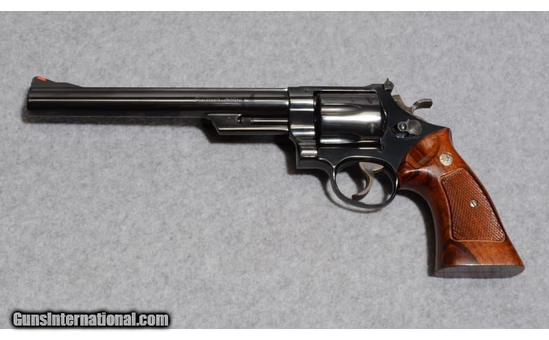 Description: The Smith & Wesson Model 29 is a six-shot, double-action revolver chambered for the .44 Magnum cartridge and manufactured by the United States company Smith & Wesson. The Model 29 was offered with multiple barrel lengths, this one being 8 3/8s". Other barrel lengths were available either by special order from Smith & Wesson's Custom Shop or custom-built by gunsmiths. The 5-inch (130 mm) barreled variant had a full-length underlug. Finish options available included a highly polished blued or nickel-plated surface. This gun is in amazing condition considering it's age, and has only a slight trail mark on the cylinder. .44 Magnum SOLD Chambers: Revolver Metal Condition: Excellent Deep Bluing with High Polish Wood Condition: Excellent Wood with Deep Bluing Bore Condition: Excellent Barrels: 8 3/8 Triggers: Factory Trigger Weight: 3.5 lbs. Sights: Ladder Front Sight and Adjustable Rear Sight Item Location: Tulalip, WA |