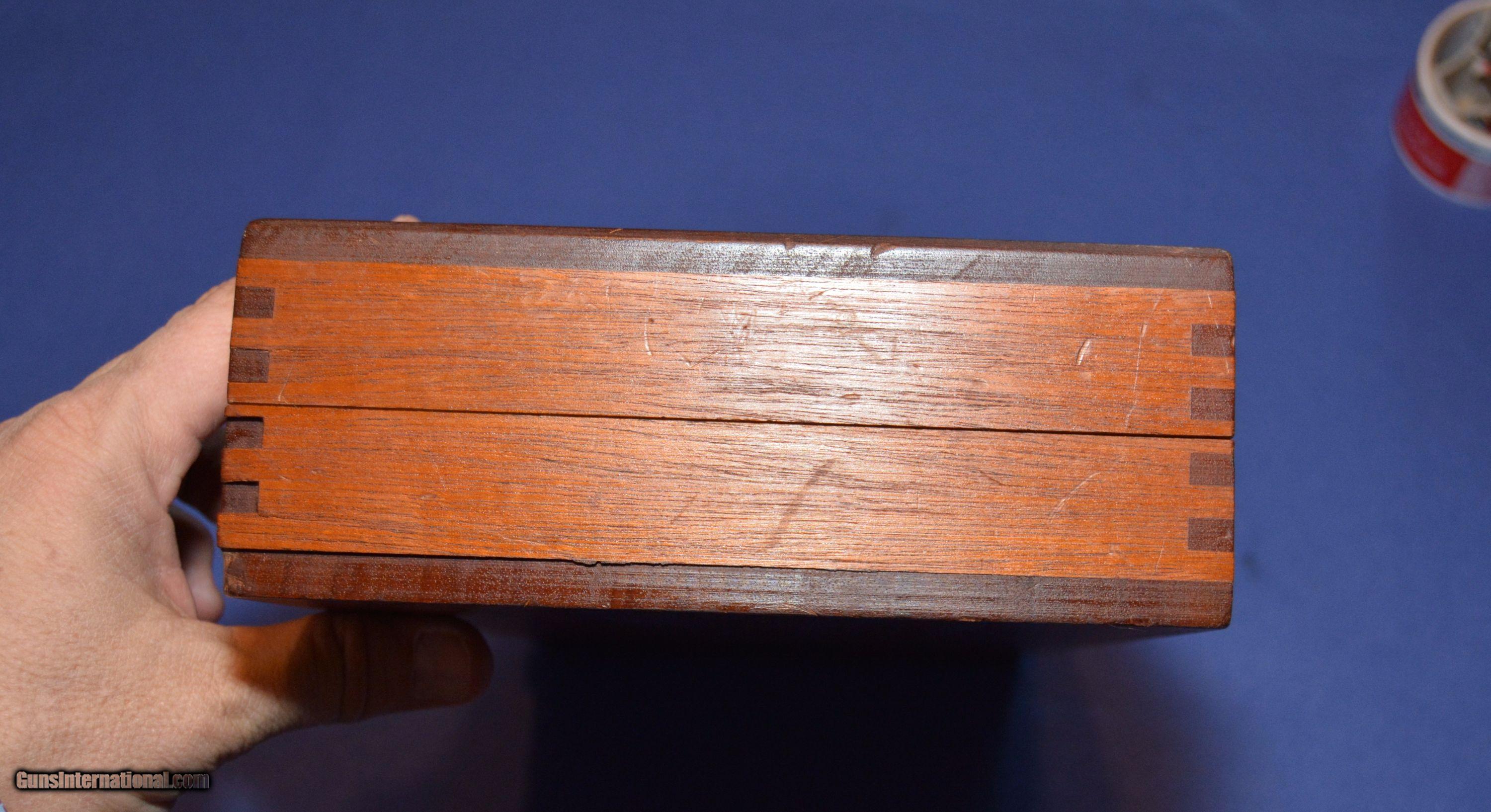 Description: Smith & Wesson Model 29-2 Engraved Presentation Find this cased factory “A” engraved Smith & Wesson Model 29-2 44 Magnum Revolver, Serial # N643646. The revolver was discovered by my client when clearing out his uncle’s estate. The revolver was found stored inside the Smith & Wesson walnut case. The standing breech face does not indicate the gun was fired. The revolver has a pinned 8 3/8-inch barrel with red ramp front sight and white line adjustable rear sight. It has the wide target style trigger and hammer and both retain the vivid case-hardened colors we all love and miss from current Smith & Wesson offerings. Further this 29-2 revolver has the counterbored or recessed cylinder. Smooth large wood target stocks round out this great revolver. These are all desirable features that went the wayside when the accountants took over firearms production. Barrel bore and cylinder chambers are flawless inside. There are a few small blemishes to the revolvers exterior metal. Primarily located on the left side of the rib and one spot on the right side of the barrel. As you can see the form fitted portion has broken down and decayed. I believe this occurs through the chemical processes when the firearm is stored with in the case and not ventilated properly. The oils and fluids used in and during manufacture and shipping off gas and cause the decorative interior to break down. Revolver will ship with the tools and the papers seen in these photos. California buyers always welcome. Shipping will be $20.00 USPS Priority Mail. Payment with US Funds from US Banks ONLY!!! We accept Cash, Checks, Money Order and US Postal Money Orders. We also accept Visa, MasterCard, American Express and Discover at 3% service fee. All items ship when payment clears, no exceptions. We cannot accept PayPal. Call 865-805-1187 for details or questions. Out of state buyers no sales tax yet. Local buyers must pay TN sales tax and $10.00 TBI state back ground check fee. Please encourage your congressman and senator to vote against an internet sales tax and instead encourage local shops to hire persons to post on the web. I’ve done both! SOLD Manufacturer: Smith & Wesson Model: 29-2 A Grade Factory Engraved Serial Number: N643646 Caliber Info: 44 S&W Magnum Bore: Excellent Chambers: Excellent Condition: 97.5% plus Metal Condition: Excellent some nicks Wood Condition: Very Good Bore Condition: Excellent Mint Barrels: 8 3/8 inch Barrel Type: Steel Action: Double Action |