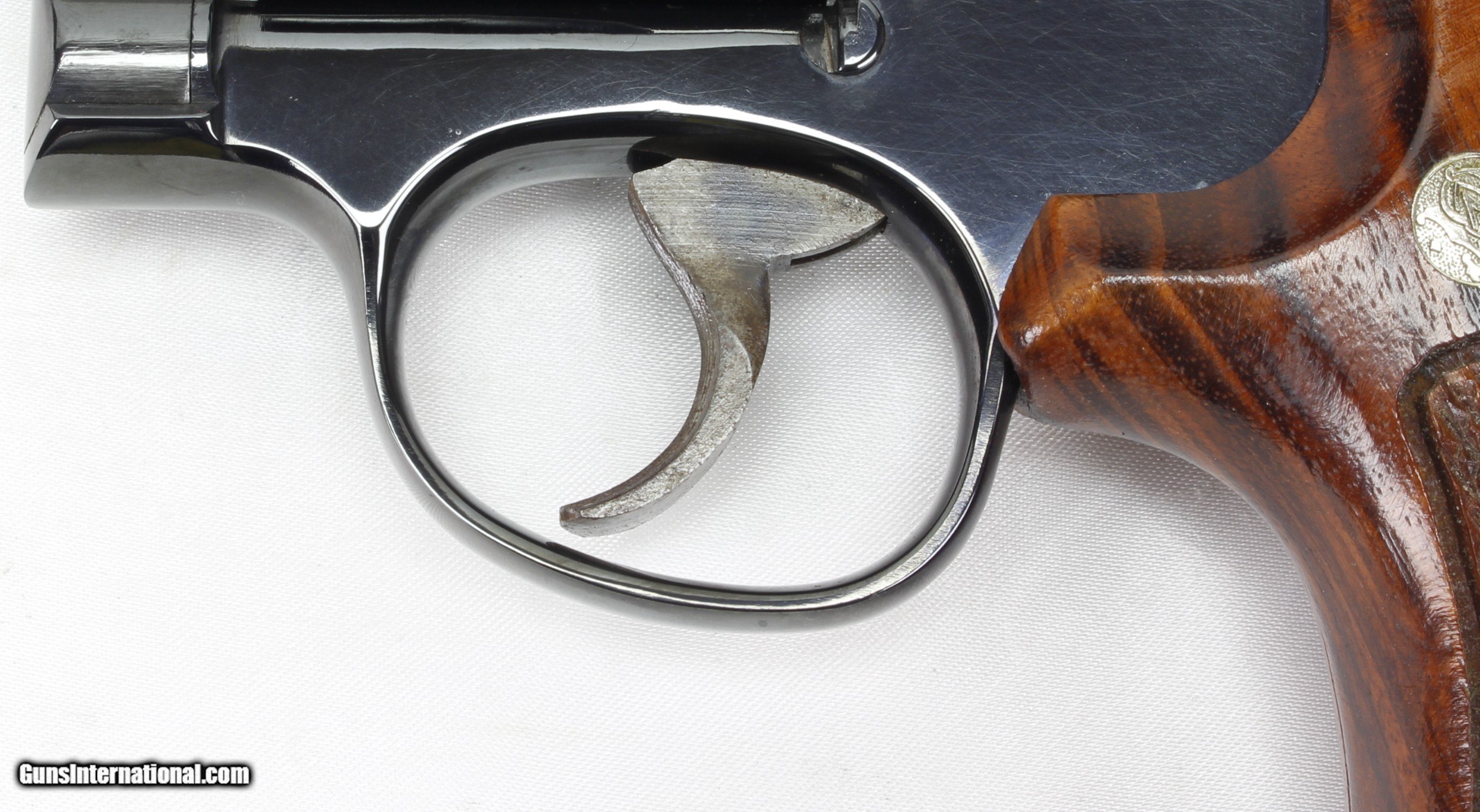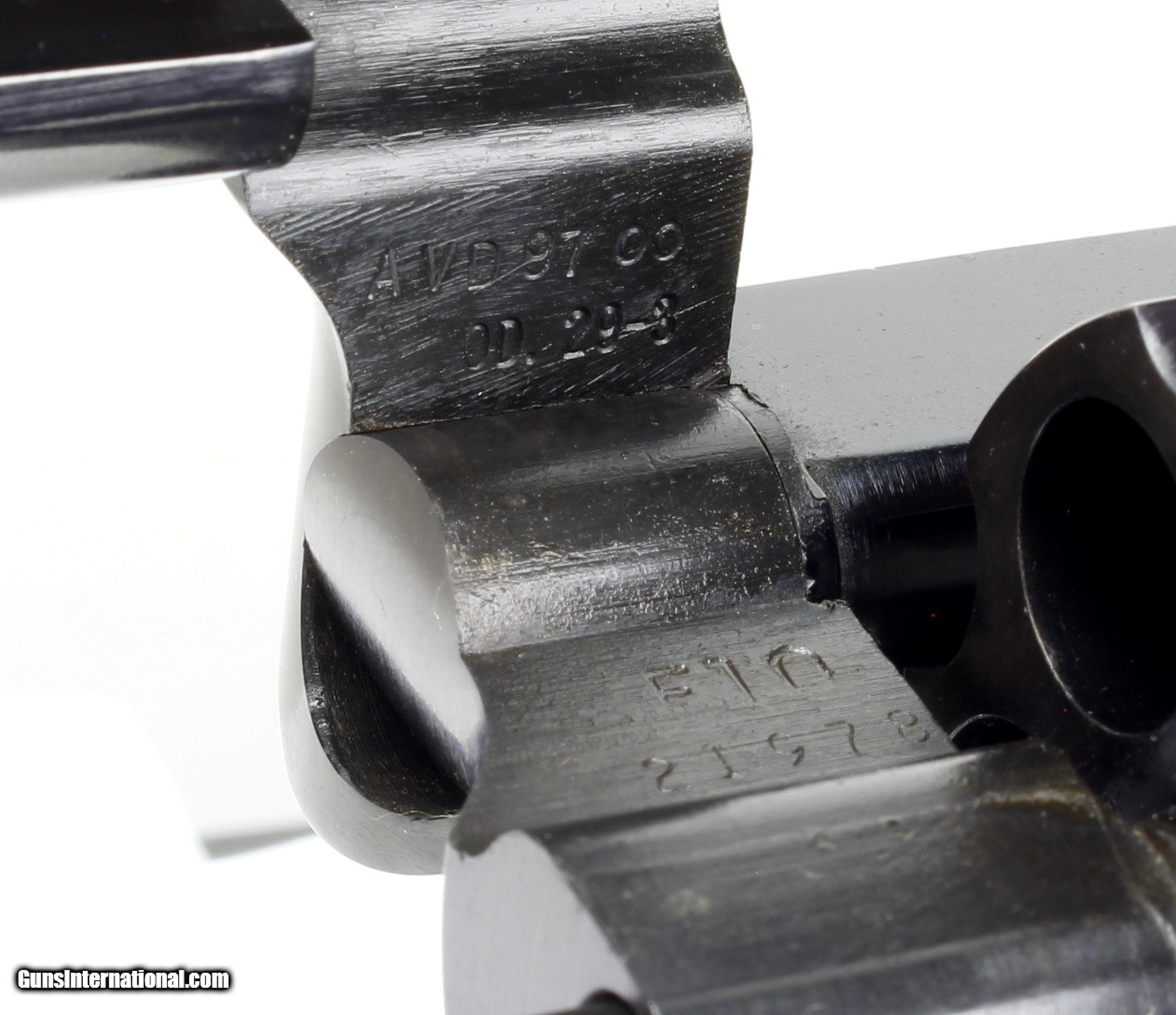 Description: S&W Model 29-3 Revolver in .44 Magnum. SN #AVD9700. Mfg. in 1983-1987 Est. N Frame. 6" Barrel with an EXCELLENT Bright Bore with STRONG RIFLING. The Blued Metal has been TOUCHED UP by SHOOTER'S EXCHANGE and LOOKS GREAT. The Walnut Checkered Square Butt Target Grips with S&W Medallions are in EXCELLENT condition. 6 Shot Cylinder. Adjustable Rear Sight and Patridge Front Sight. Case Colored Hammer and Trigger. 1st Variation without a Pinned Barrel. Weight: 2.93 lbs. Trigger Pull: 3 3/4 lbs. Ships to Lower 48 W/ Insurance $45.00. SOLD Manufacturer: Smith & Wesson Model: 29-3 Serial Number: AVD9700 Barrel Length: 6 Condition: Excellent Metal Condition: Refinished Wood Condition: Excellent Bore Condition: Excellent Action: Double Action Finish: Blue Weight: 2.93 lbs. Manufacture Date: 1983-87 |