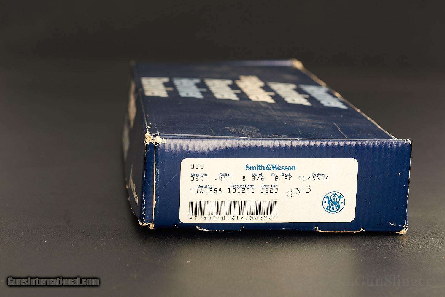 Description: Presented for sale, you will find a Smith & Wesson Model 29-5 Classic with a 8 3/8” barrel chambered in 44 Remington Magnum. This Model 29-5 is topped with a 2X Leupold scope. This copy was made in 1990. Smith & Wesson Model 29 Classic rates NRA Excellent. The images describe this revolver better than me. Included in the listing is the pictured Smith & Wesson Model 29-5 Classic, cleaning rod, warranty card and all pictured documentation. The 2X Leupold scope and Burris mounts are also included. This revolver will ship for $30. Thank you for looking. Our phones are answered 24/7 by a human that speaks English. SOLD Handgun Caliber: .44 Remington Magnum Manufacturer: Smith & Wesson Model: 29-5 Classic Serial Number: TJA4358 Barrel Length: 8 3/8 Condition: NRA Excellent Metal Condition: See Images Wood Condition: See Images Bore Condition: Excellent Action: SA/DA Finish: Blue Sights: Optical Manufacture Date: 1990 Extras: See Description Item Location: Little Rock, Arkansas |