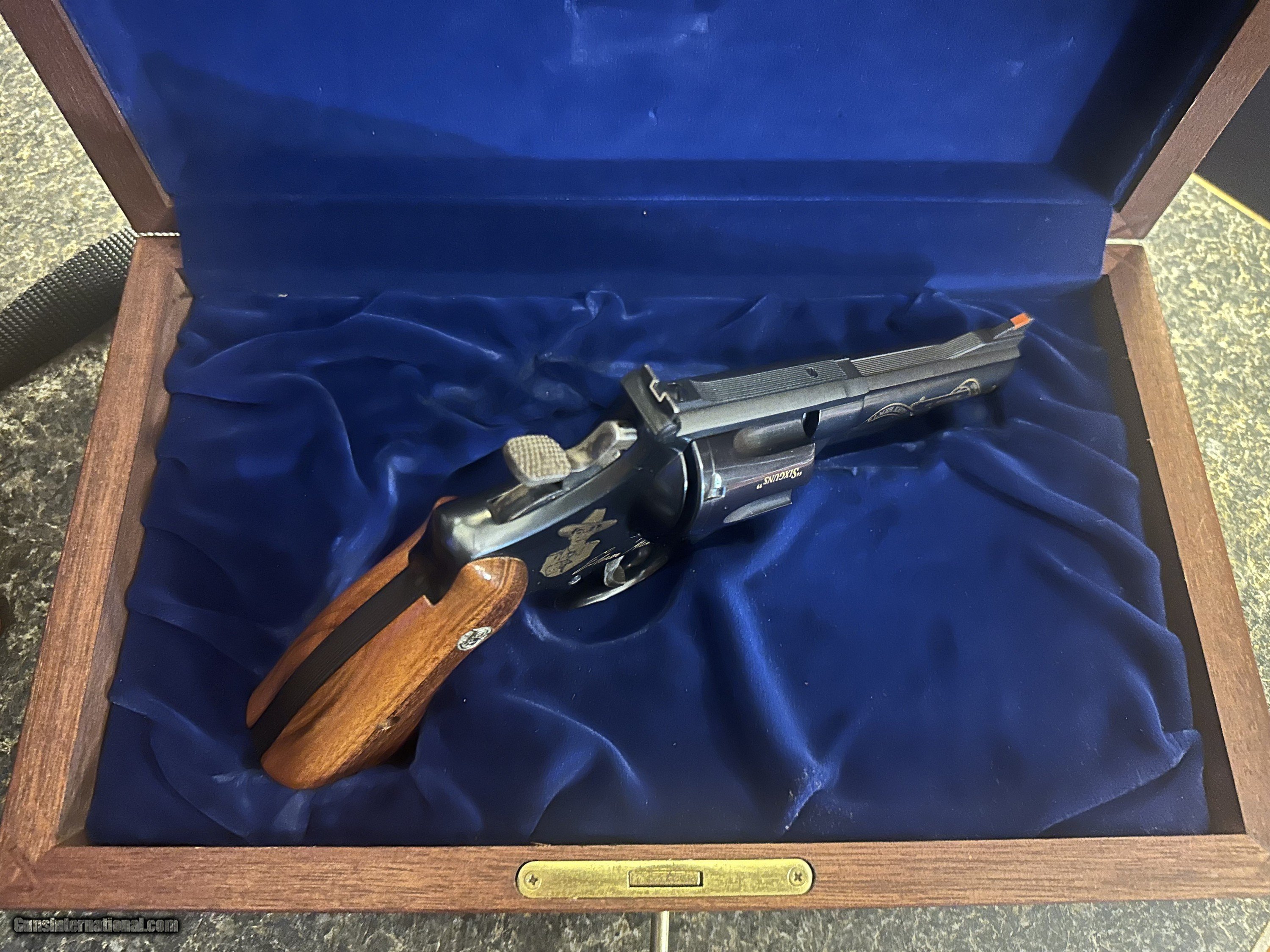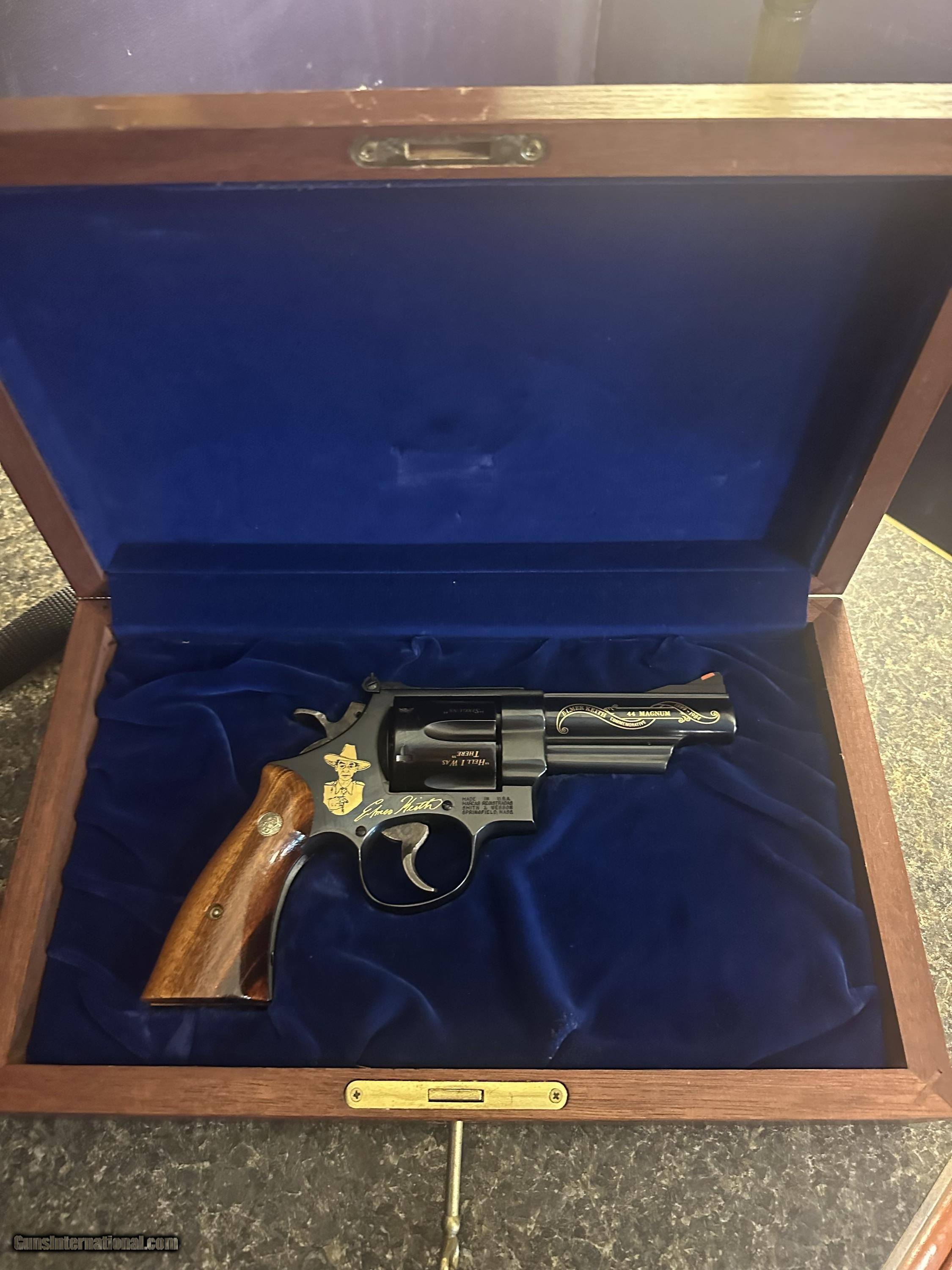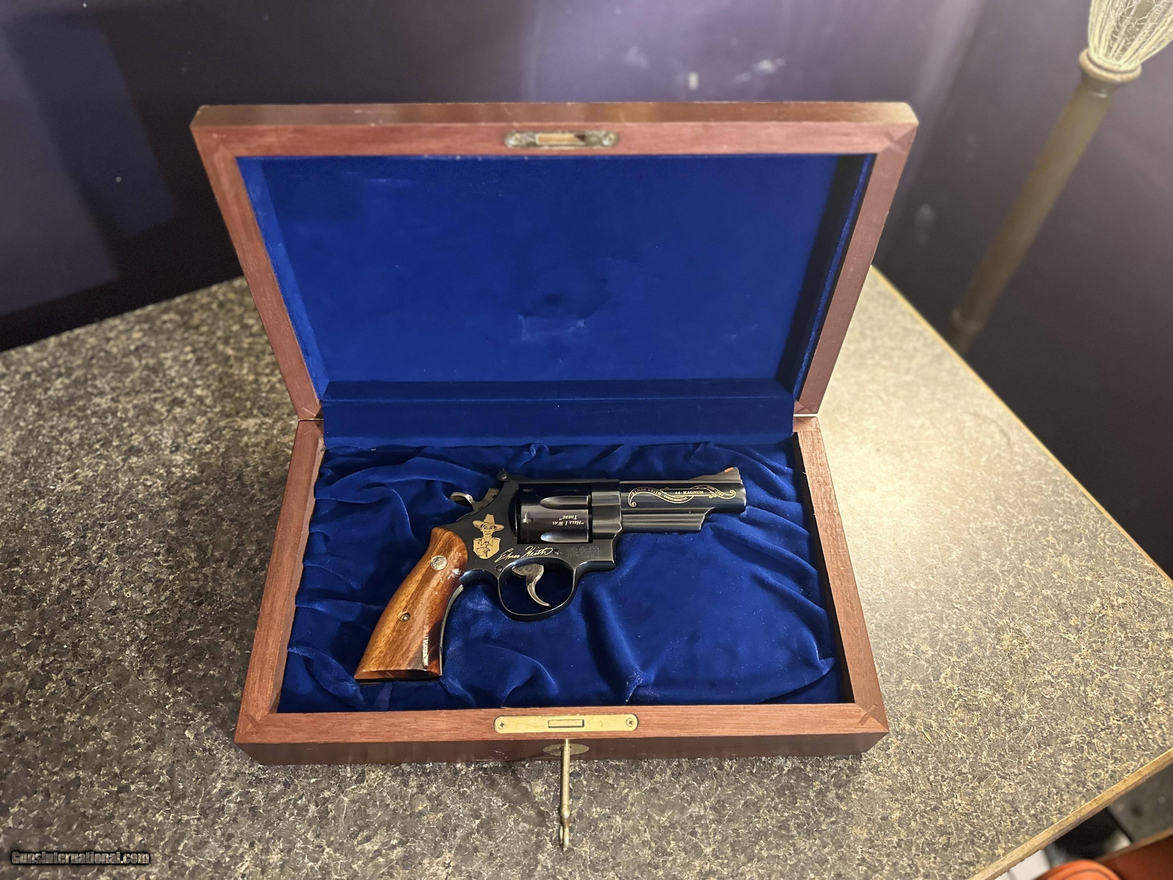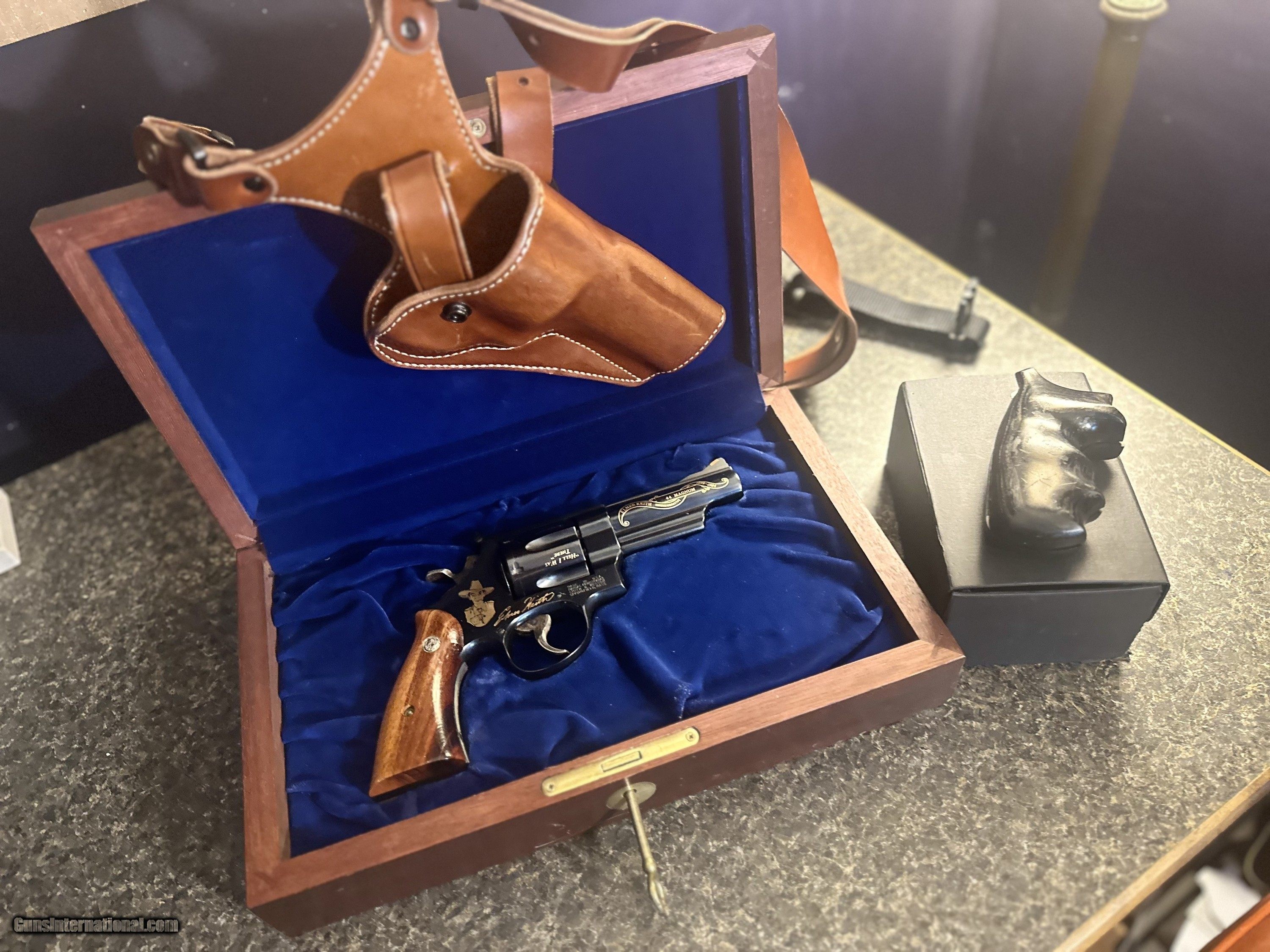 Description: Smith and Wesson model 29 N-frame,Elmer Keith commemorative edition, 44 Magnum. Original case and key are provided. Additional custom Badger grips and Galco chest holster are also included in the sale. Handgun Caliber: .44 Remington Magnum Manufacturer: Smith& Wesson Model: Elmer Keith Model 29 Barrel Length: 4 Condition: Excellent Metal Condition: Excellent Wood Condition: Excellent Bore Condition: Excellent Engraving: Gold Extras: Badger custom grips and Galco chest holster Case: Wood Price: $1,700.00 Contact Seller |