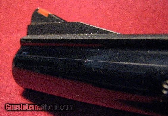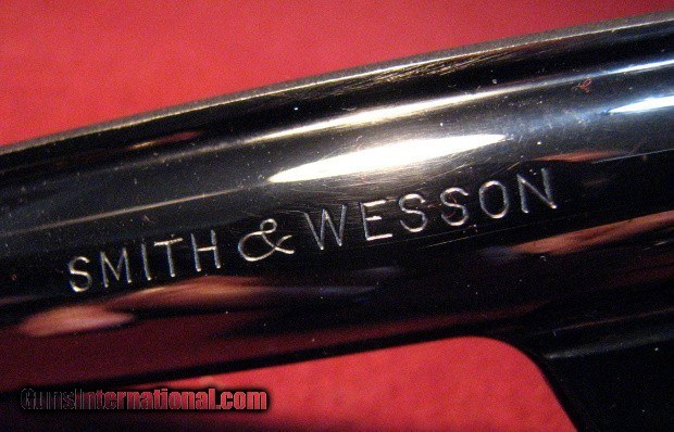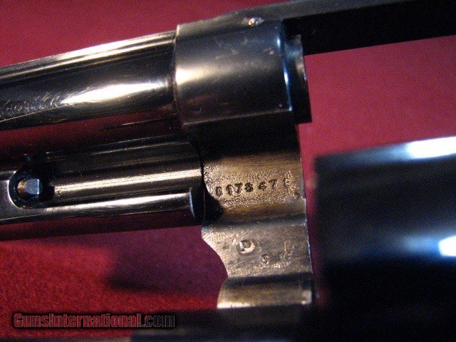 Description: Scarce S&W pre-29 .44 Magnum revolver with 6 1/2" barrel with excellent bore. Red ramp front sight and white outline rear sight. SN - S1734xx This is a four screw model. Target trigger and target hammer retaining 100% vivid case colors. Original "Coke Bottle" diamond checkered grips. This pre-29 is all original and retains 98% blue with very slight loss on high edges, at the muzzle, and at cylinder drag line. SOLD |