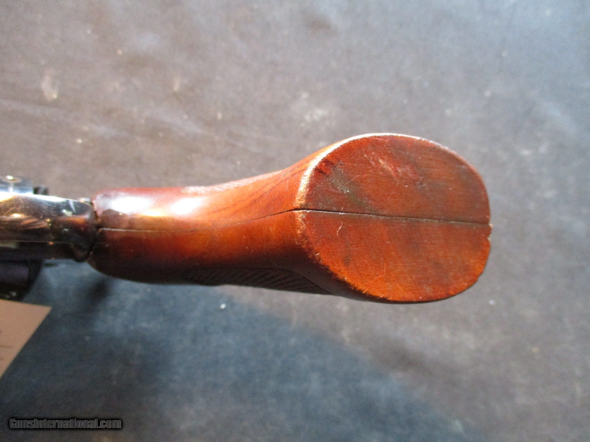 Description: S&W model 29 NO DASH. Sn is S2064xx. Factory finish on both grips and metal. Has some blue wear as shown, chip in the grip as shown. All and all still a nice old classic shooter! Bore is perfect, trigger, hammer and cylinder lock up is perfect! Email me if you would like these pics sent to you, they will come through bigger and better than on the listing page here. We do offer Lay-A-Way. Our standard terms are 25% down, 90 days. Initial deposit is not refundable. Email me with any questions. I am a store front dealer, and I will close s if the gun sells locally. Once it has aI will pull it from my shelves. Please check your local laws to confirm it is legal to own in your state! Buyer pays $25 shipping and insurance to your FFL in the lower 48. AK, HI or PR is extra. I will ship to California, NO PROBLEM! All my guns come with a non-firing, 3 day unconditional return privilege, from the day UPS delivers to your dealer. Buyer pays shipping both ways if the gun comes back. I can add a new hard case by PLANO for secure shipping for $25 if the buyer wishes (highly recommended, cheap insurance, really helps keep the UPS monster from eating my guns!). No sales tax on guns ship out of Kansas, guns sold in Kansas are subject to Kansas sales tax. I am a licensed FFL, and will include a copy of my FFL with the gun for your dealer’s records. I will ship to a C&R if the gun is eligible. I will ship to California, but you need to confirm the gun is legal where you are, California or other. WE BUY AND CONSIGN GUNS AND GUN COLLECTIONS! We will travel to pick up collections! . WE ALSO TRADE FOR CLASSIC CARS AND TRUCKS! Email me with any questions, and good luck! SOLD |