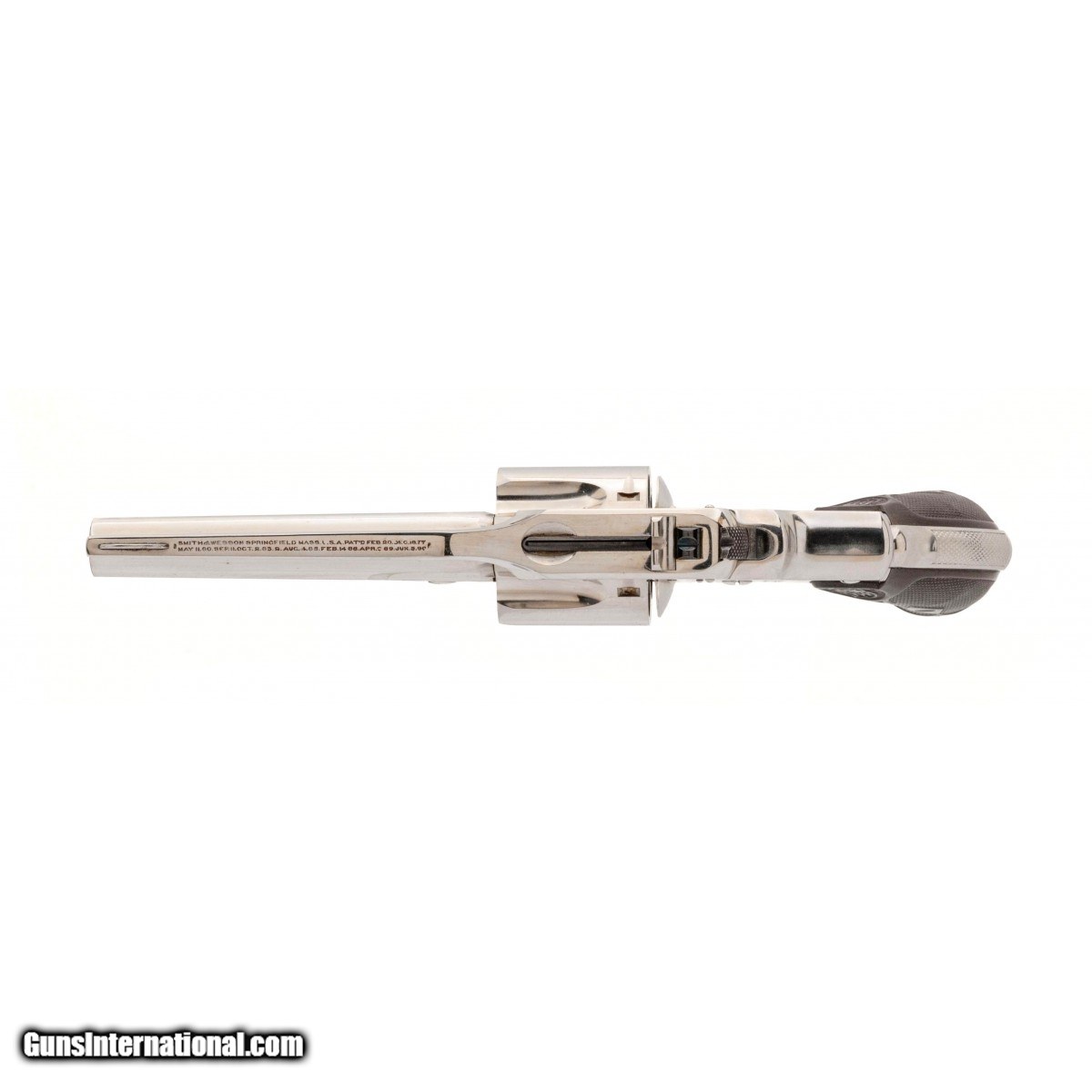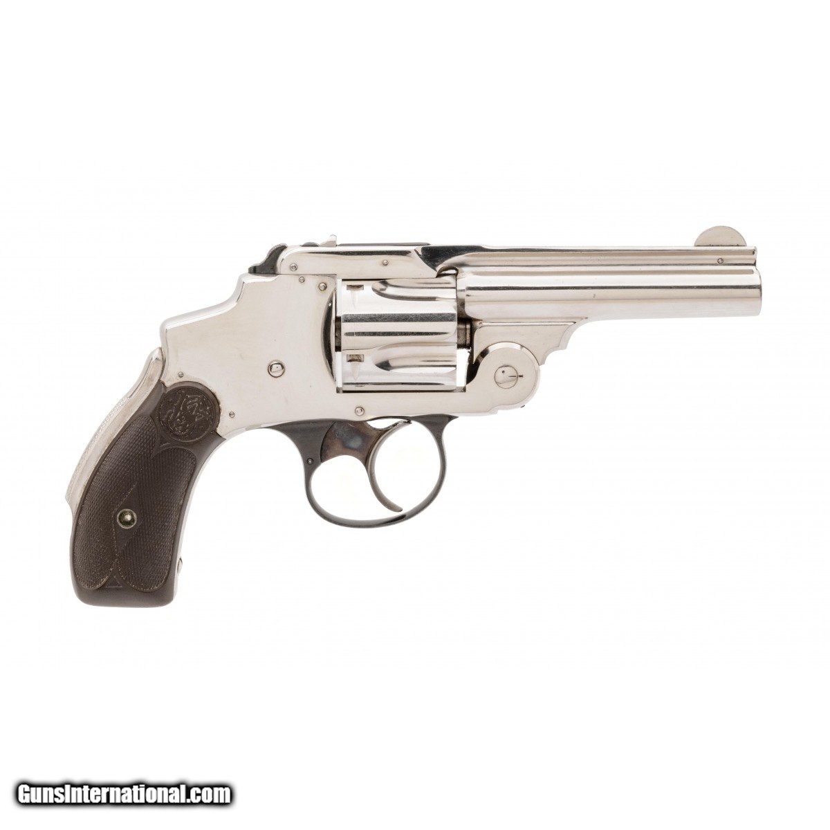 SN: 80146. Circa 1895. .38 Smith and Wesson with a 3.25"" ribbed barrel, bore is excellent. Double action revolver with nickel finish, blued trigger guard, case hardened trigger, shrouded hammer, lemon squeezer safety mechanism on back of grip and hard rubber grip with S&W trademark logo. Overall very good condition. (Consignment)