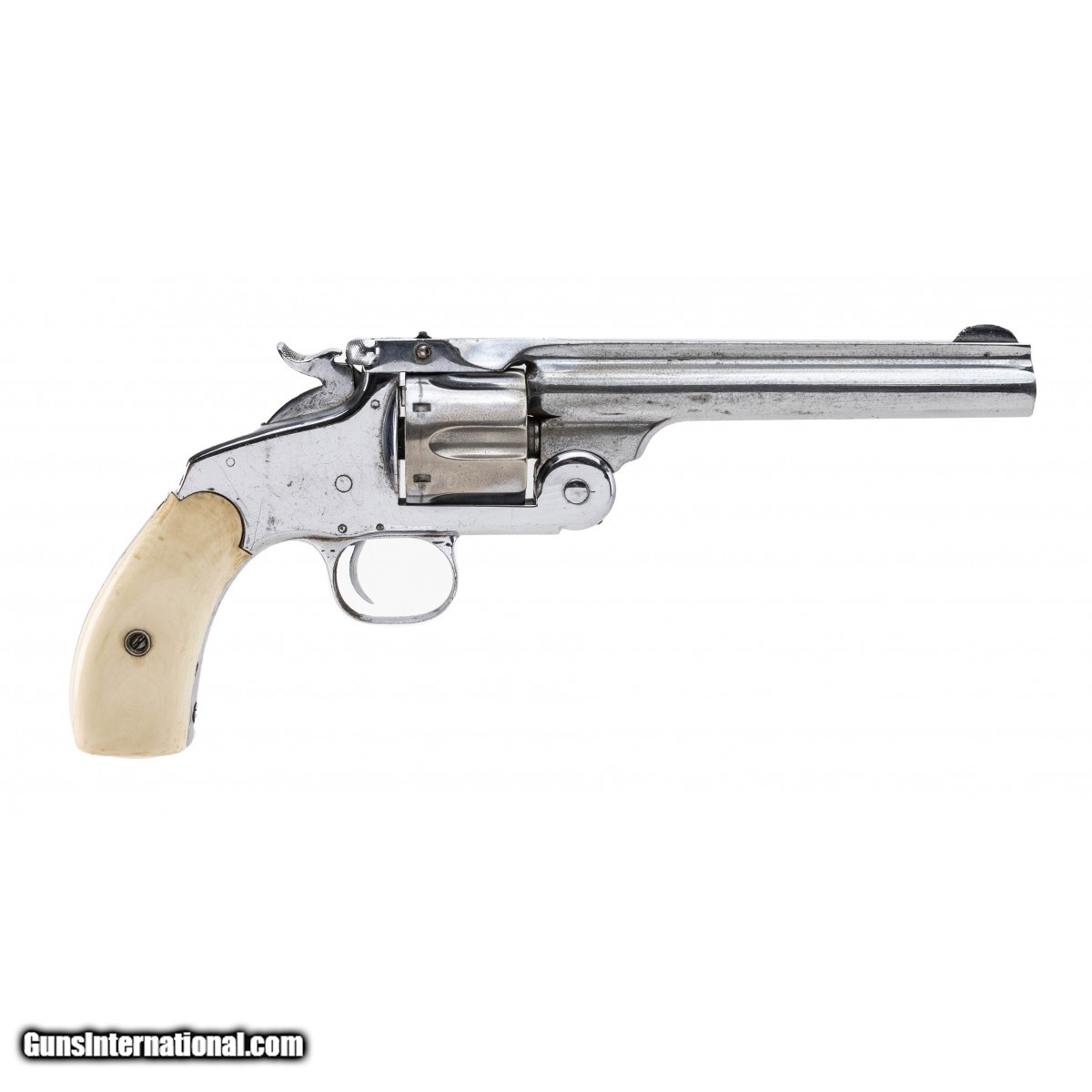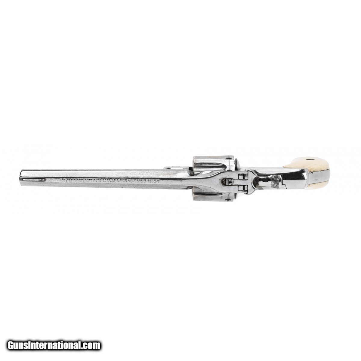 Description: " Action works perfectly. Bore has very strong rifling with some corrosion in the grooves. The revolver has been nickel plated long ago. Smith & Wesson barrel marking on top rib are clear. Cylinder number matches frame serial number. Grips are old ivory and have a mellow color. Inside of the one of the grips is the name ""RA Follette"" in beautiful script. This is an attractive revolver. SOLD |
