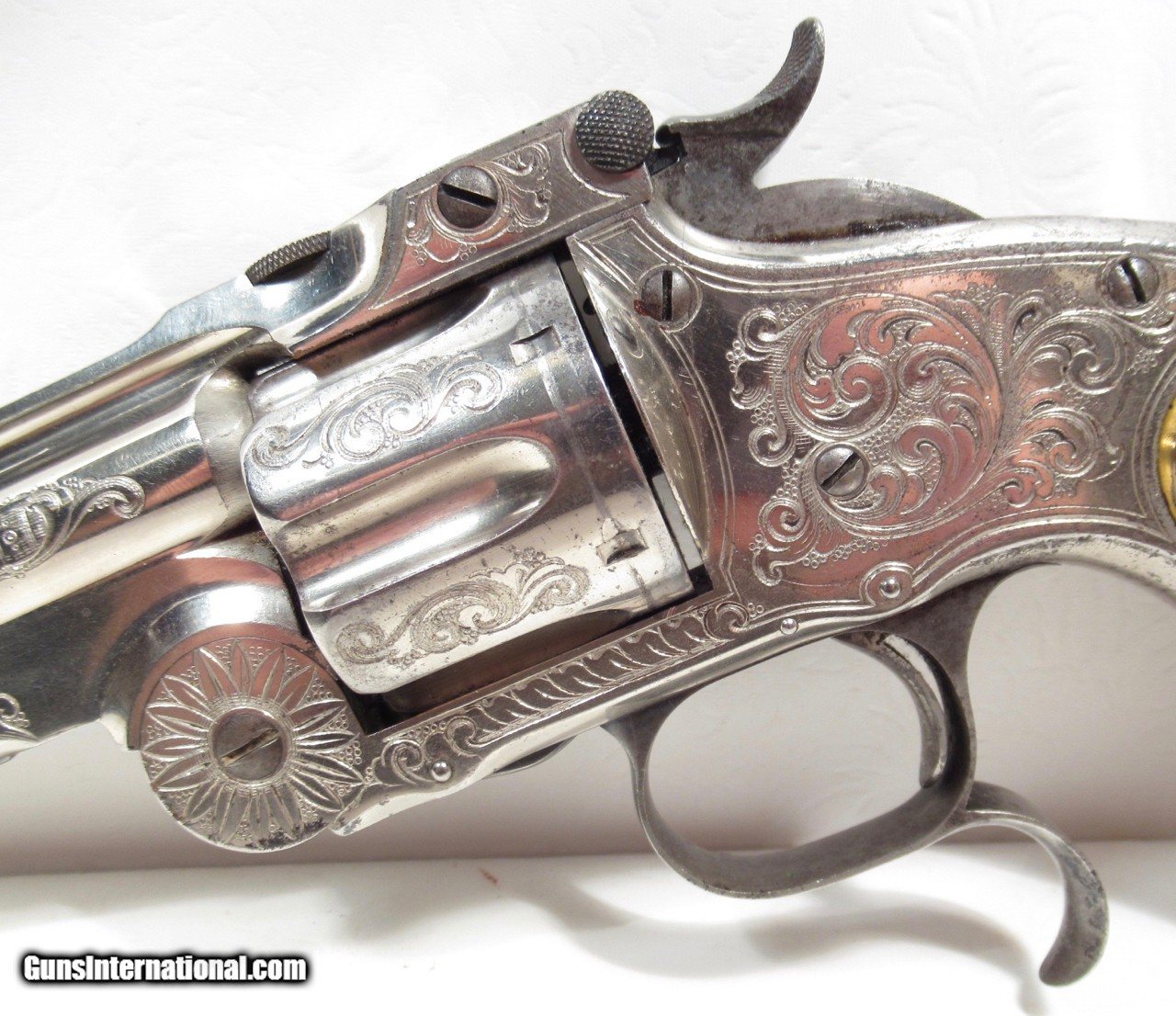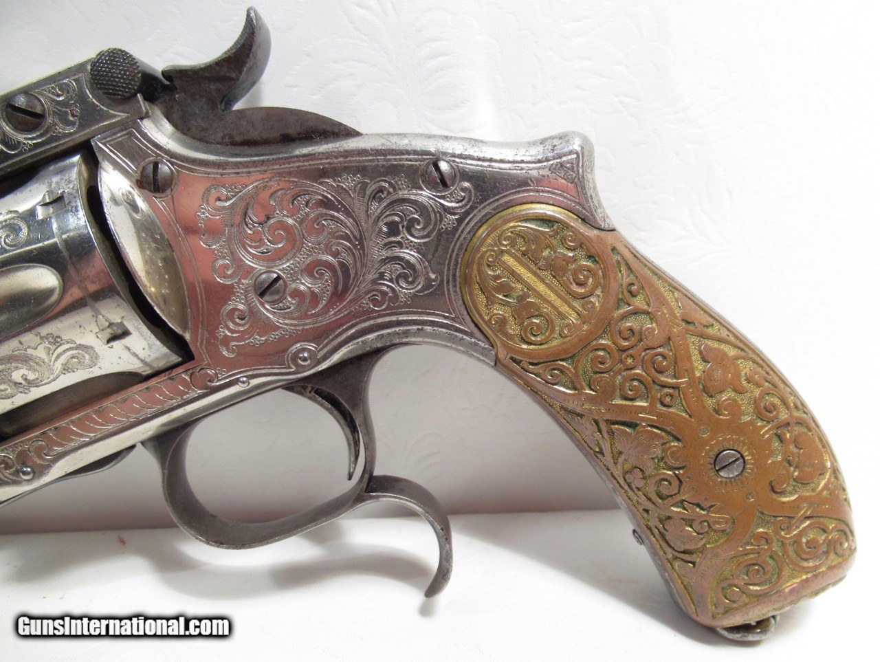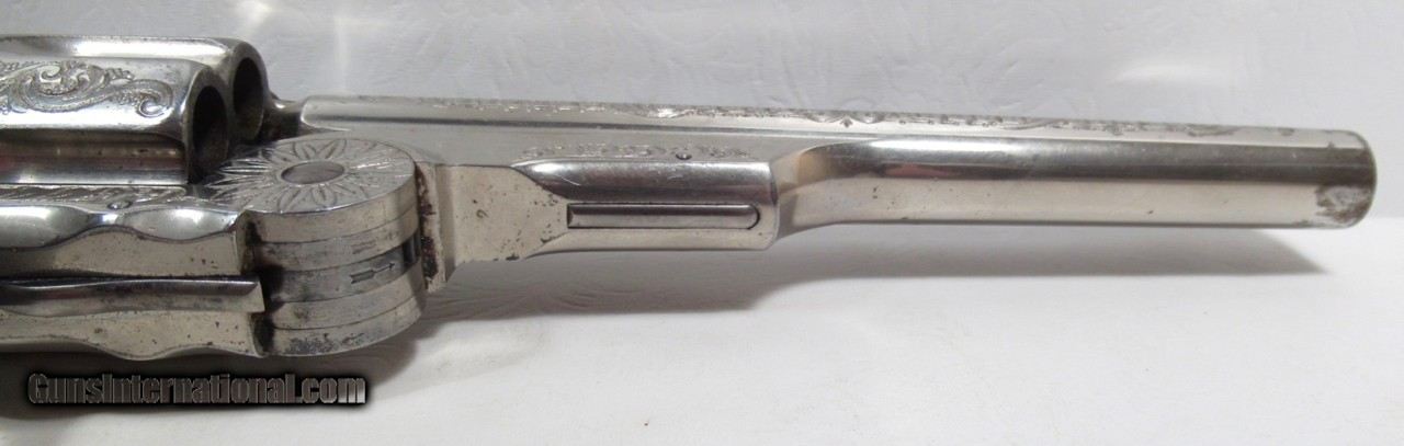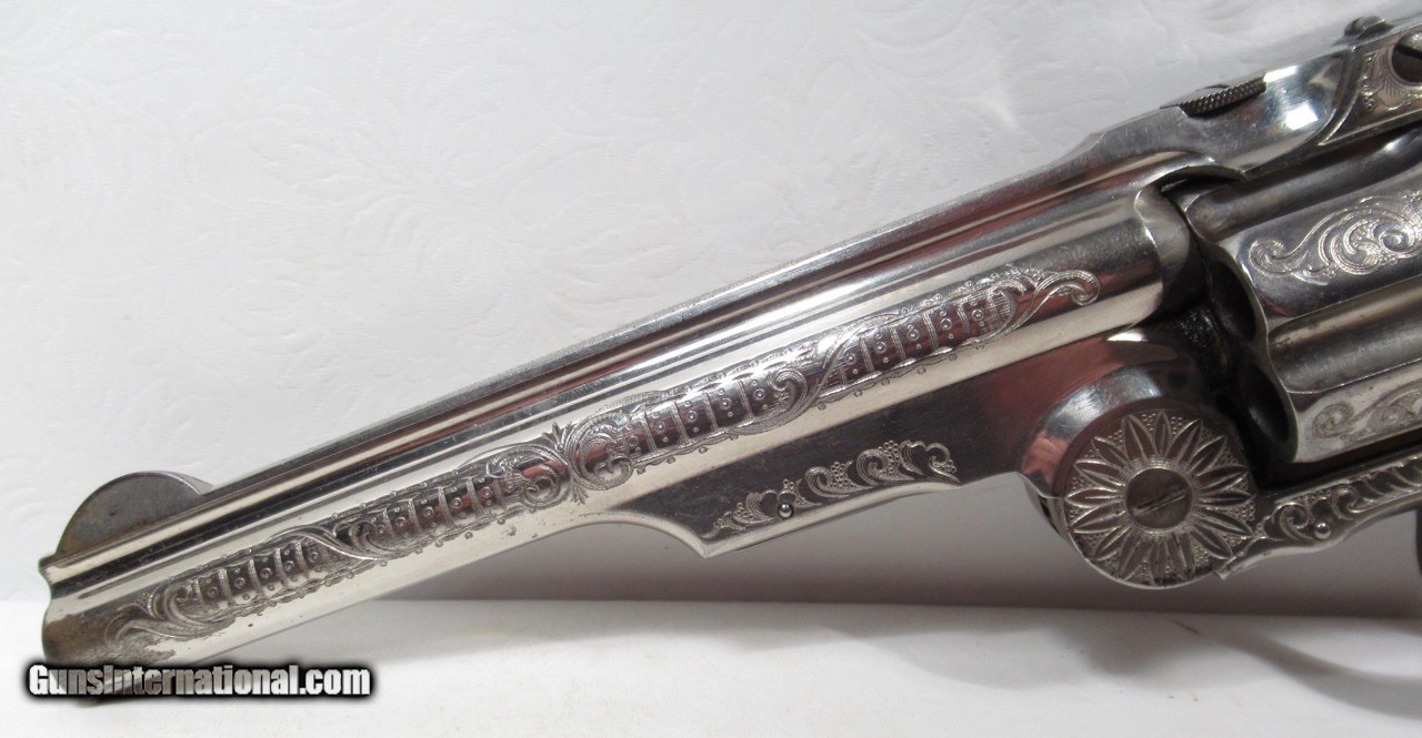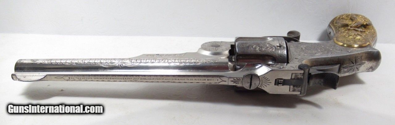 Description: Smith & Wesson Model 3 Russian Revolver; Serial No. 39551; 44 Russian Caliber; 6 ½” Barrel; Schuler Hartley & Graham “SH” in Diamond on Butt; They Were Part of the Wexel & Degress Company (NY City and Mexico City); This Beautiful L.B. Nimschke Engraved Nickel Plated Revolver Wears Outstanding Wexel & Degress Grips; Nearly All Metal Finish Remains; 100% Correct and Matching; Perfect Action and Very Strong Bore with chattering; Would Love to Know History on This One as it was Certainly For a Very Important Person; See All Photos for Condition; No Texts; Call (254)541-5765 or Email Only; PERSONAL PROPERTY of Harold Wieser; Price: $17,975 + $45 S&H Via USPS PRIORITY MAIL; Payment Address: Harold Wieser - 1466 U.S. Hwy 77 - Rosebud, TX 76570; SEND PAYMENTS VIA USPS PRIORITY MAIL; BEWARE of SCAMS!!! – DO NOT SEND MONEY or CORRESPONDENTS ELECTRONICALLY UNLESS YOU HAVE SPOKEN to HAROLD WIESER FIRST! 254-541-5765 SOLD Manufacturer: Smith & Wesson Model: 3 - Russian Serial Number: 39551 |