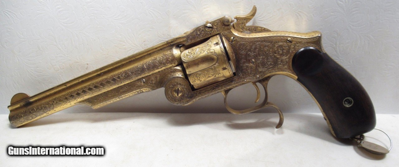Description: Smith & Wesson 2nd Model No. 3 Russian Revolver; Serial No. 32006; Made 1874; .44 Russian Caliber with 7” Barrel; Gold Plated; Nimschke Engraved; All Numbers Match Including Numbered Grips which are Smooth Walnut and were Standard Issue for this Period of S&W Revolvers; Formerly of the Supica Collection; Perfect Action and Bore; Note: “SH” in a Diamond on Butt of Revolver – I have had several of these and in my opinion, these were all sent to Wexel & Degress in Mexico; Outstanding 149 Year-Old S&W Revolver; Not For Sale at this Time; See All Photos for Condition; No Texts; Call (254)541-5765 or Email Only; PERSONAL PROPERTY of Harold Wieser; NOTICE: We Do Not Do Any Consignments - All Items Listed are Owned by Us - NO SALES to New Jersey or New York City - Antiques Only to Massachusetts and California; Price: $ Not For Sale at this Time + $45 S&H Via USPS PRIORITY MAIL; Payment Address: Harold Wieser - 1466 U.S. Hwy 77 - Rosebud, TX 76570; SEND PAYMENTS VIA USPS PRIORITY MAIL; BEWARE of SCAMS!!! – DO NOT SEND MONEY or CORRESPONDENTS ELECTRONICALLY UNLESS YOU HAVE SPOKEN to HAROLD WIESER FIRST! 254-541-5765 SOLD Antique: Yes Manufacturer: Smith & Wesson Model: 2nd Model No.3 Russian Serial Number: 32006 |