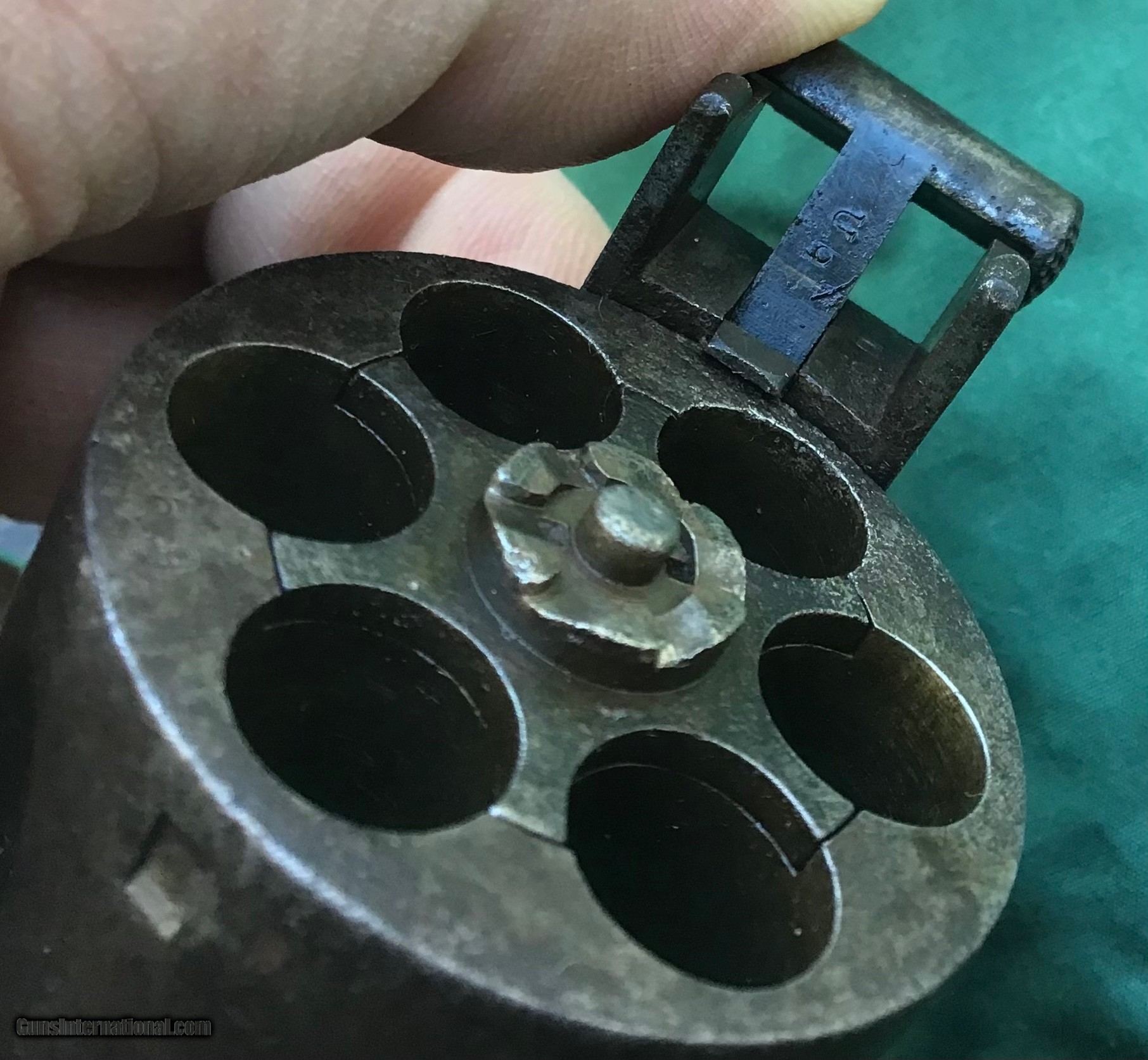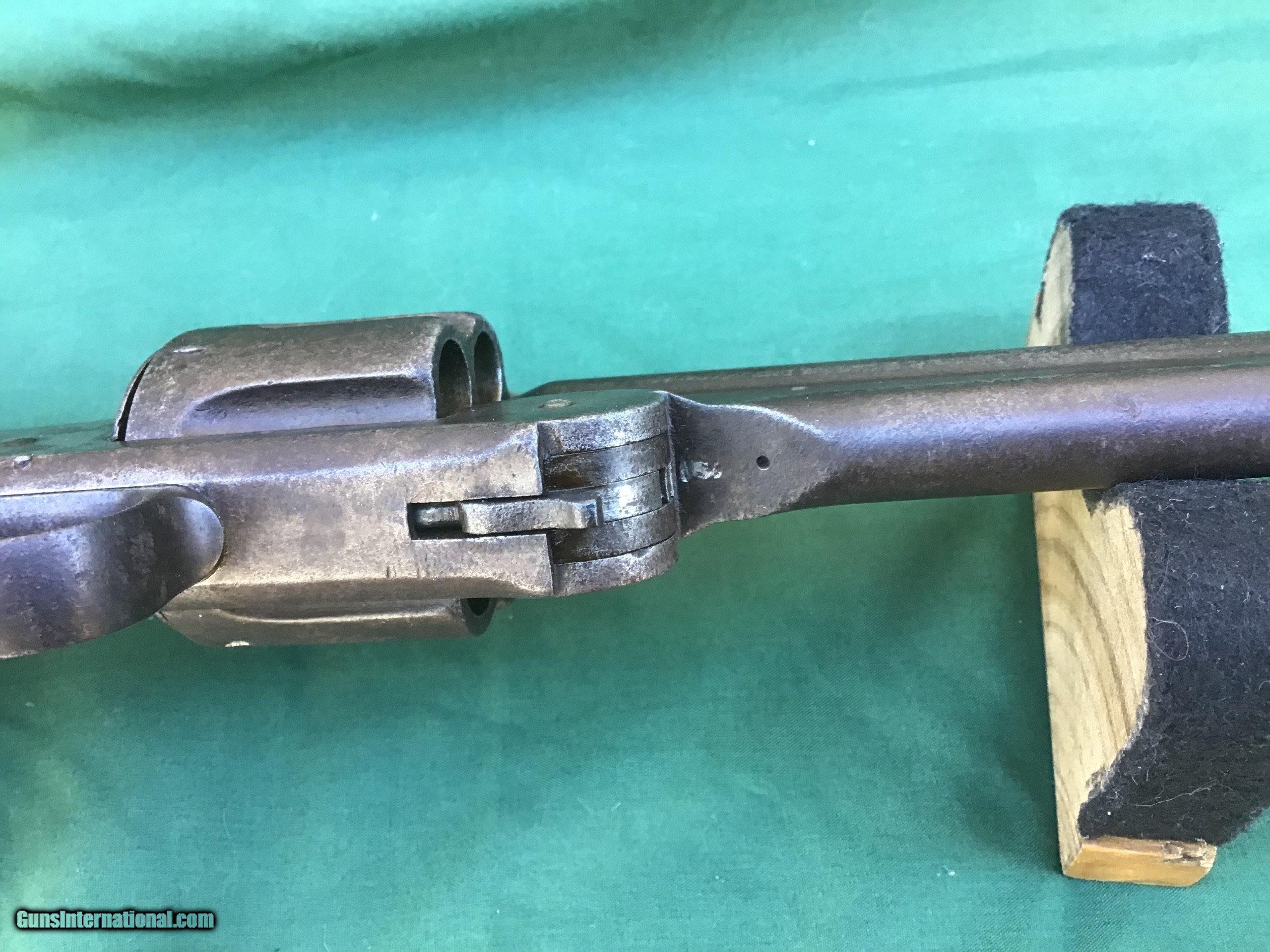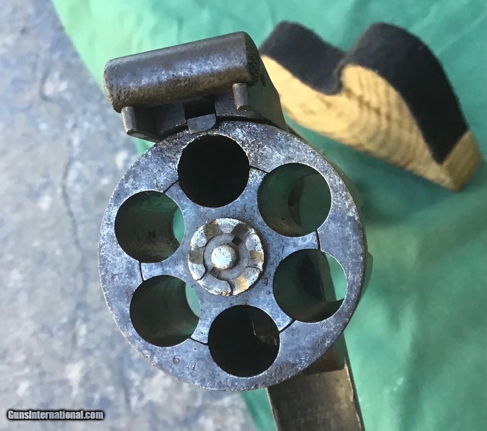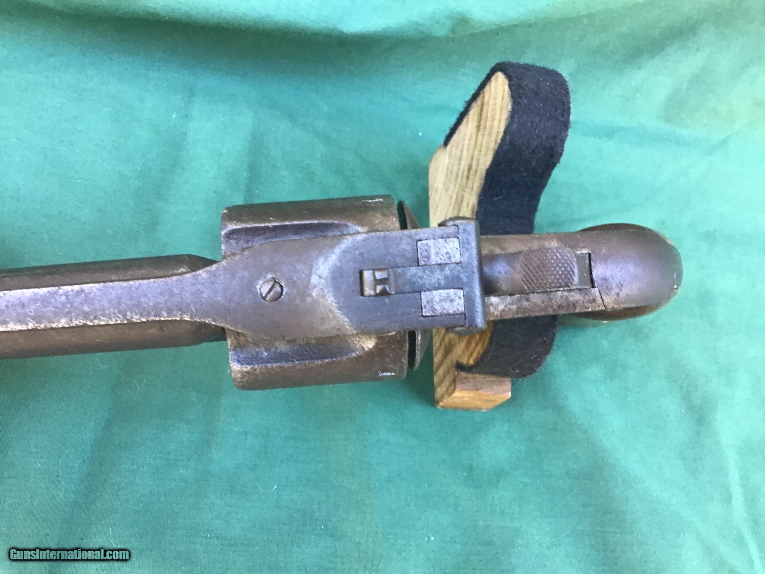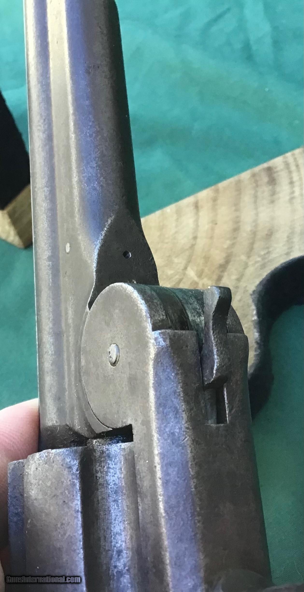 Description: Sold S&W Oil Hole #3 American, 1st Model. .44 S&W American. This revolver has serial number 407. Compounding the significance of this revolver is the rarely observed oil hole (located on the rear of the extractor housing on the bottom of the barrel lug) as found on the first 1,500 or so of this model. The barrel rib has the one-line S&W address/patent dates that is faint but legible. Matching assembly numbers are found on the cylinder, barrel latch and barrel. 8" barrel with a good bore. Overall condition is a gray / brown patina with light pitting throughout. Right grip is off a 2nd model in 10,000 serial range. The S&W American Model was the first cartridge revolver adopted by the U.S. military and saw usage throughout the Indian Wars as it was reported to have been issued to the 2nd, 3rd, 4th, 5th, 6th, and 7th Cavalry. Surviving examples of Oil hole 1st Model 3 Americans are scarce and highly desirable in any condition. Please feel free to ask questions. Sold as a Collectors Item only. Antique and can be shipped directly to your doorsteps. SOLD Antique: Yes |